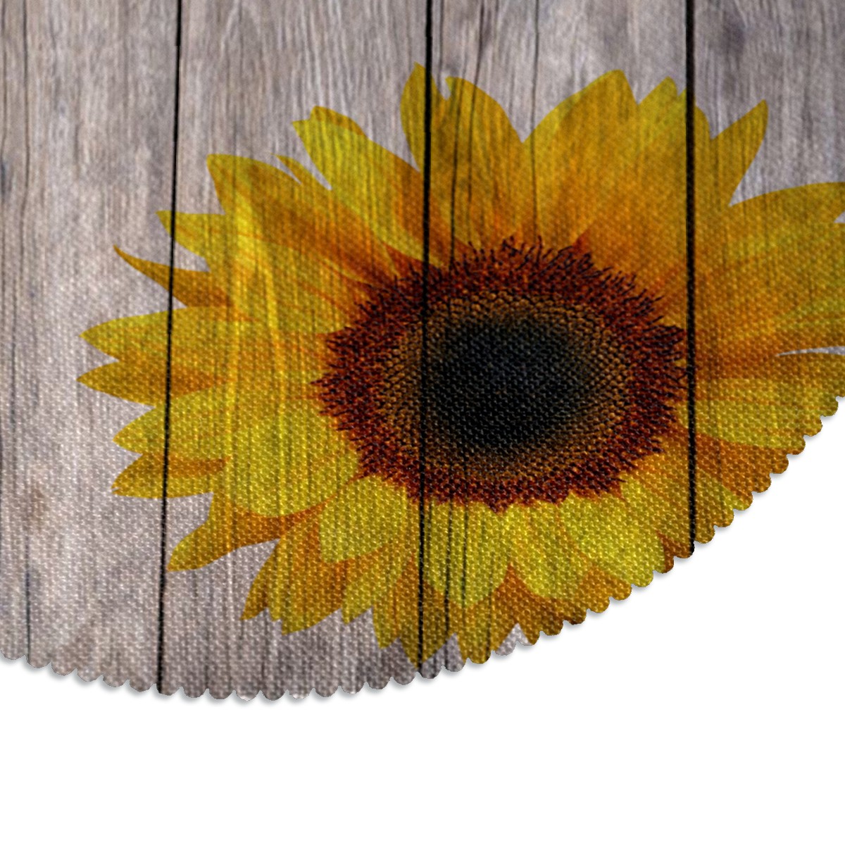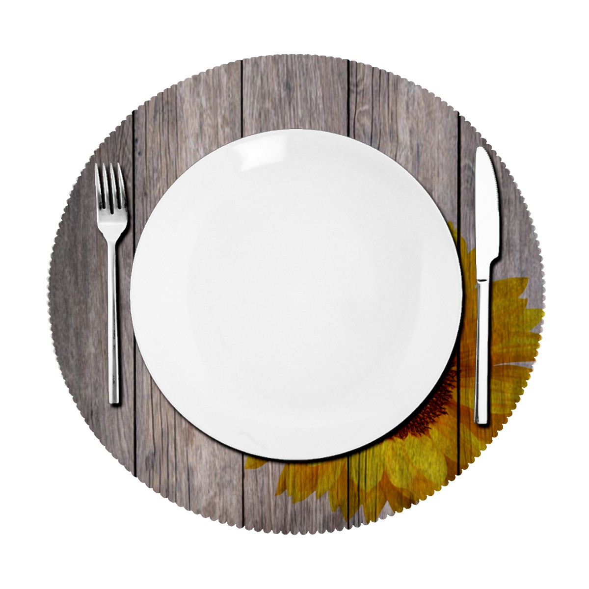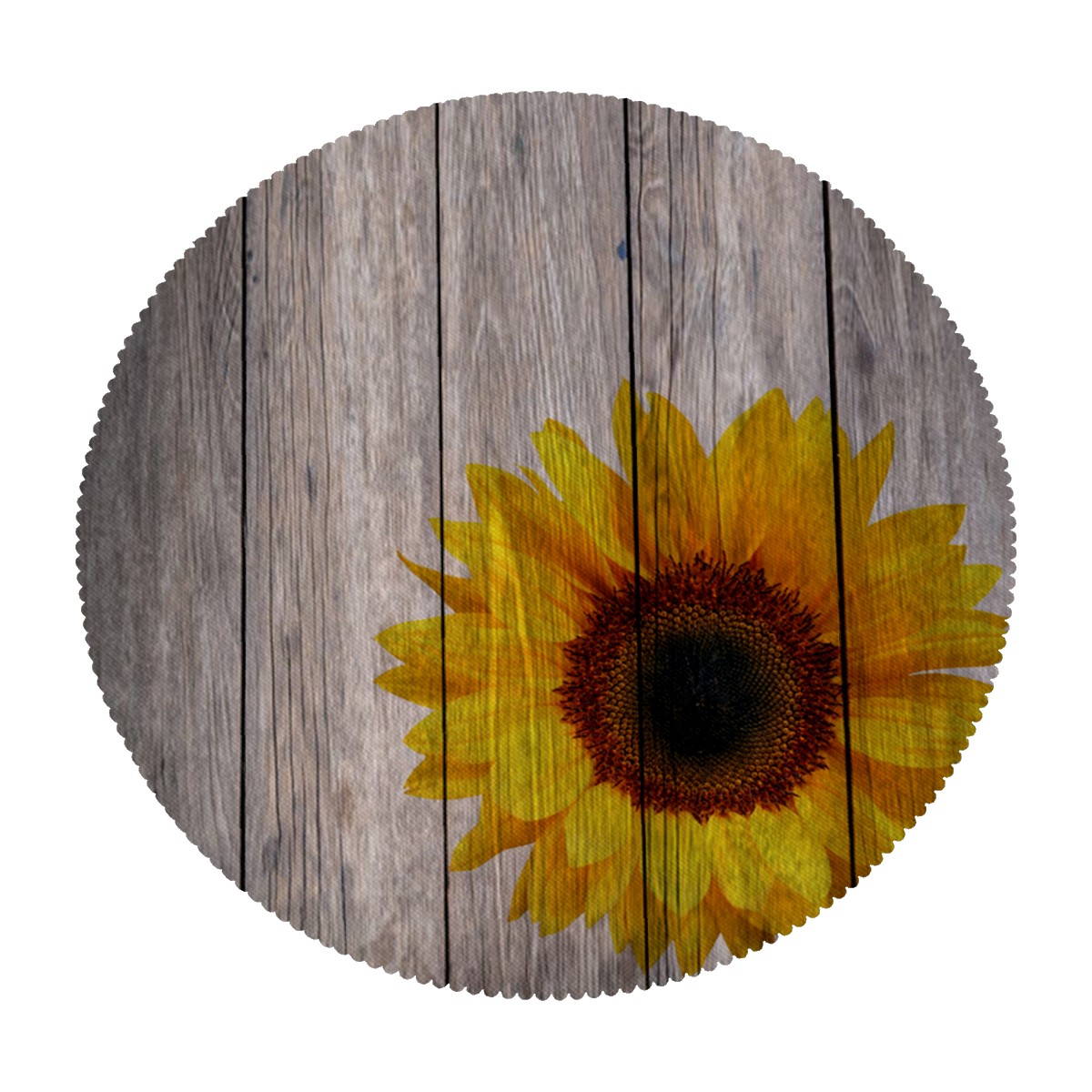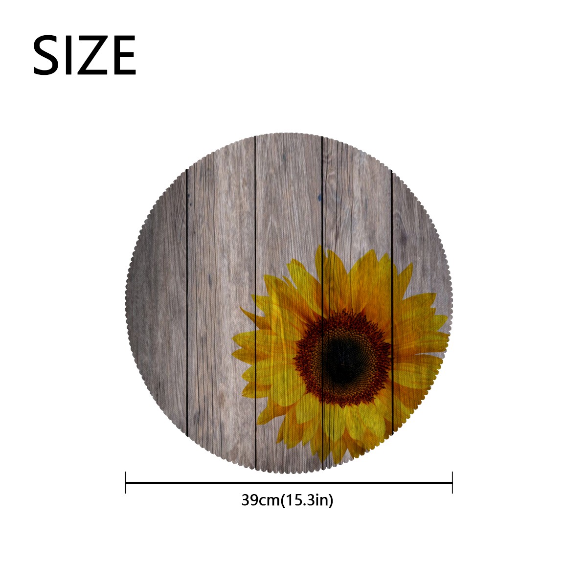 Round Placemats Set of 1 Blooming Sunflower On Wood Dining Table Mats Kitchen Waterproof Washable Place Mats Wipeable Boho Tablemats for Home Decor