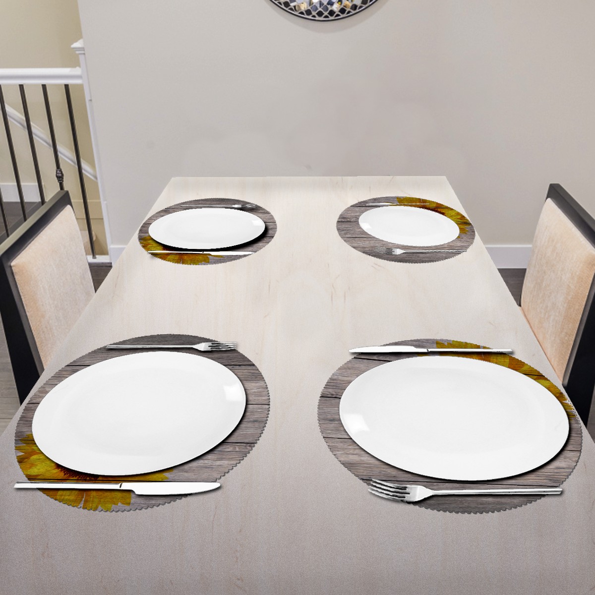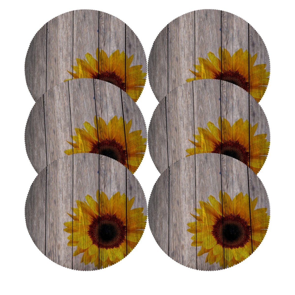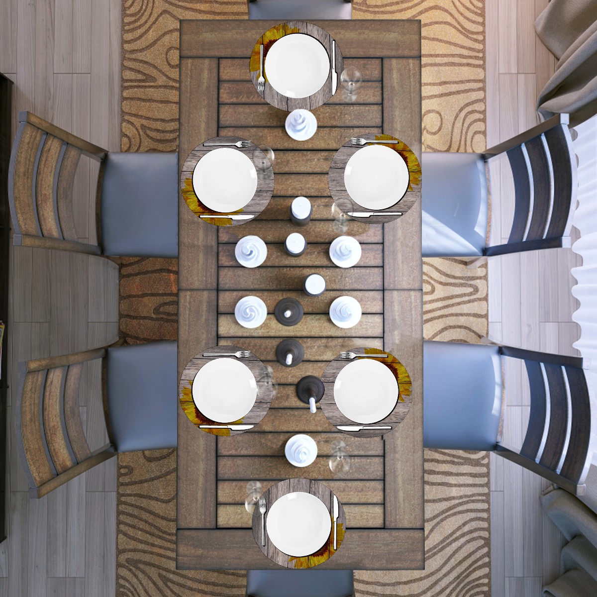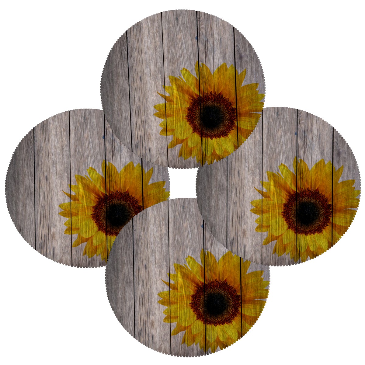 Round Placemats Set of 1 Blooming Sunflower On Wood Dining Table Mats Kitchen Waterproof Washable Place Mats Wipeable Boho Tablemats for Home Decor