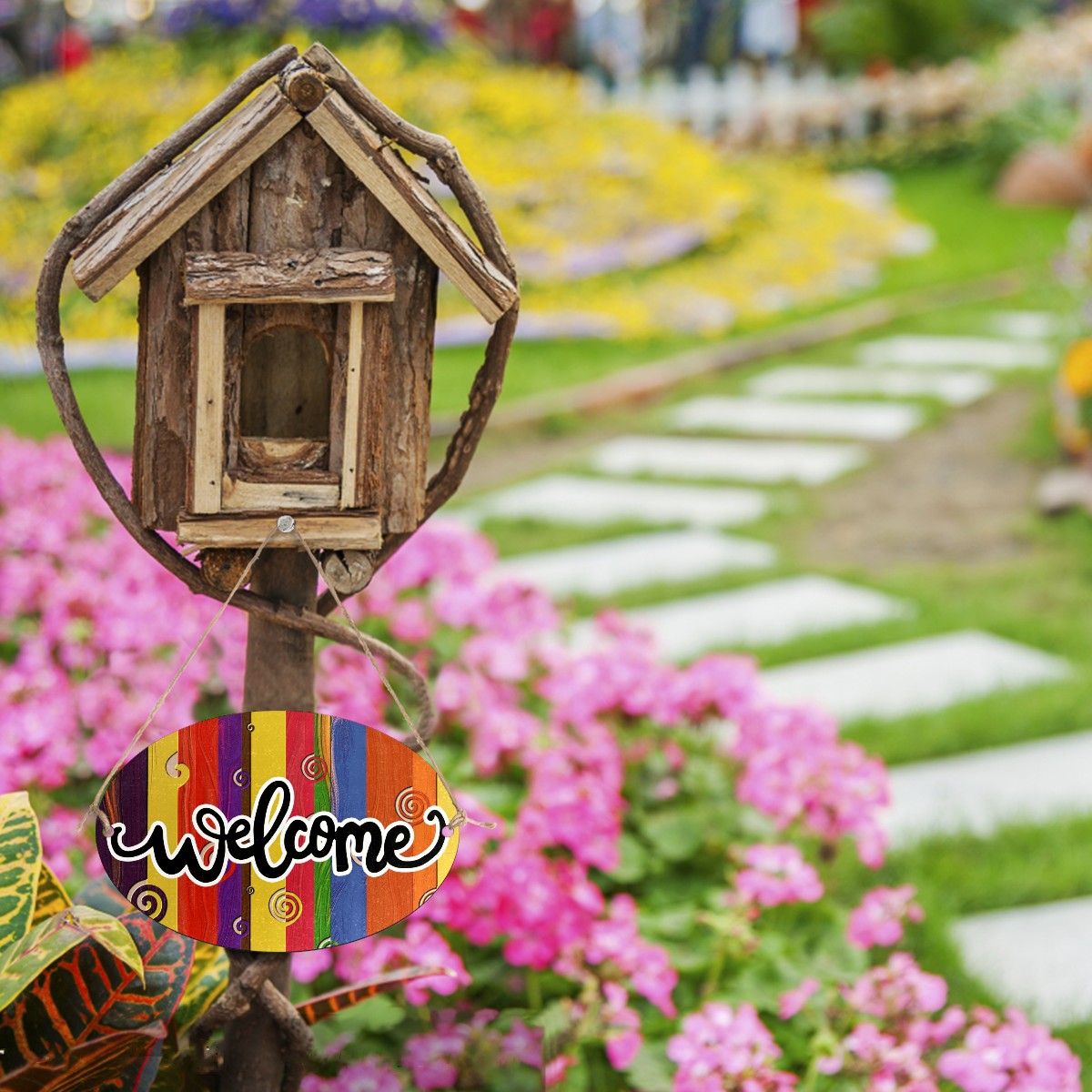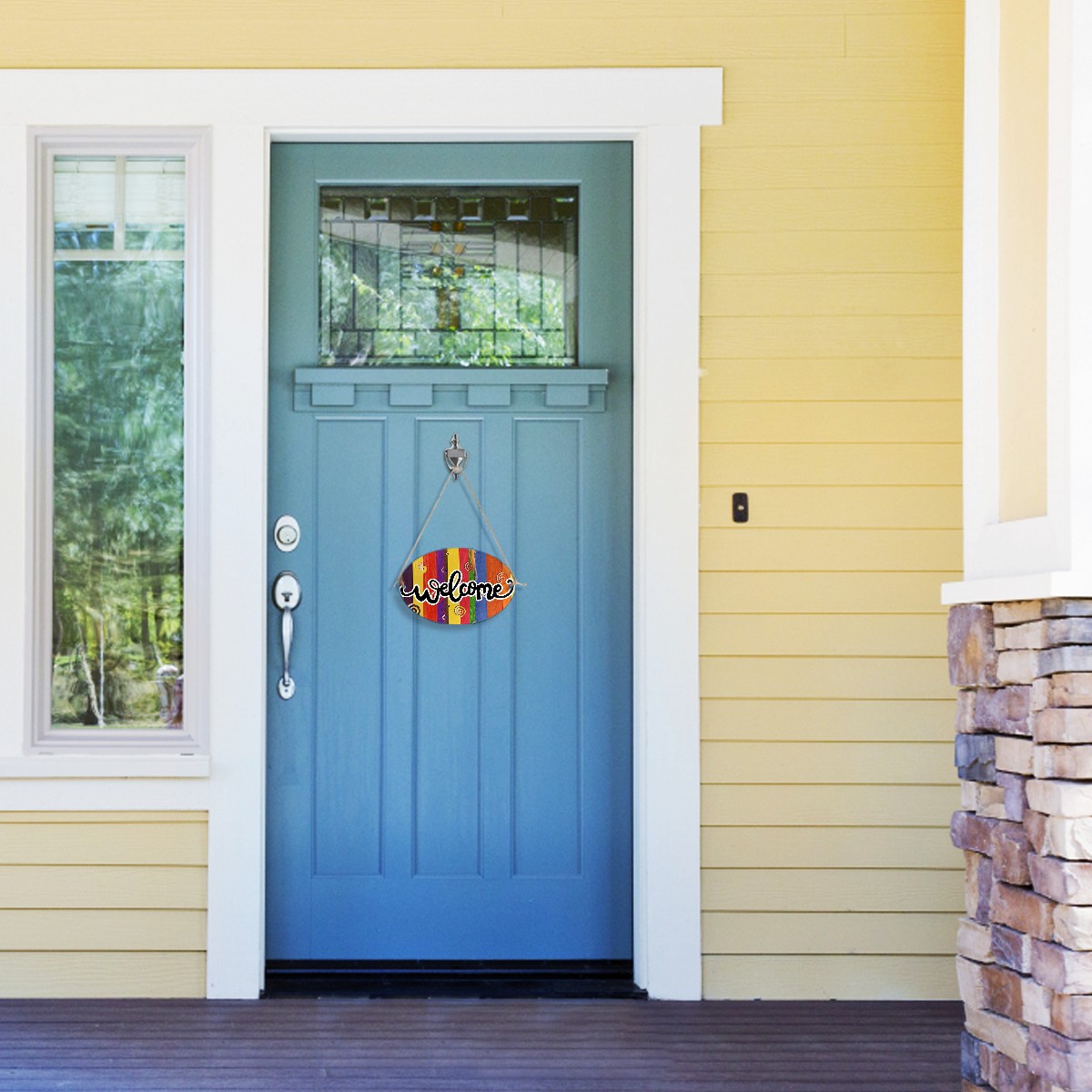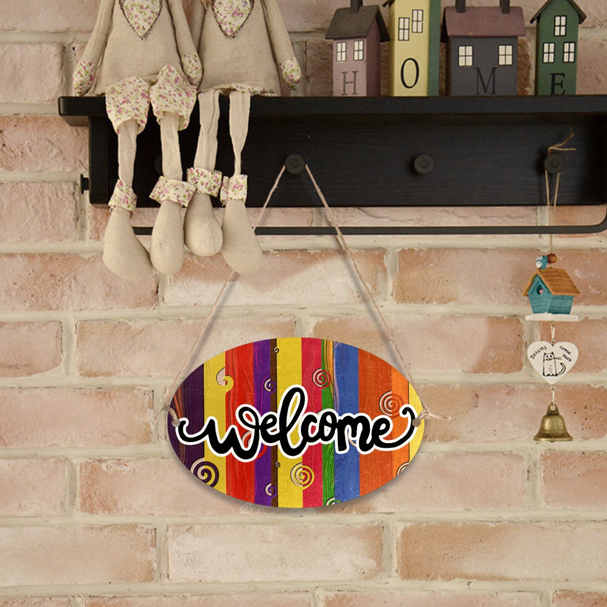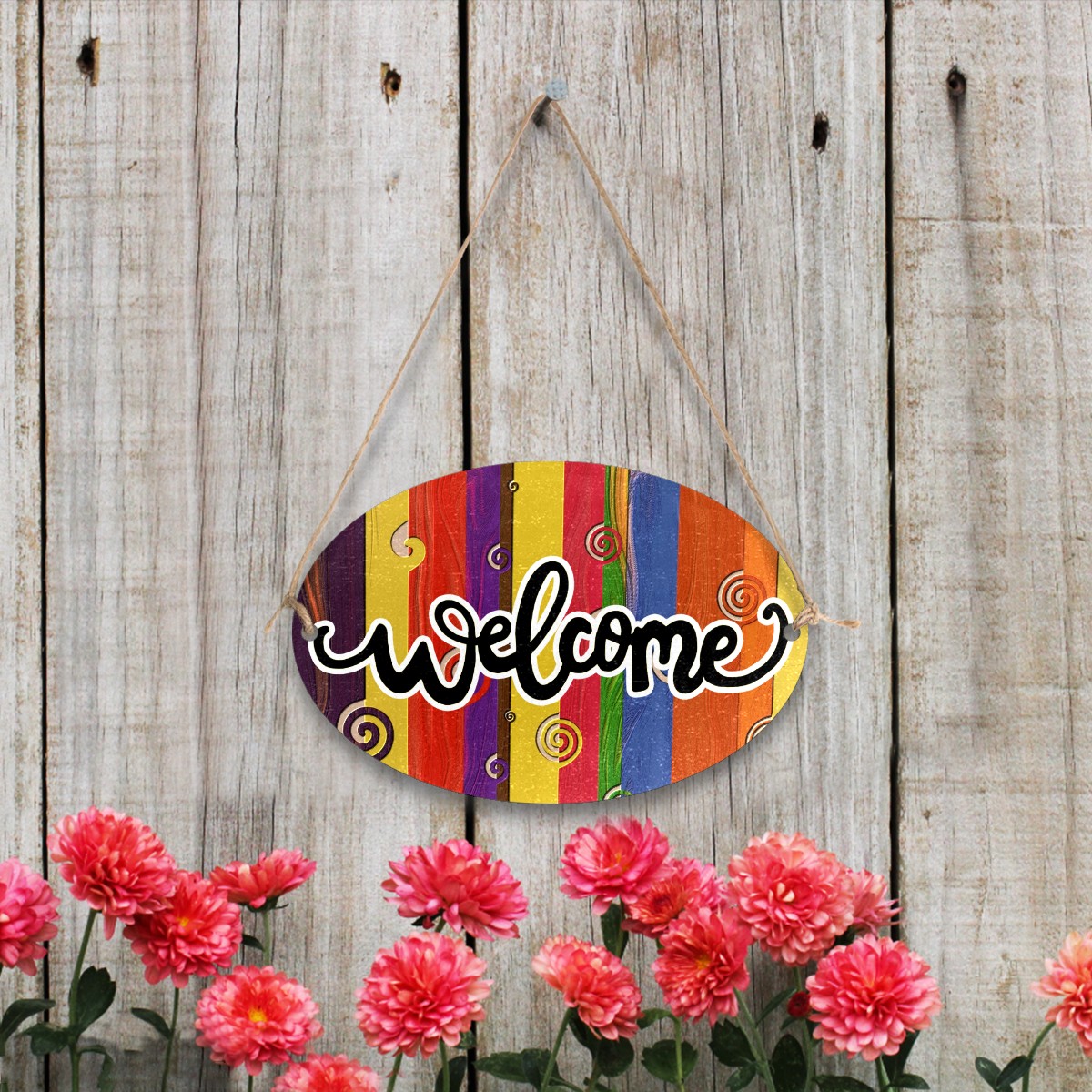 <b>FCZ Customized Welcome Sign Hanging Pendant Front Door Decor Door Hanging Sign Decorative Plaque Cafe Shop<br> Material:Environmental-friendly Fiber Wood PVC.Waterproof.Easy to clean,durable.<br> Print:One side Printed.We support customized picture,you can send us the picture or the sign on the board,we can produce it for you,customize your own welcome sign.The word "WELCOME"can be removed if you don't want it,just email us.<br> Size:12"(L) x 8"(W) x 0.2"(H).Rope Length:31.5in(80cm).Weight:170g.Porper welcome sign size for your home door,office,shop and garden.<br> Design:Two holes on the plaque for easy installation,includes two attached strong ropes to hang on your entryway<br> Perfect for home,indoor.outdoor,office,yard,garden,cafe shop,farmhouse,kitchen or any place.<br> Occasions:Suit for festival,Halloween,Christmas,Easter,Valentines,birthday party,anniversary party,wedding,New Year and etc.</b>