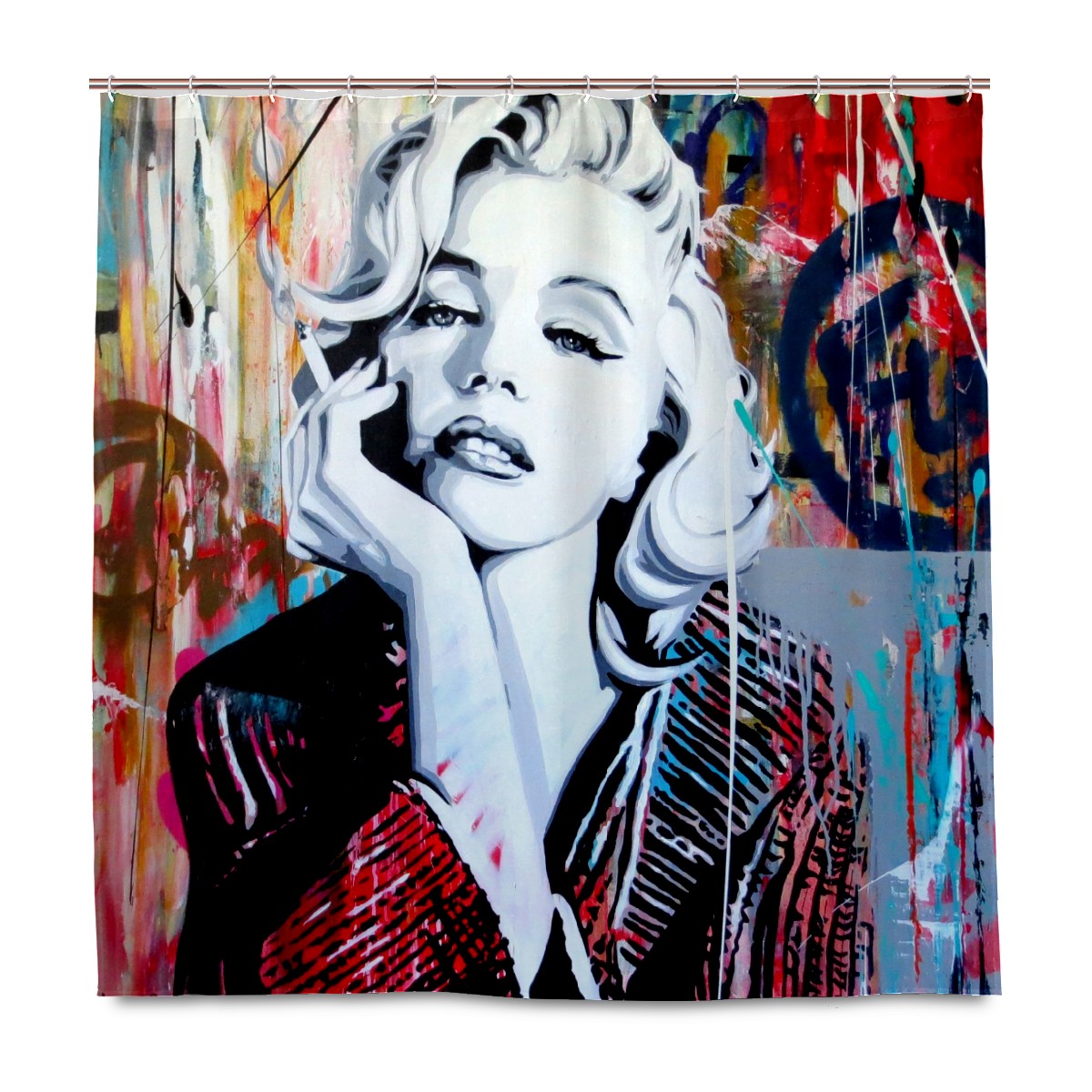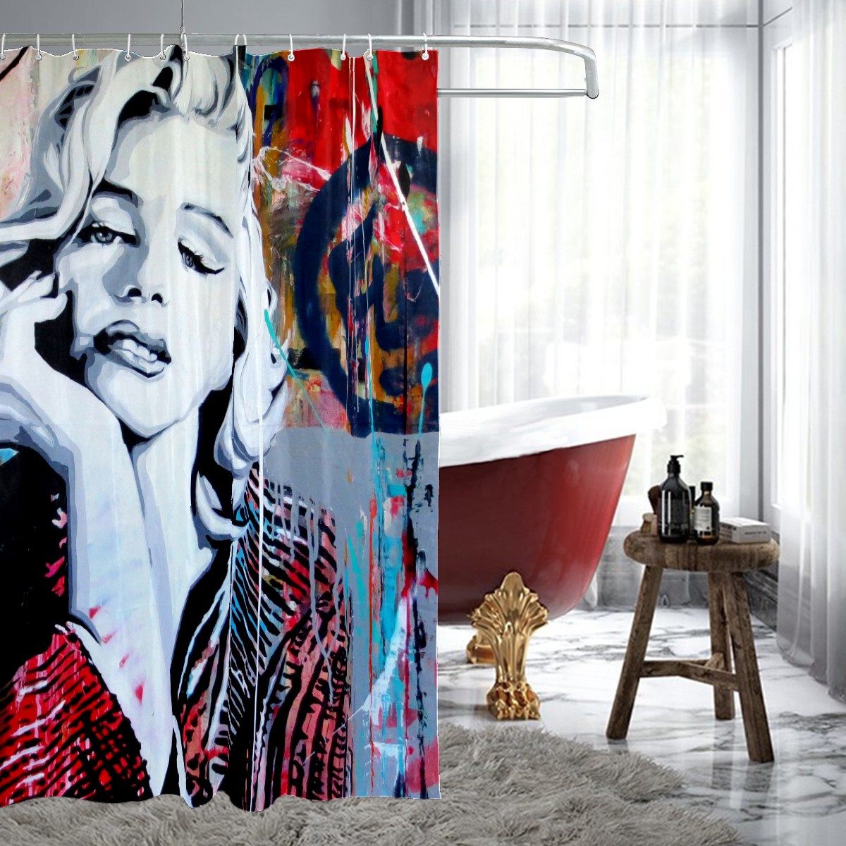 Marilyn Monroe Shower Curtain Set Mould and Mildew Resistan Home Decor Polyester Waterproof Fabric Bath Curtains with 12 Hooks 153x183 cm