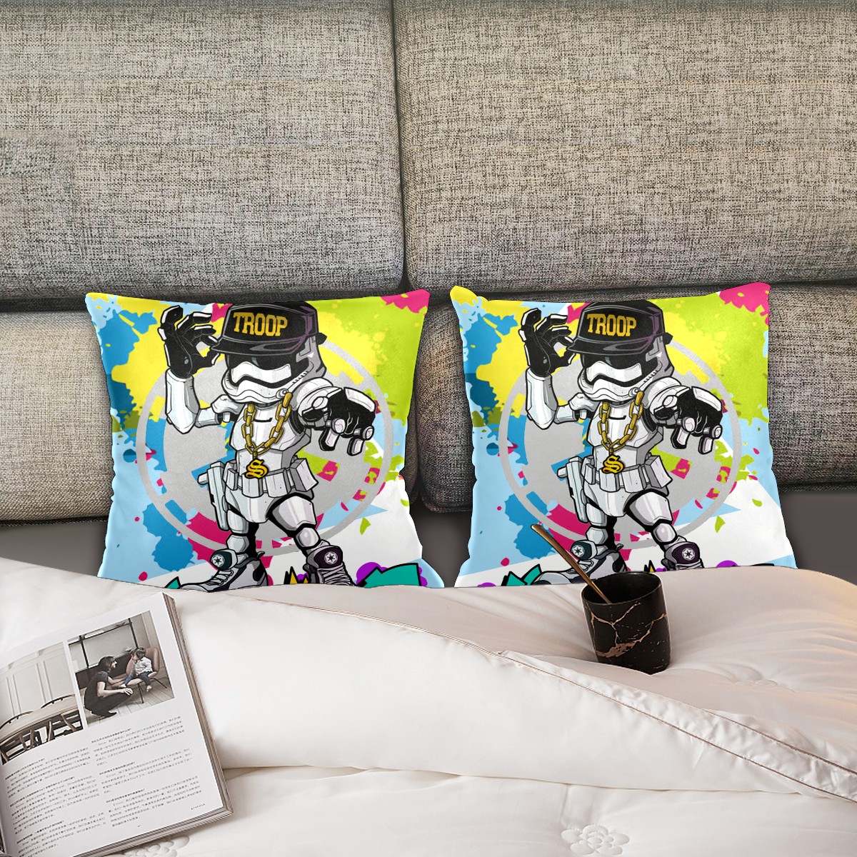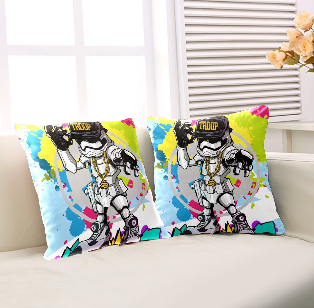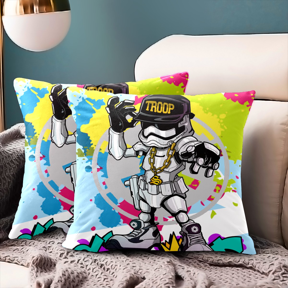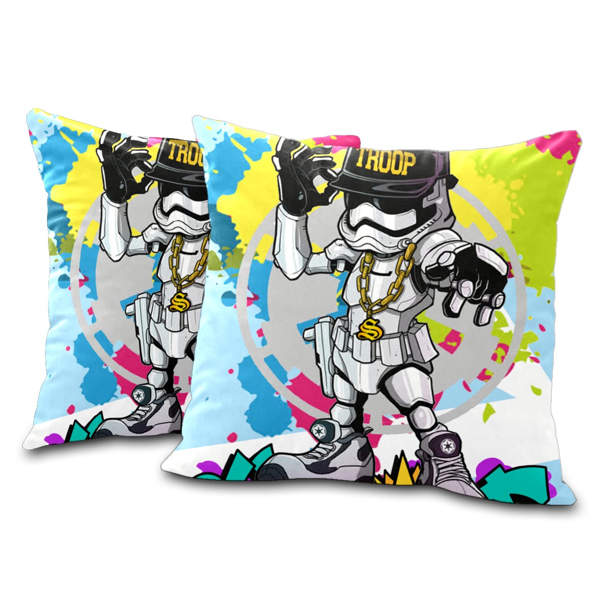Cute Stars Wars Pop Art Pillow Covers 16x16 Square Decorative Throw Pillow Cover Case Soft Velvet Cushion Cover for Couch Sofa Bed Living Room Car Home Decoration Set of 2