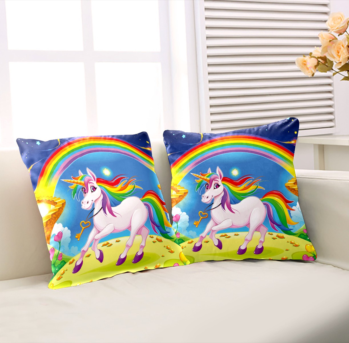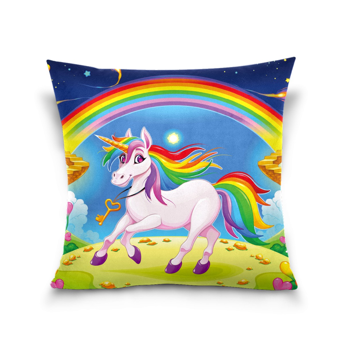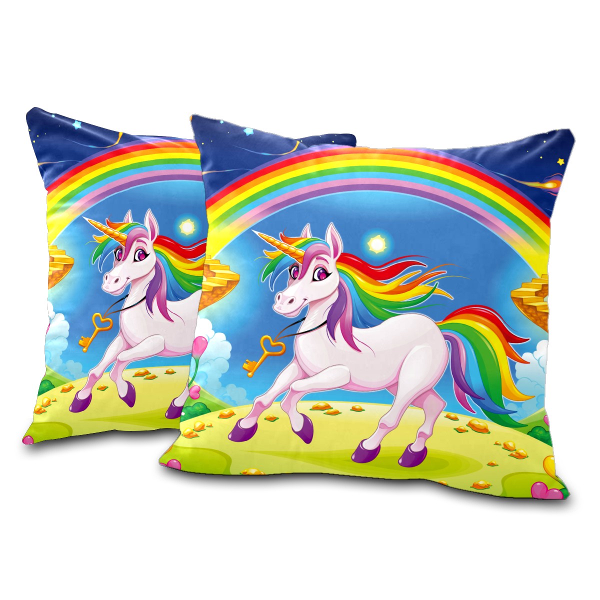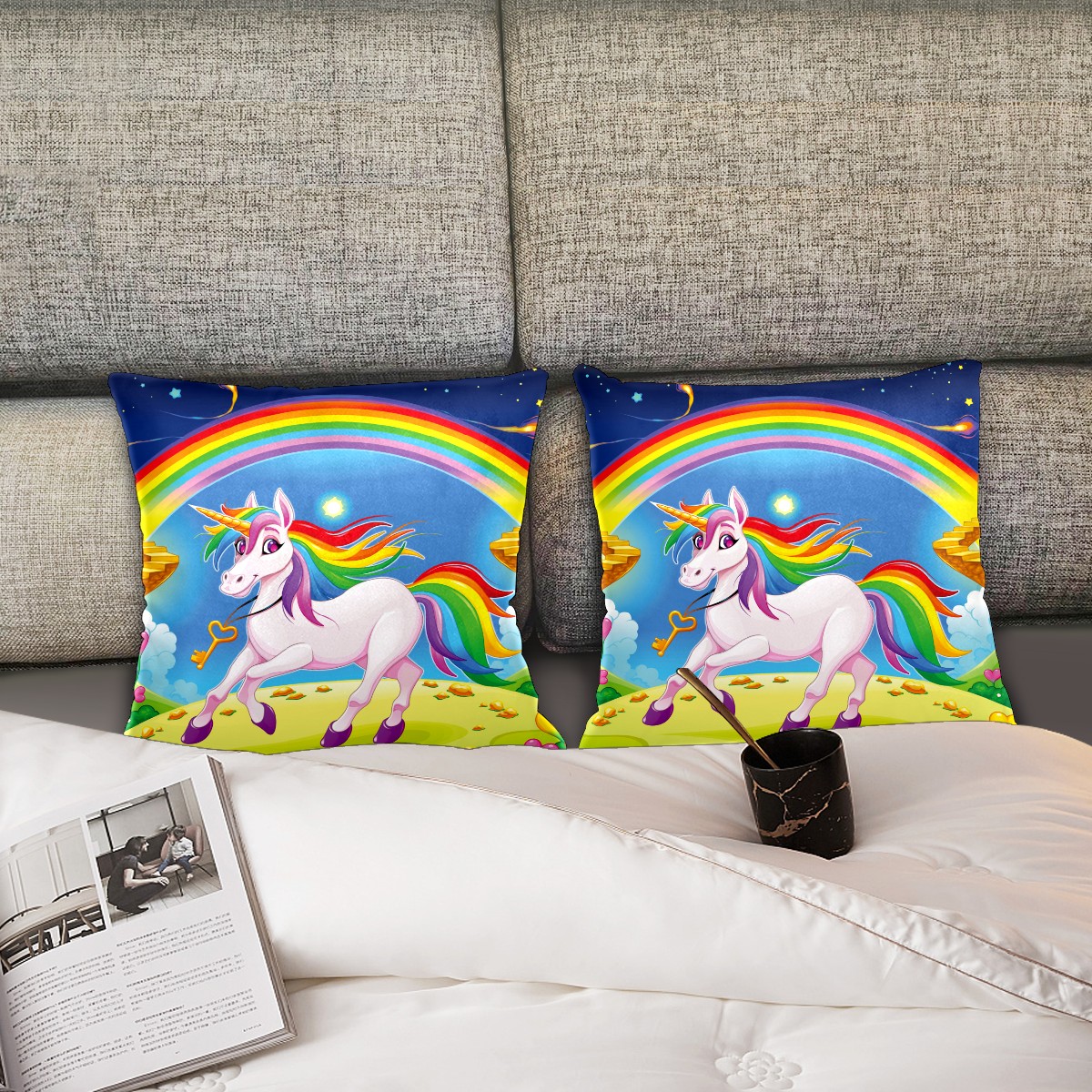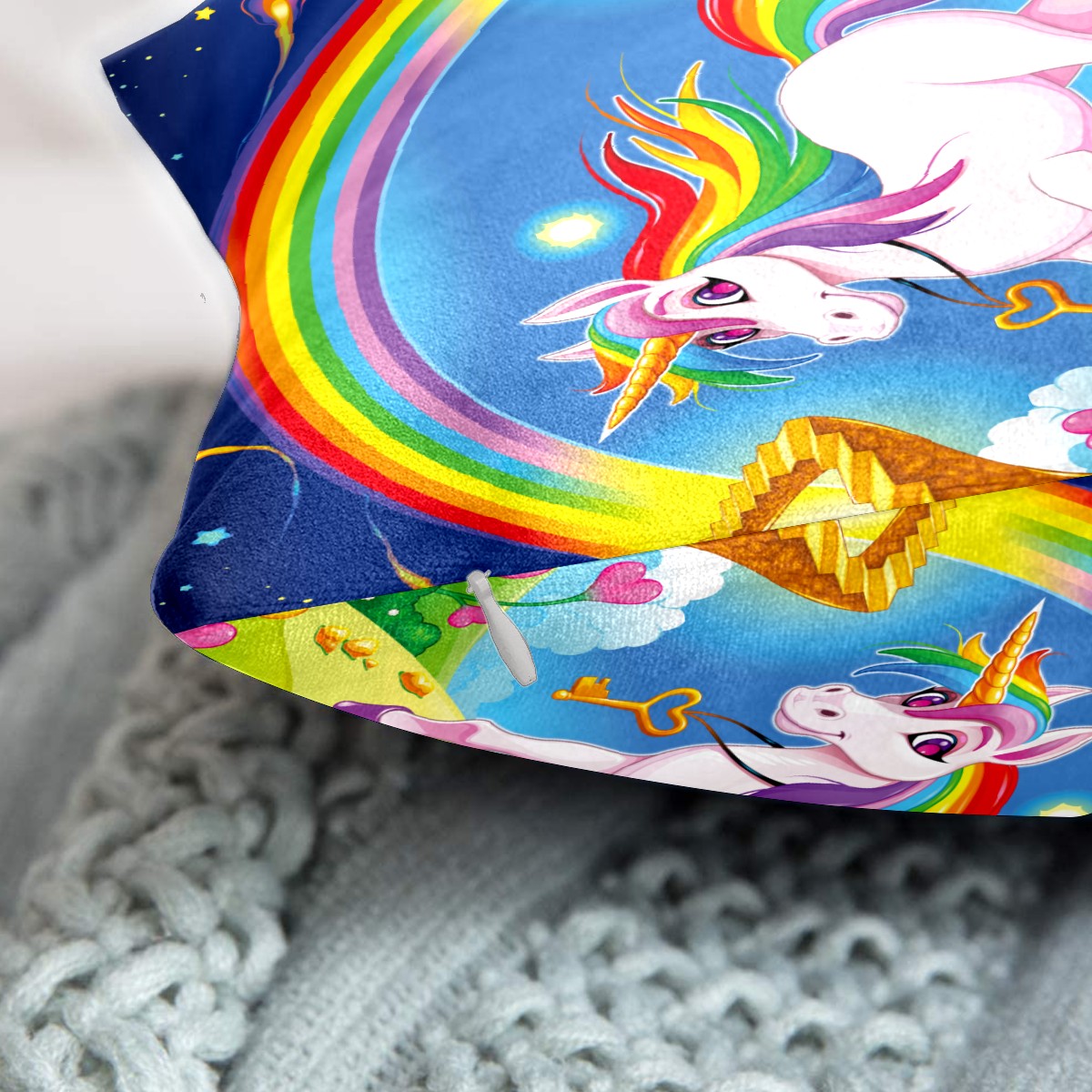 Magic Unicorn Pillow Covers 16x16 Square Decorative Throw Pillow Cover Case Soft Velvet Cushion Cover for Couch Sofa Bed Living Room Car Home Decoration Set of 2