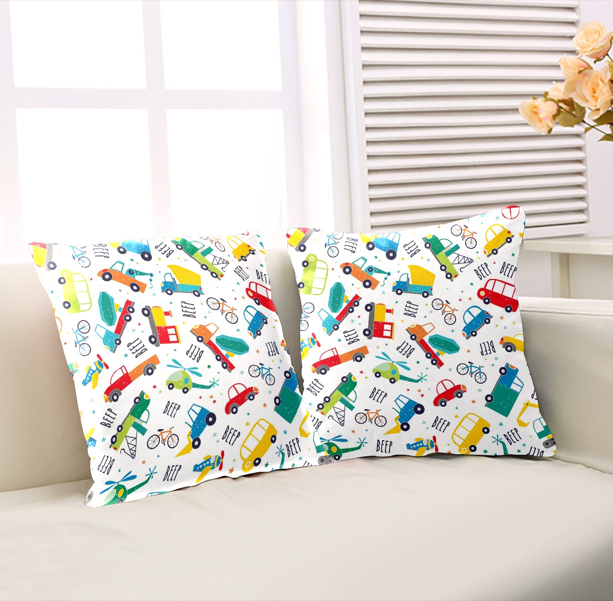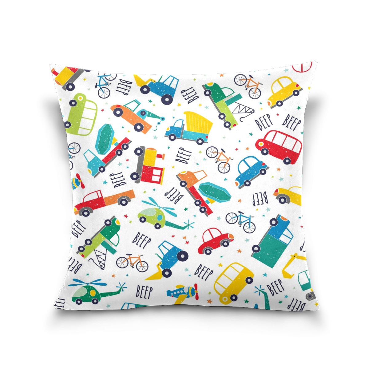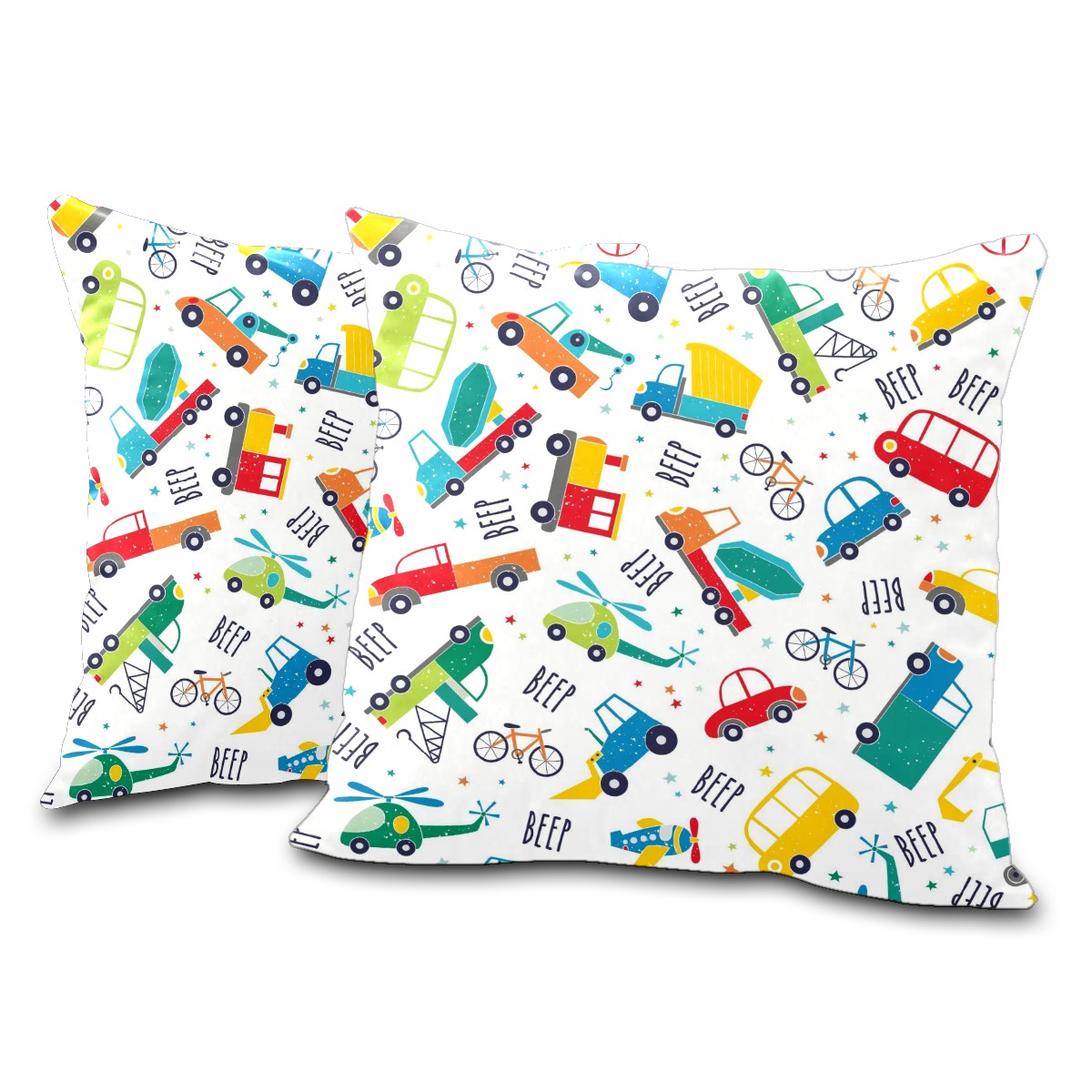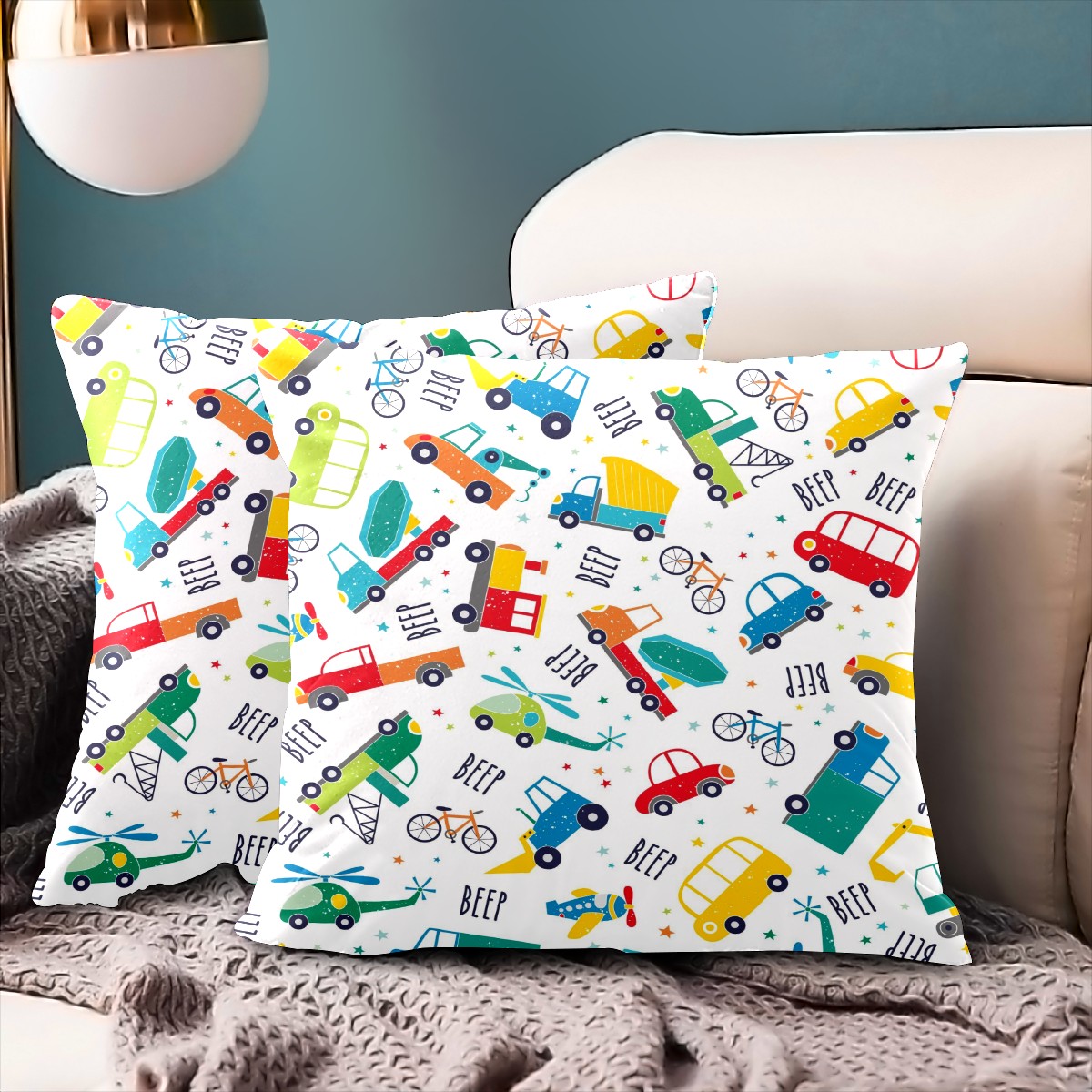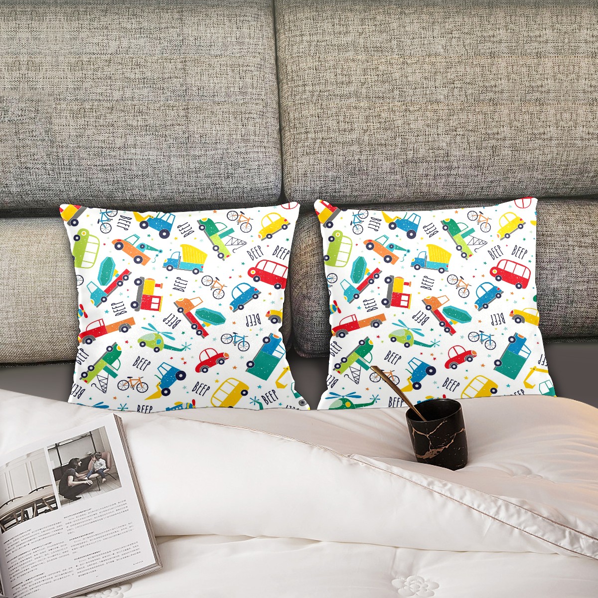 Mini Cartoon Car Pillow Covers 16x16 Square Decorative Throw Pillow Cover Case Soft Velvet Cushion Cover for Couch Sofa Bed Living Room Car Home Decoration Set of 2