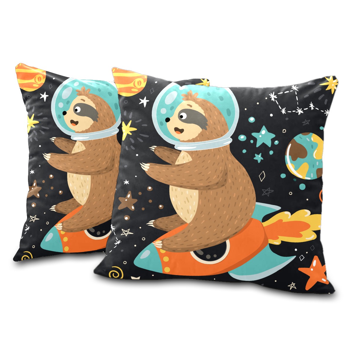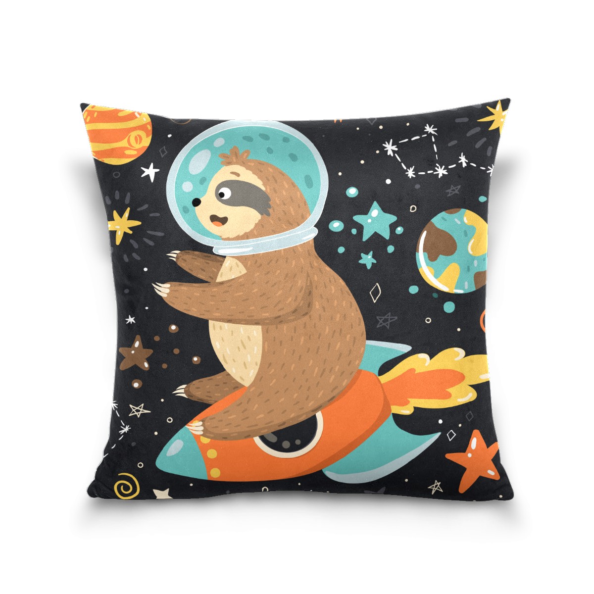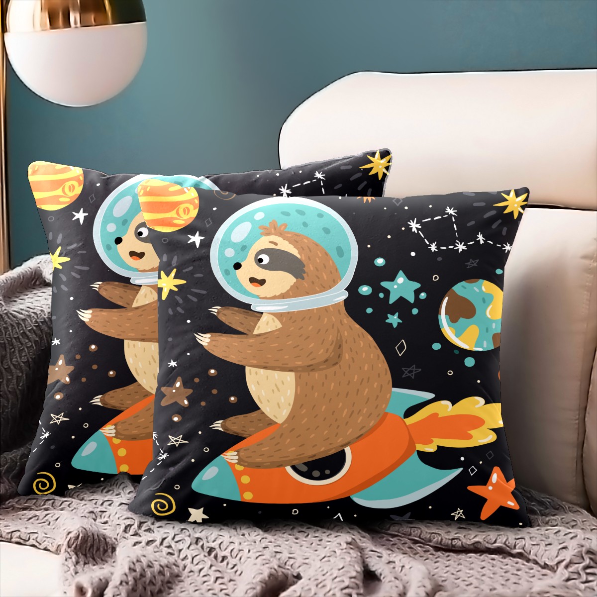 Cute Sloth Sitting On Rocket Pillow Covers 16x16 Square Decorative Throw Pillow Cover Case Soft Velvet Cushion Cover for Couch Sofa Bed Living Room Car Home Decoration Set of 2