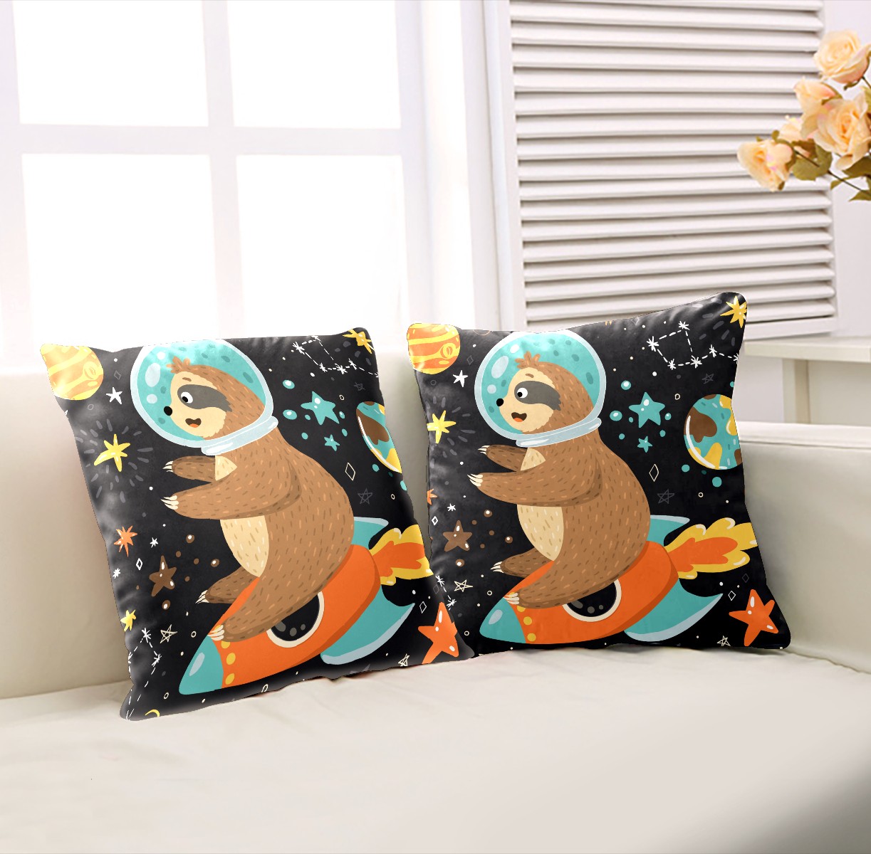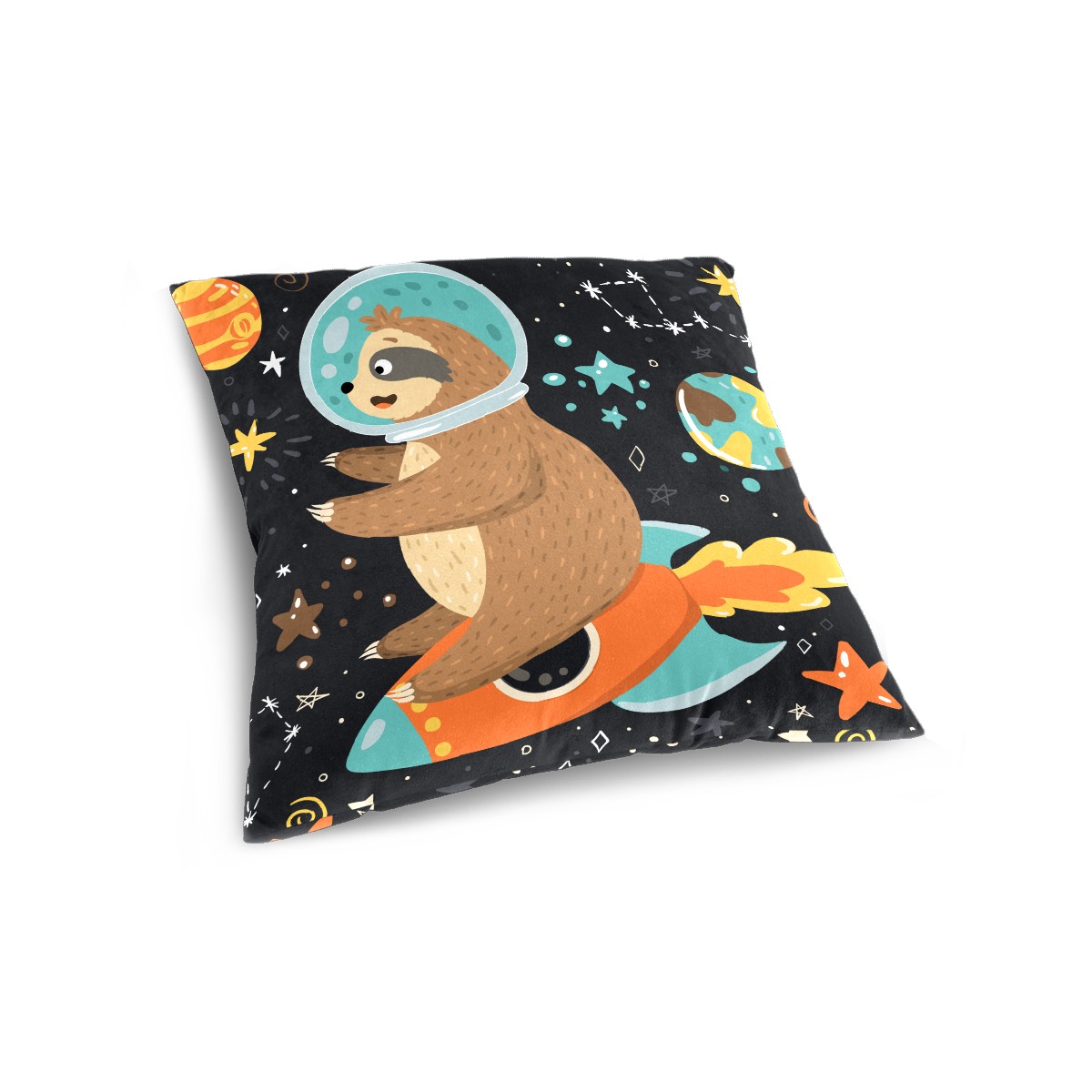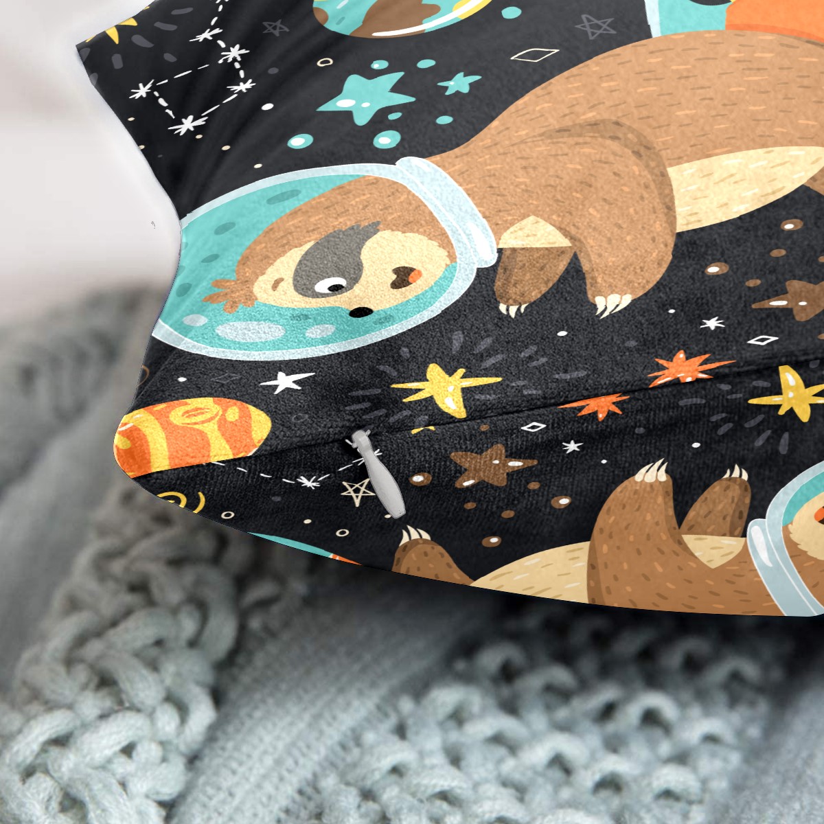 Cute Sloth Sitting On Rocket Pillow Covers 16x16 Square Decorative Throw Pillow Cover Case Soft Velvet Cushion Cover for Couch Sofa Bed Living Room Car Home Decoration Set of 2