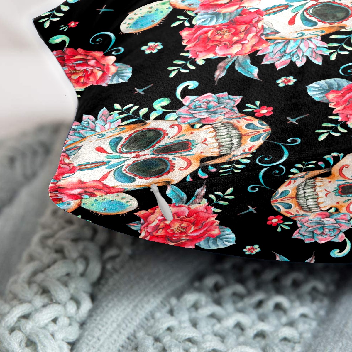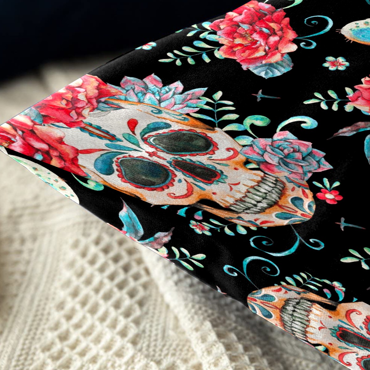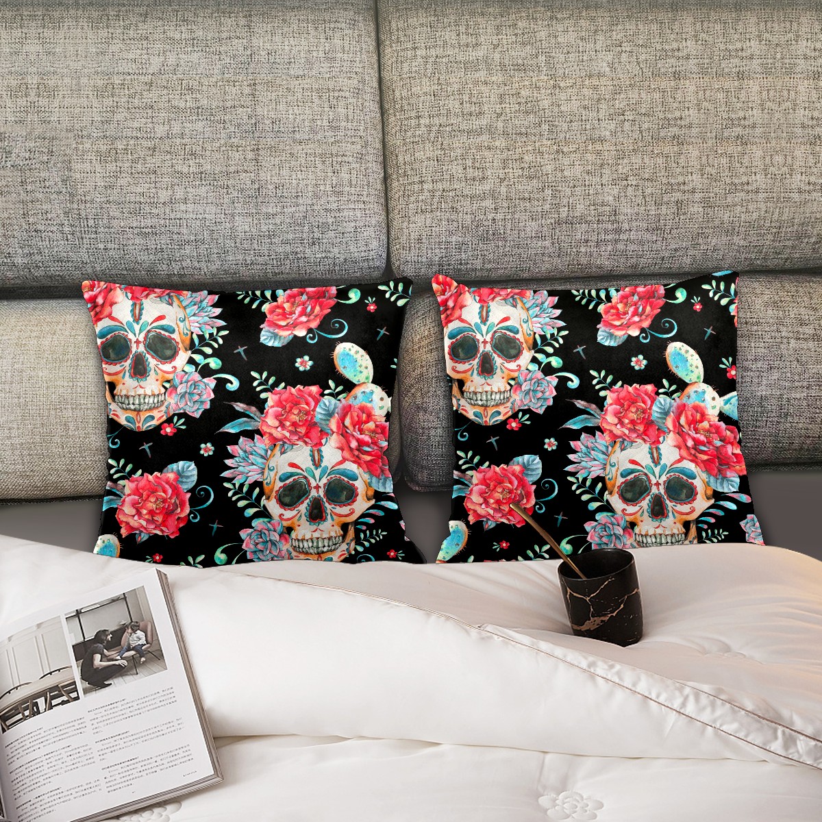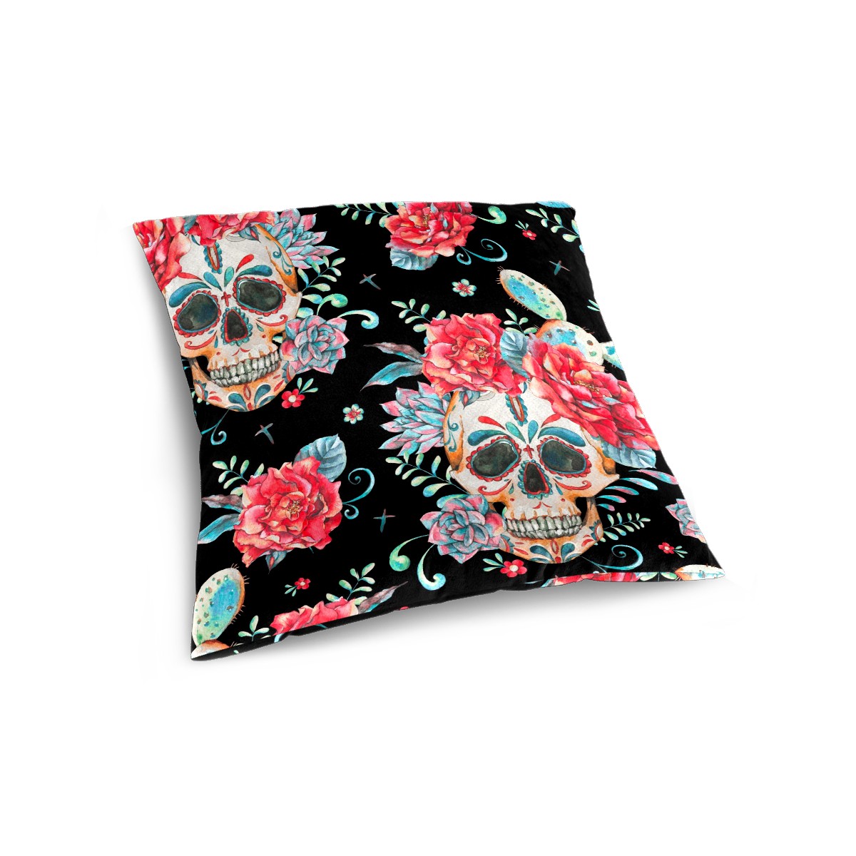 Mexican Skull Pink Peony Flower Pillow Covers 16x16 Square Decorative Throw Pillow Cover Case Soft Velvet Cushion Cover for Couch Sofa Bed Living Room Car Home Decoration Set of 2