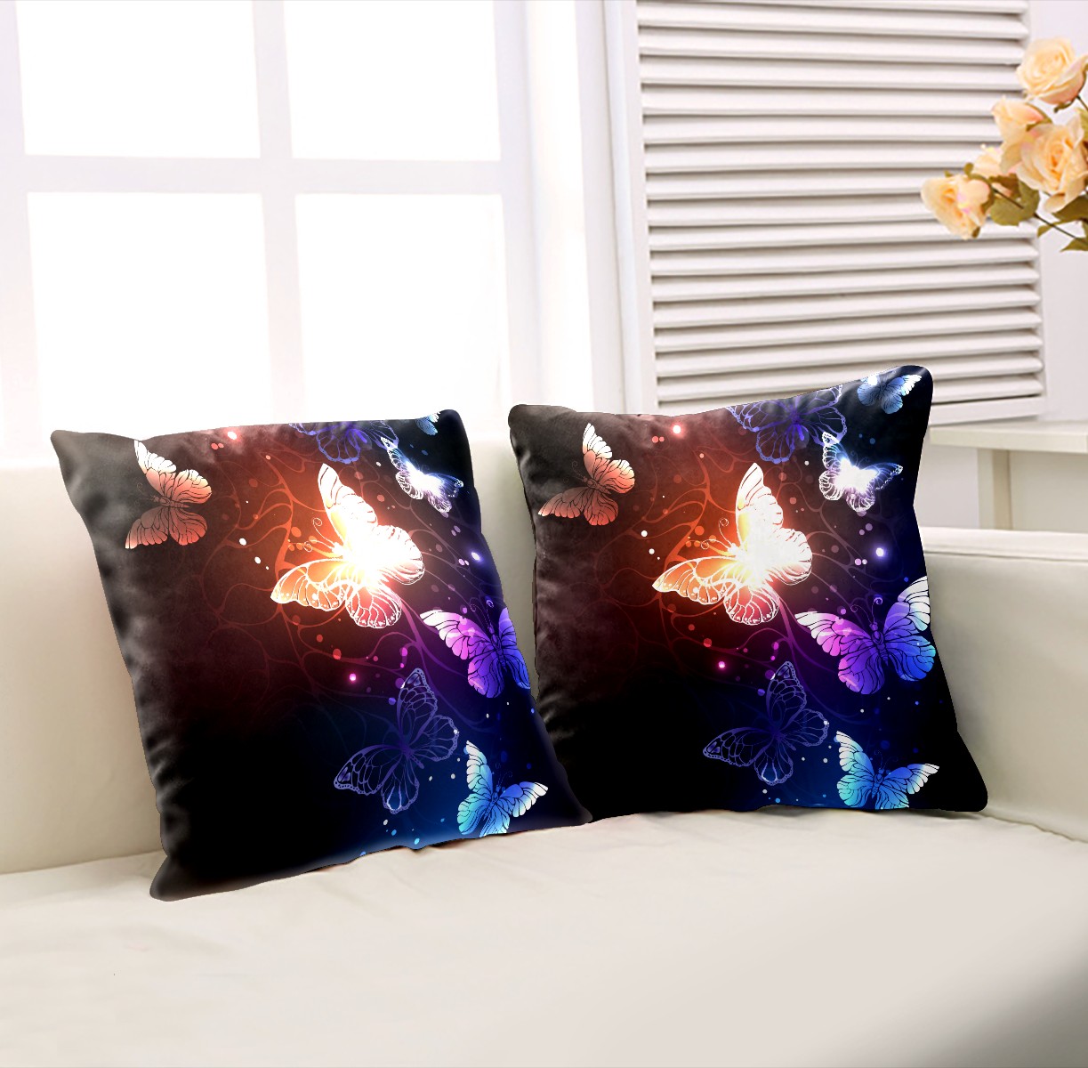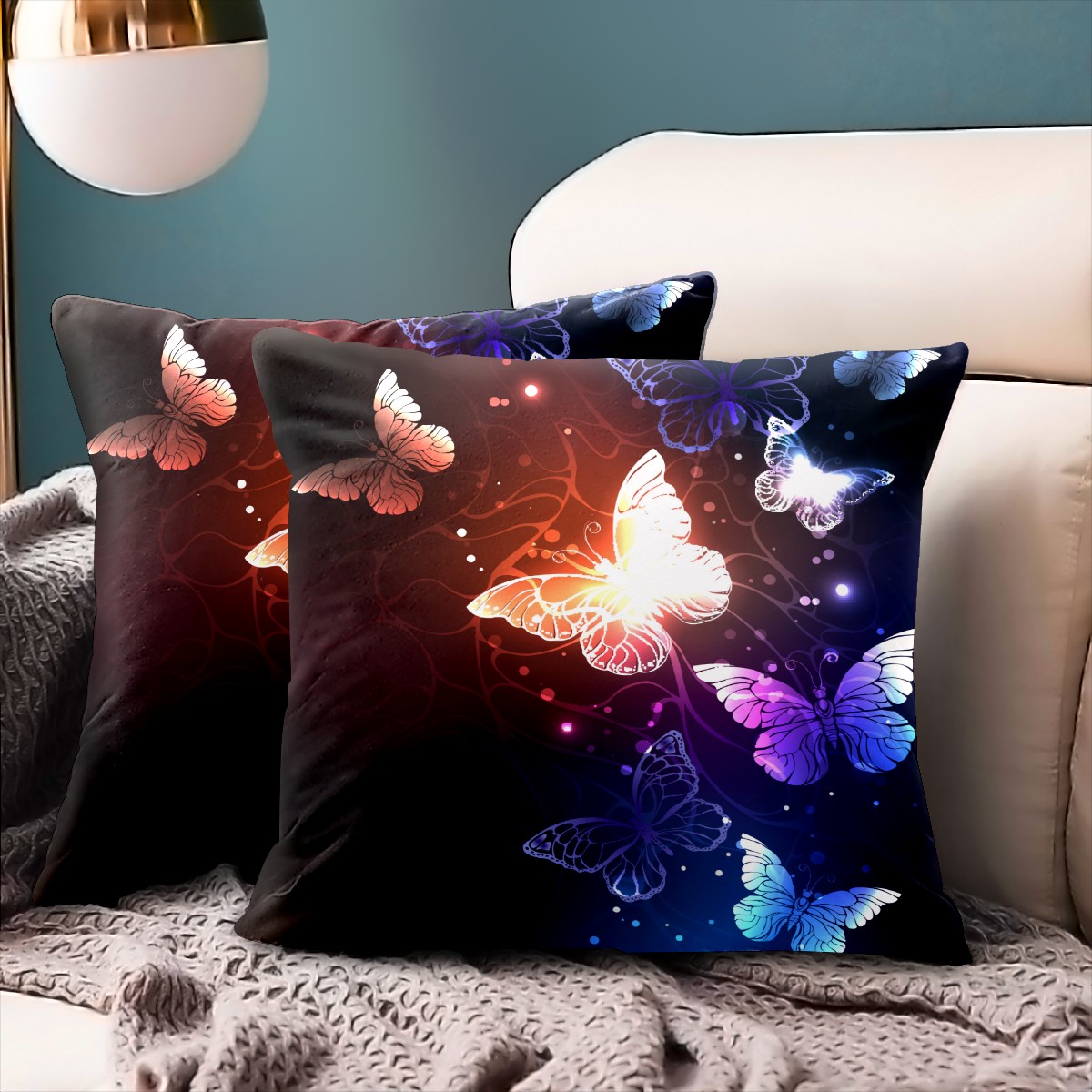 Pretty Butterfly Pillow Covers 16x16 Square Decorative Throw Pillow Cover Case Soft Velvet Cushion Cover for Couch Sofa Bed Living Room Car Home Decoration Set of 2