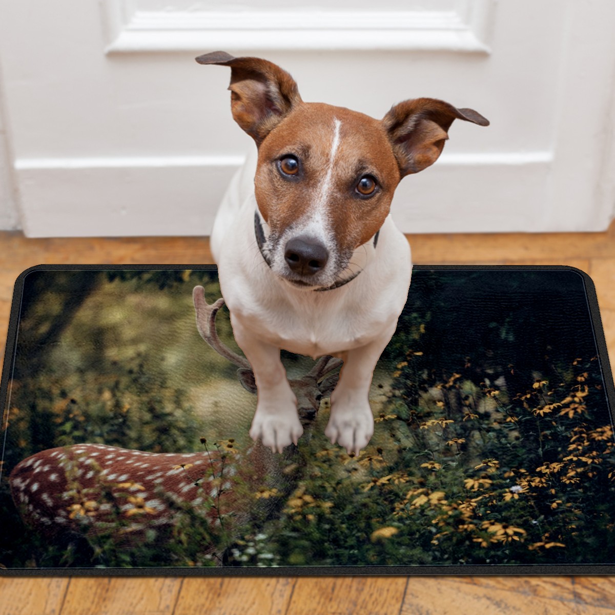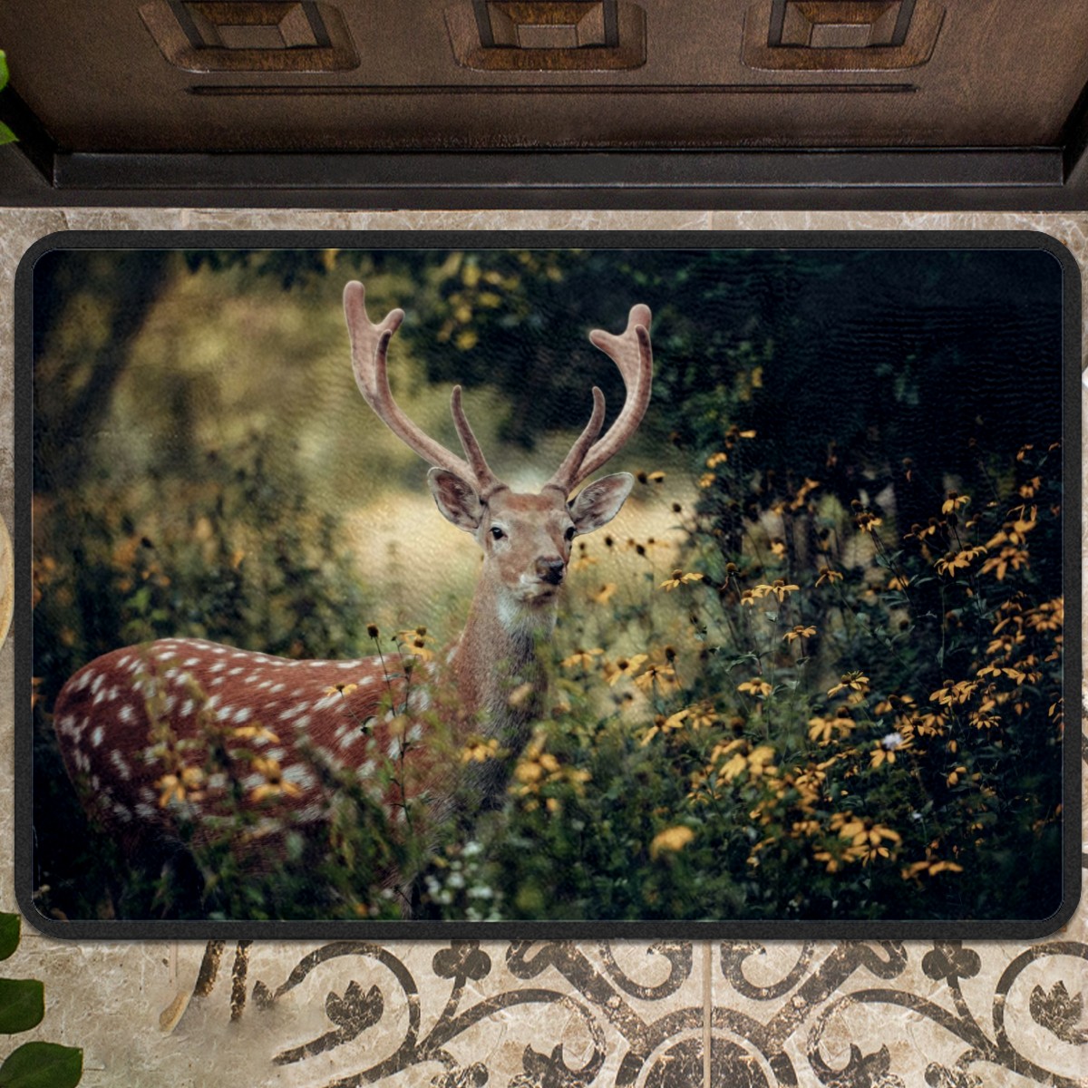 Indoor Doormat Whitetail Deer Standing In Autumn Wood Decorative Front Door Entryway Mats Comfort Floor Mat for Indoor or Outdoor Use 24x16 inch