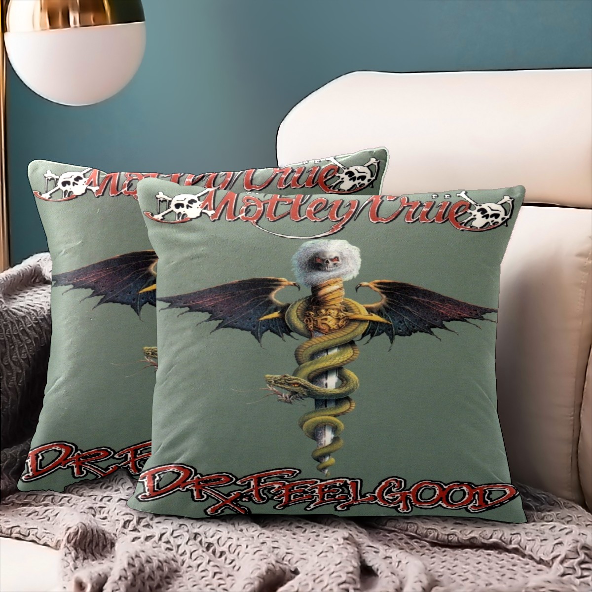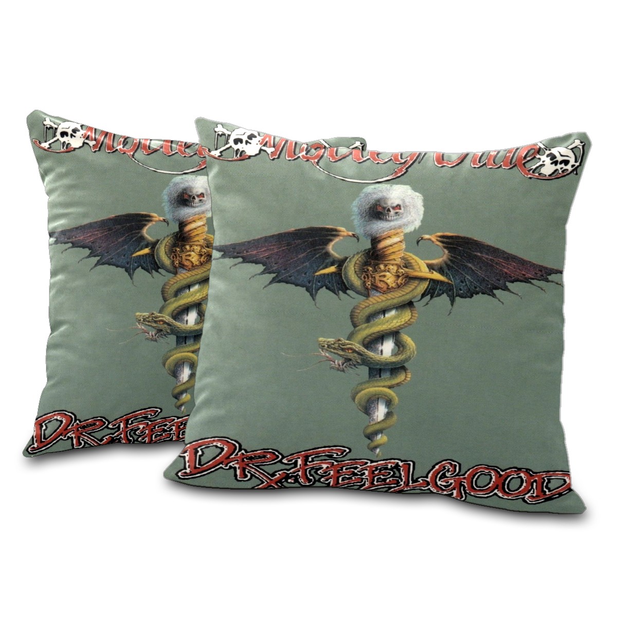 Mo-tley C-rue Dr. Feelgood Throw Pillow Cases Pack of 2 Decorative Pillow Cover 16 x 16 inch Cushion Case Bedroom Sofa Decor 3 Sizes