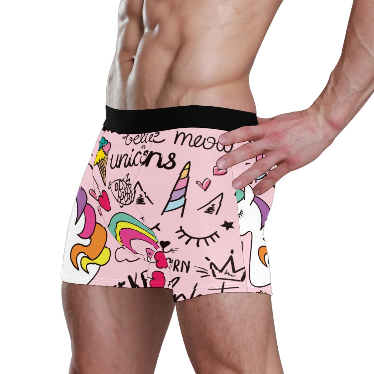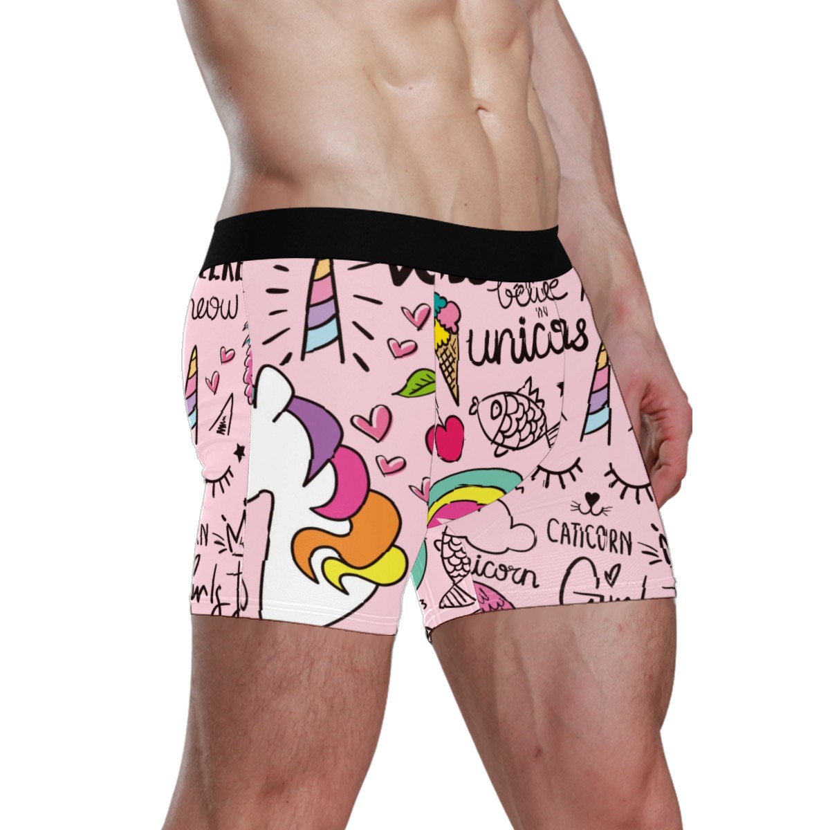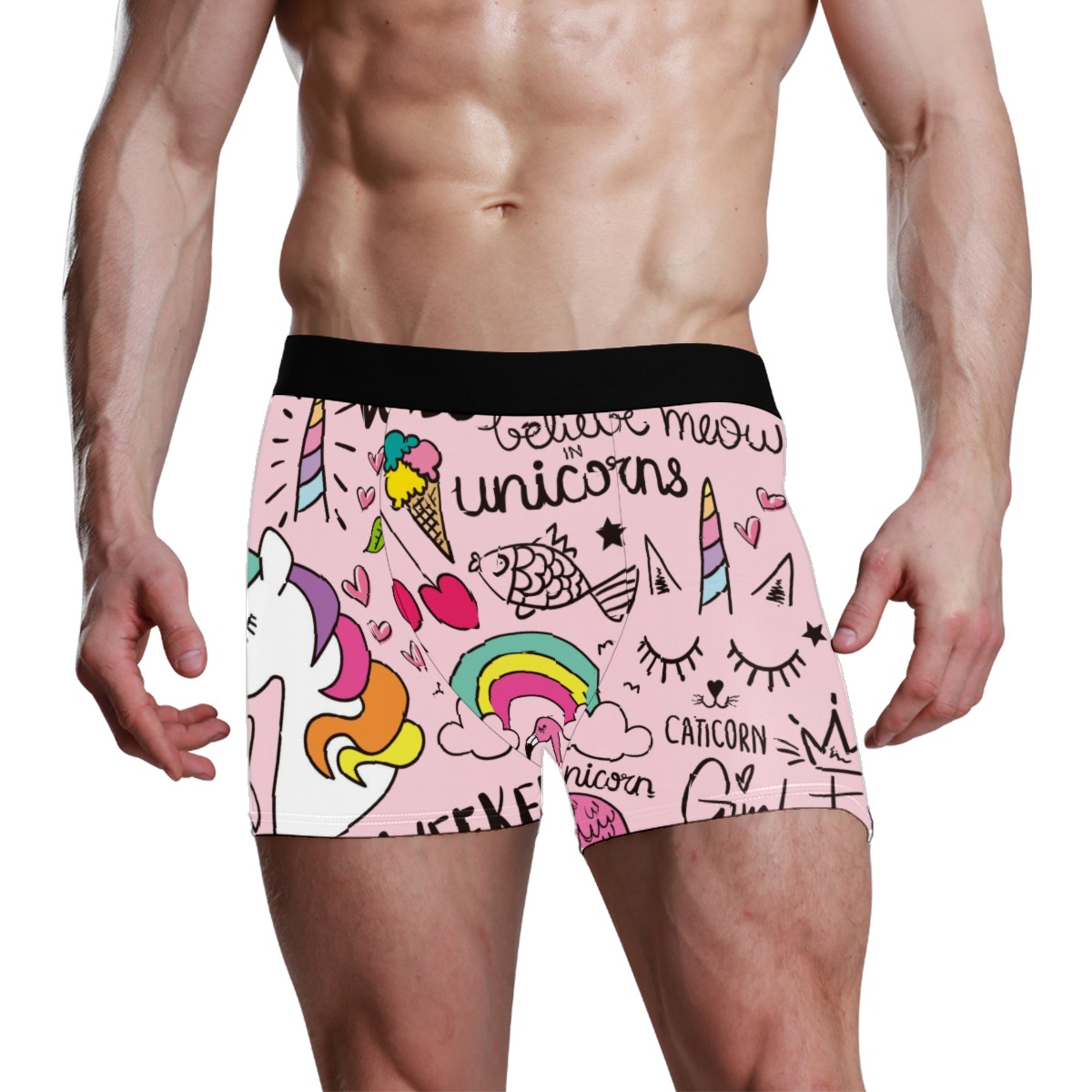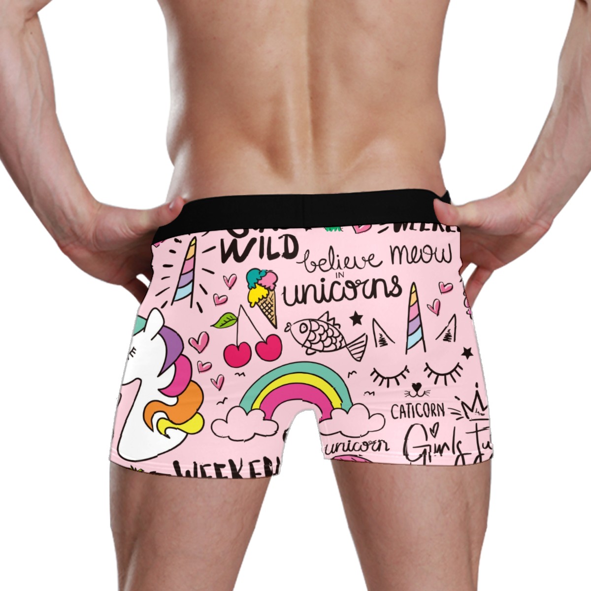 Mens Boxer Briefs Underwear Unicorn Flamingos Pink Boys Soft Underpants Breathable Stretch Shorts Gifts for Men Kids Youth Adult Teen Children