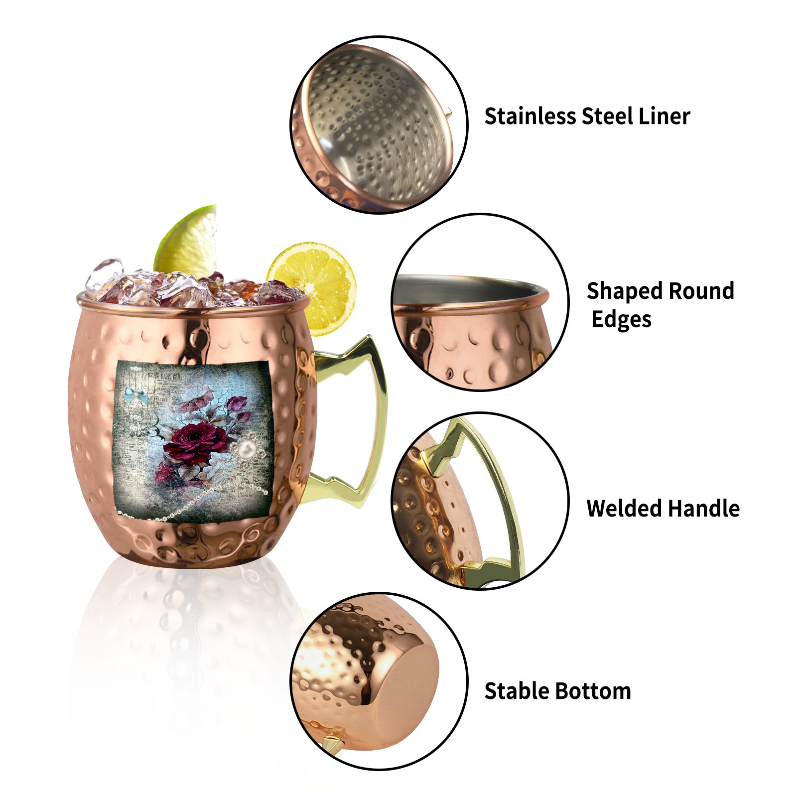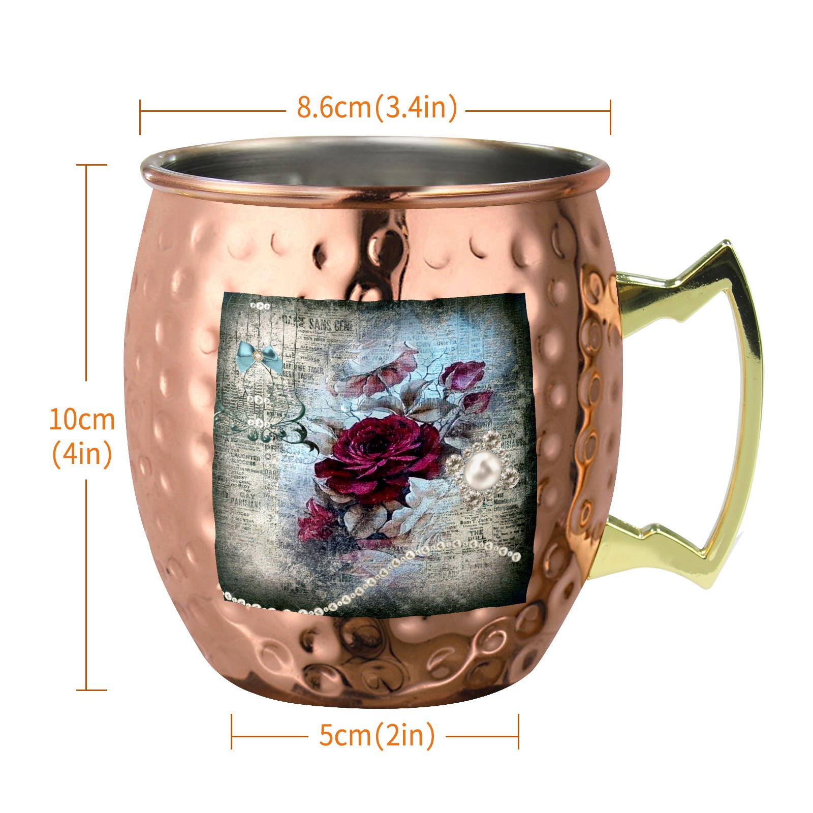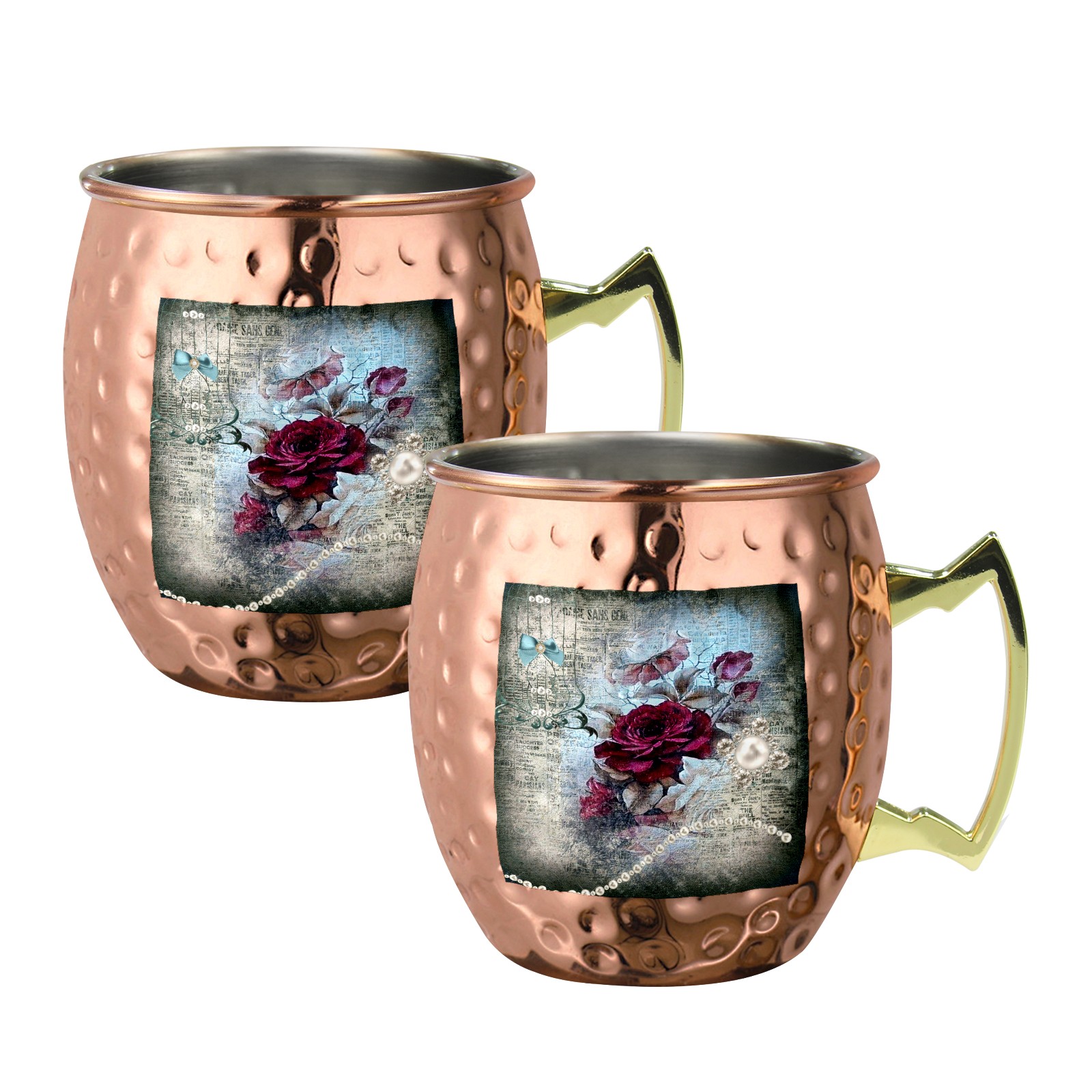 Victorian Rose Ephemera Moscow Mule Copper Mugs Stainless Steel Mugs Cocktail Tumbler Cups Set Of 2 Dimple Finish