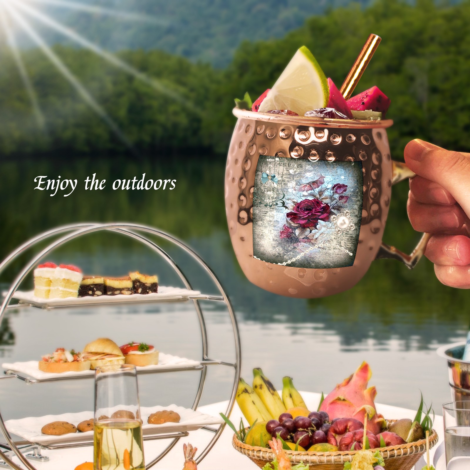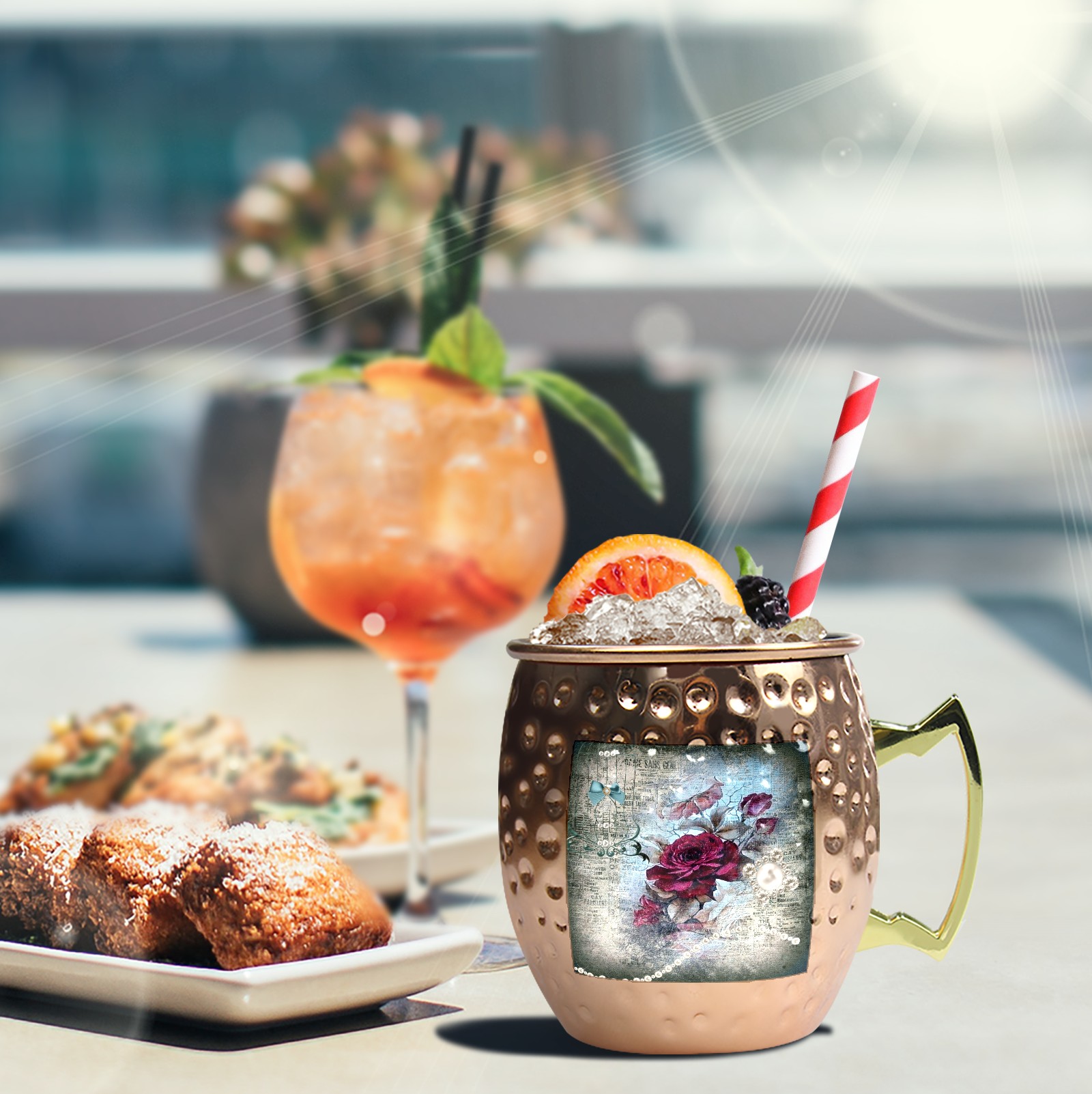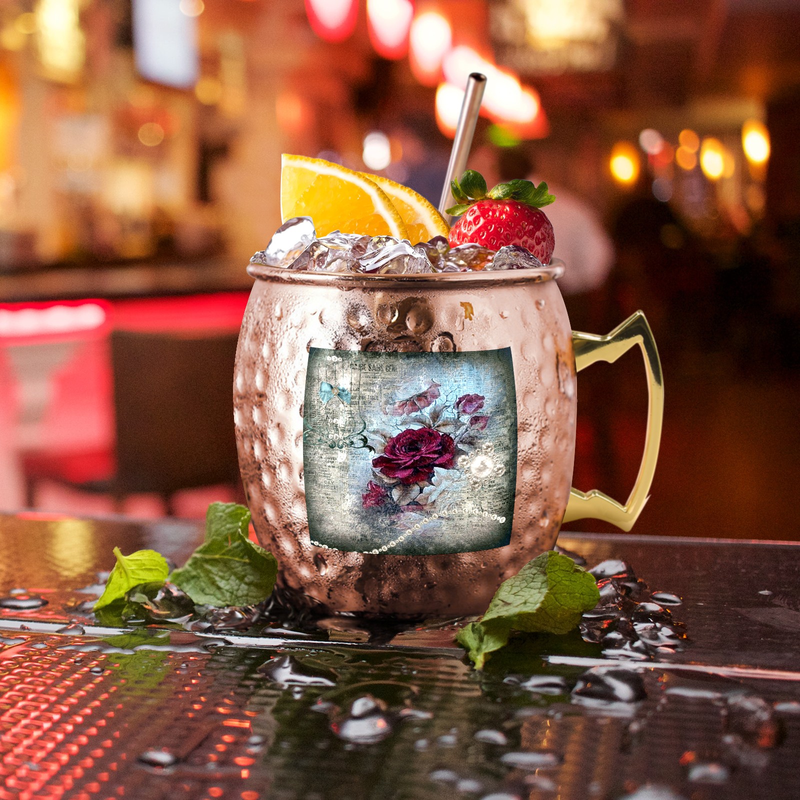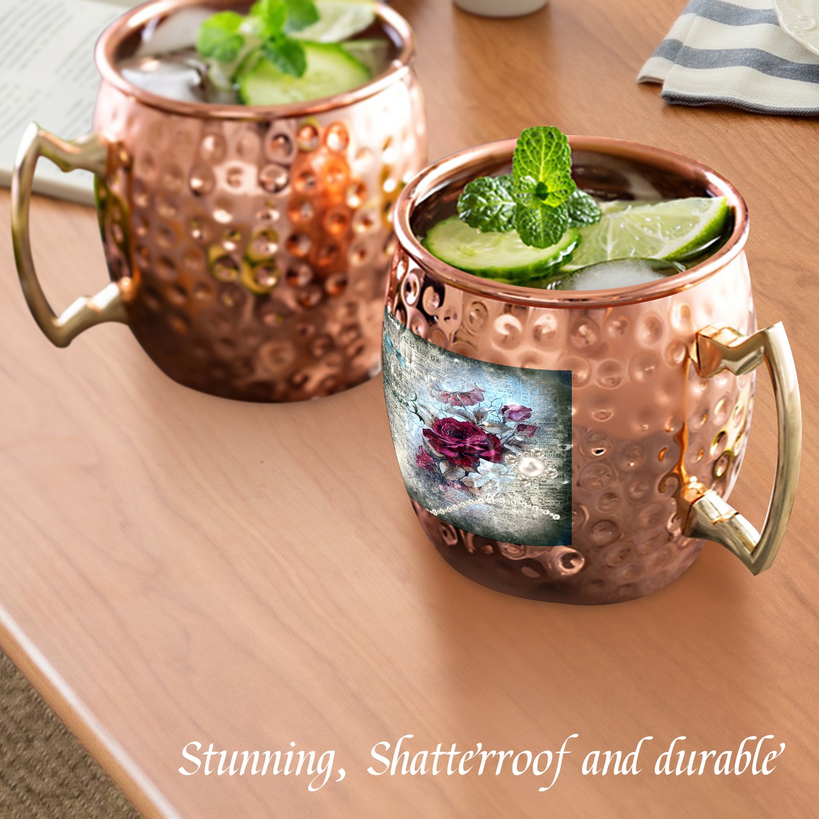 Victorian Rose Ephemera Moscow Mule Copper Mugs Stainless Steel Mugs Cocktail Tumbler Cups Set Of 2 Dimple Finish
