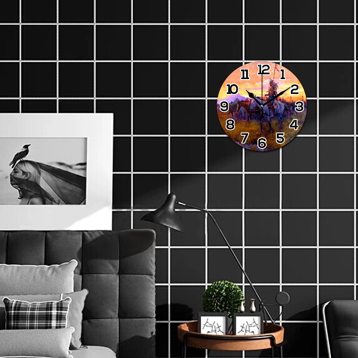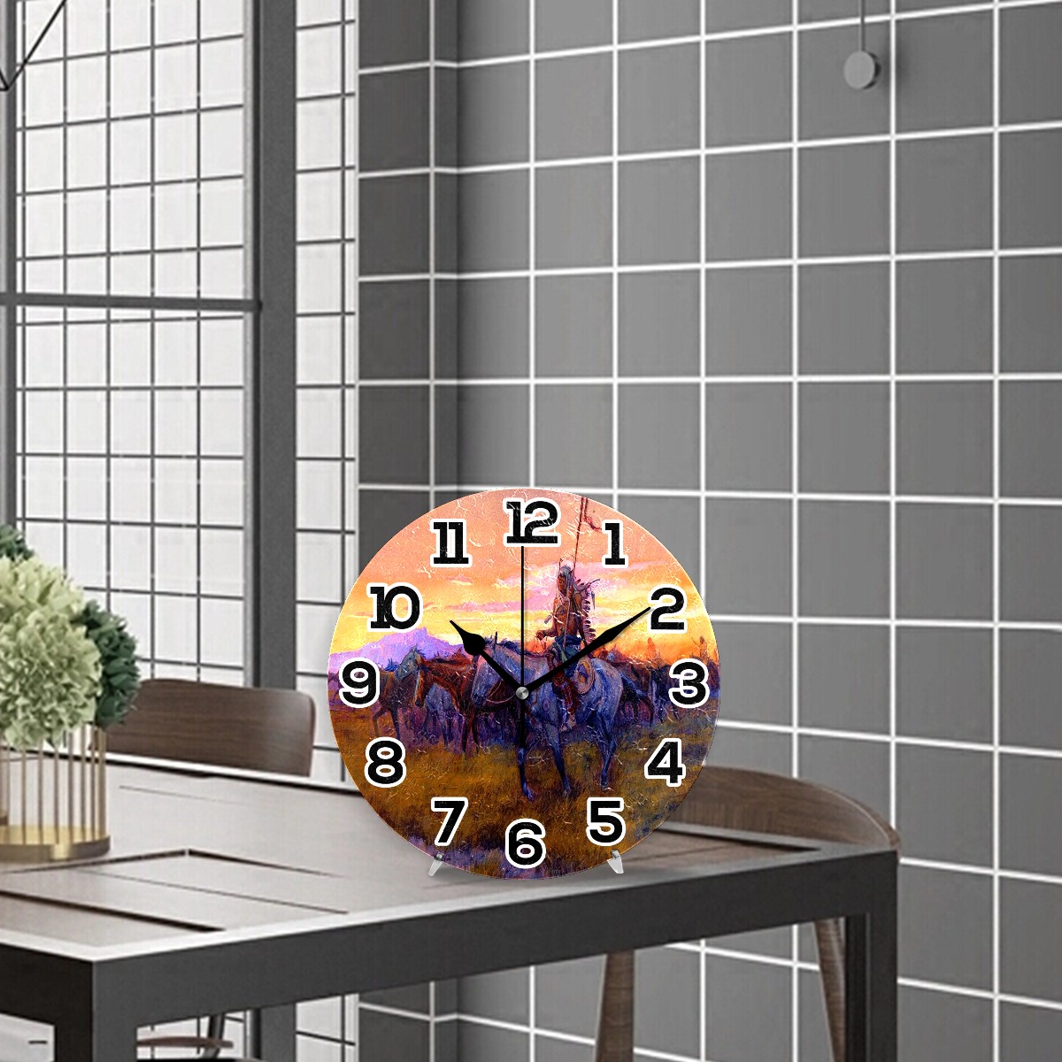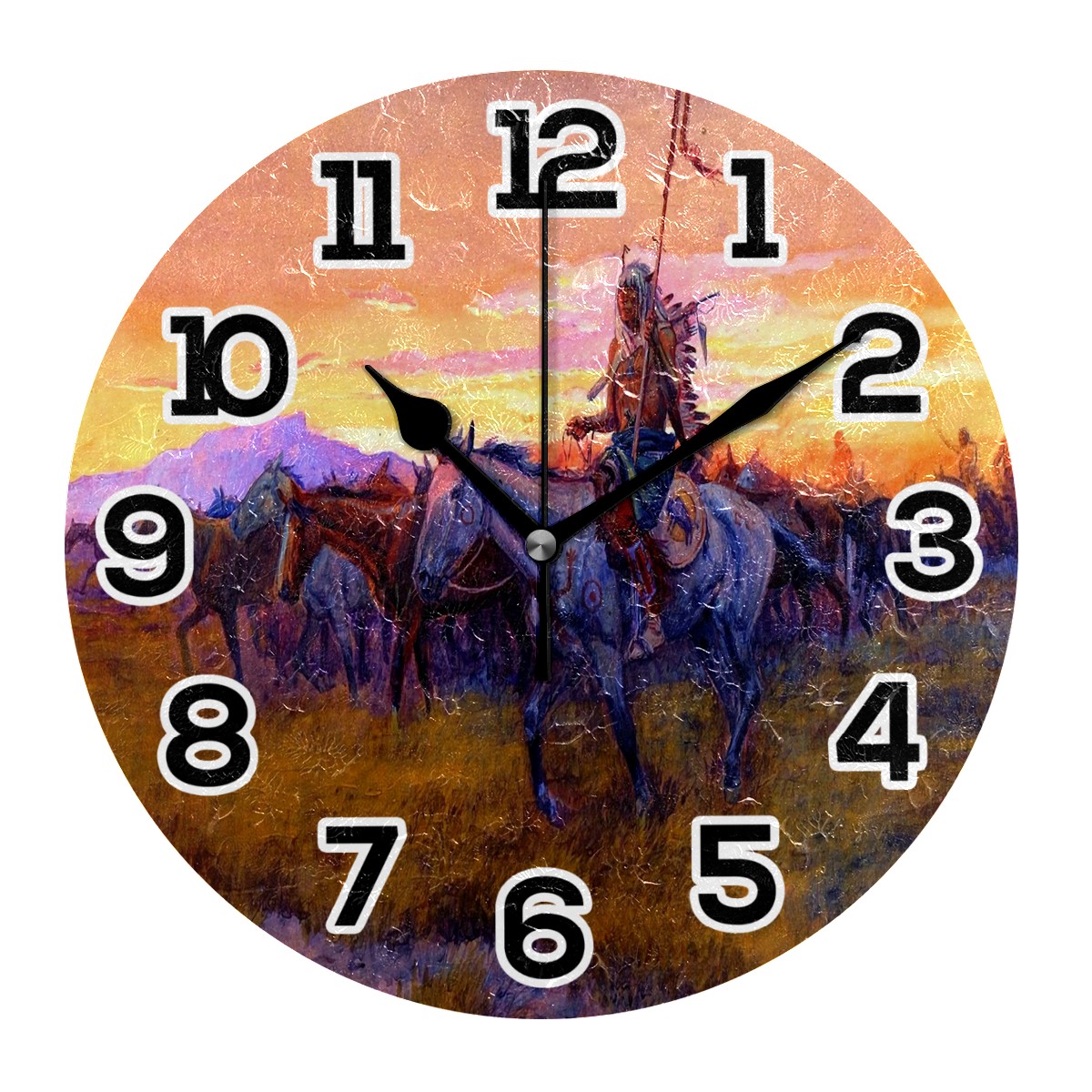 Chief Native American Feathered Men (1) Clock Wall Decor Acrylic Decorative Round Battery Operated Wall Clocks for Home Bedroom Living Room Decor Silent Non Ticking