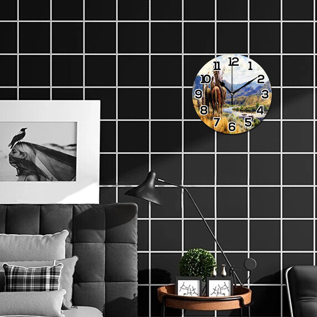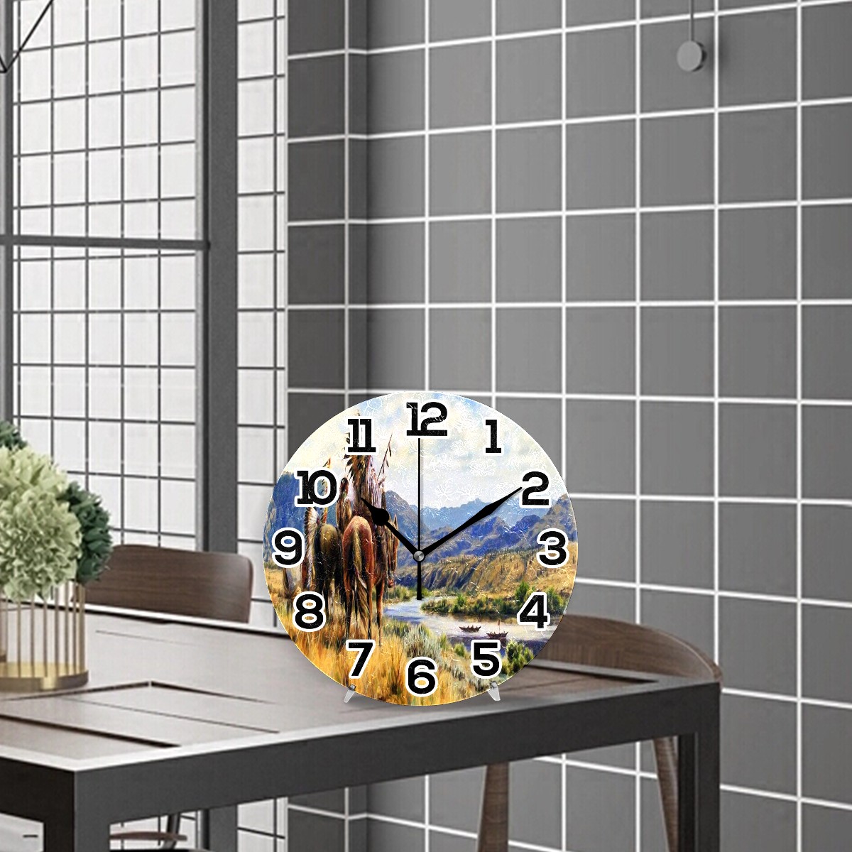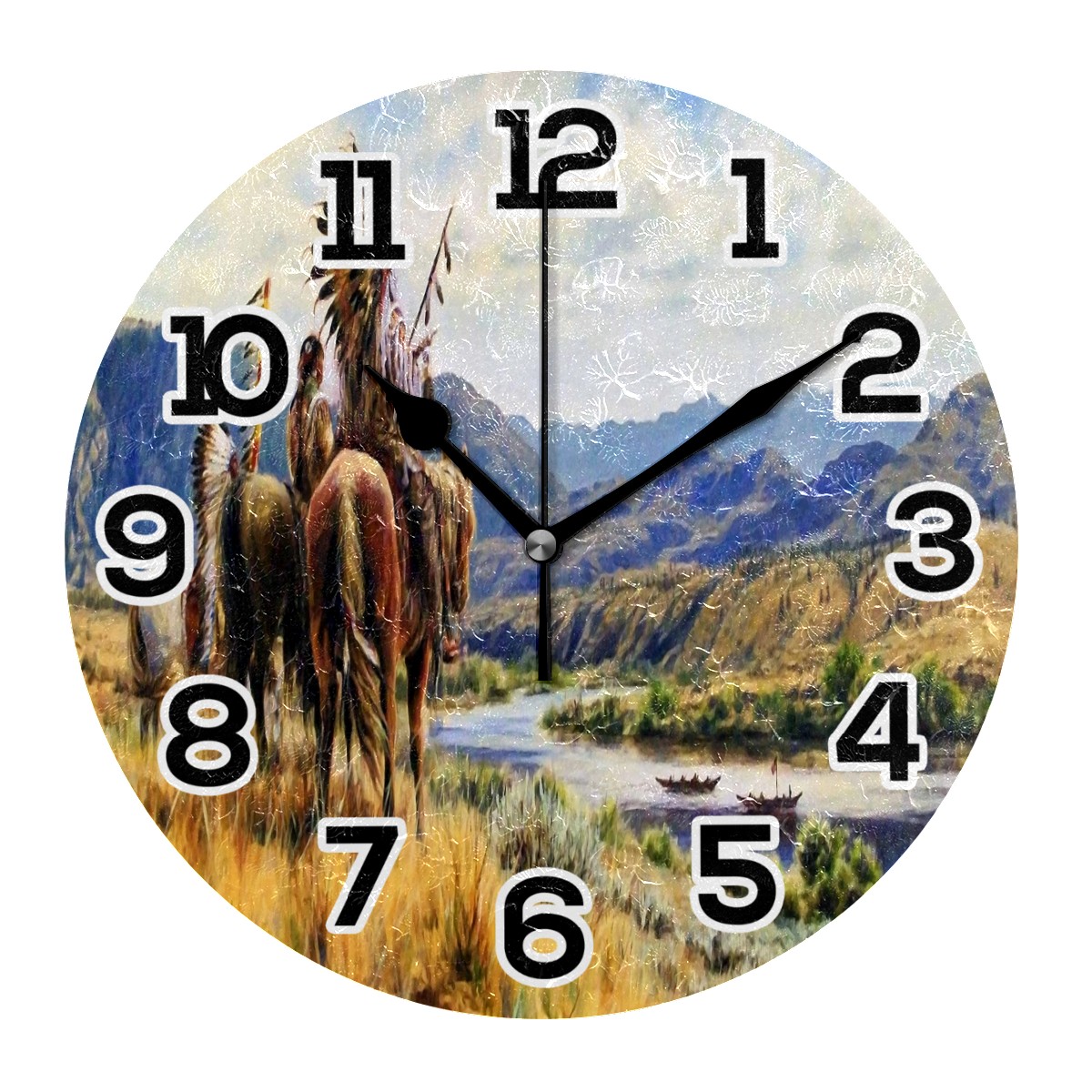 Chief Native American Feathered Man (2) Clock Wall Decor Acrylic Decorative Round Battery Operated Wall Clocks for Home Bedroom Living Room Decor Silent Non Ticking