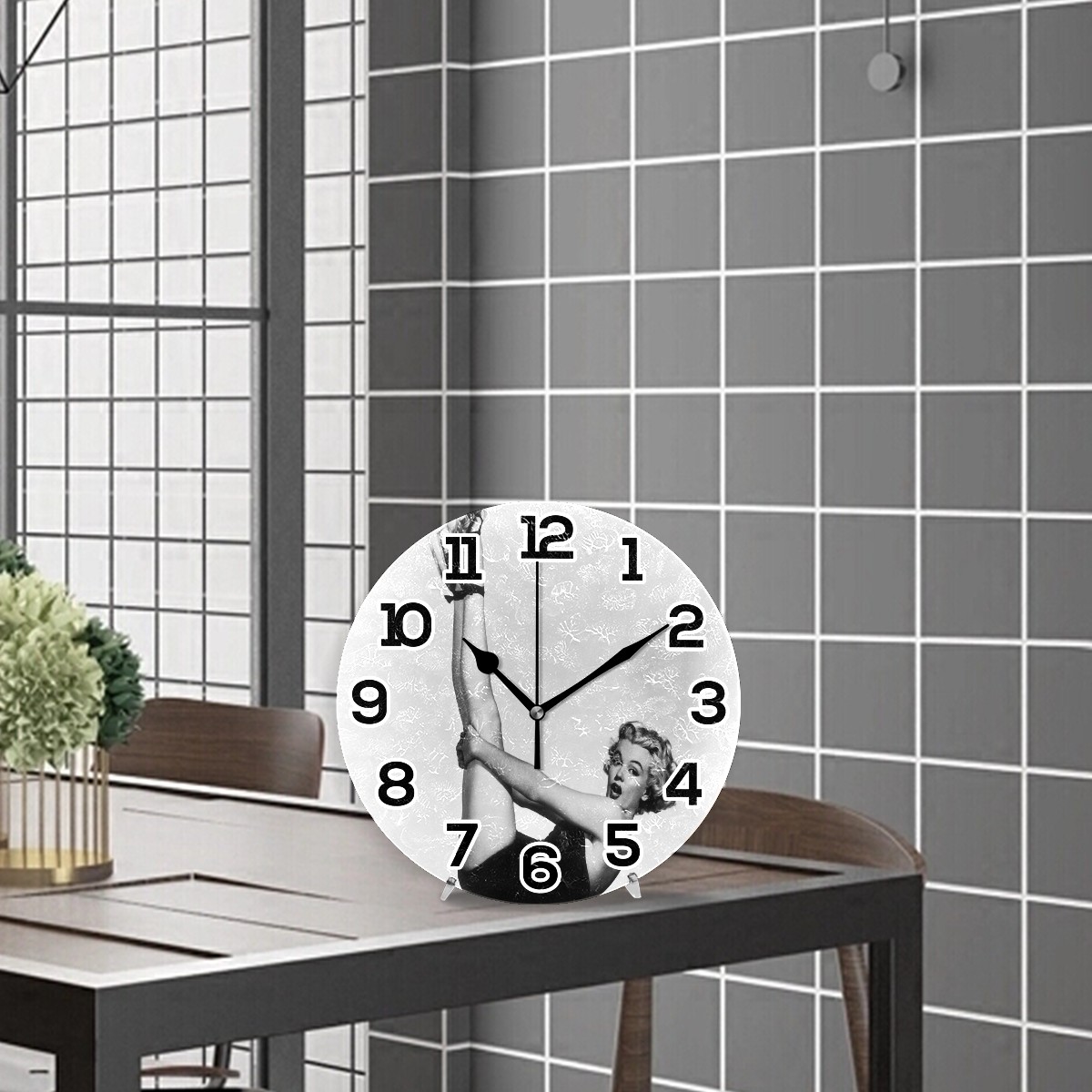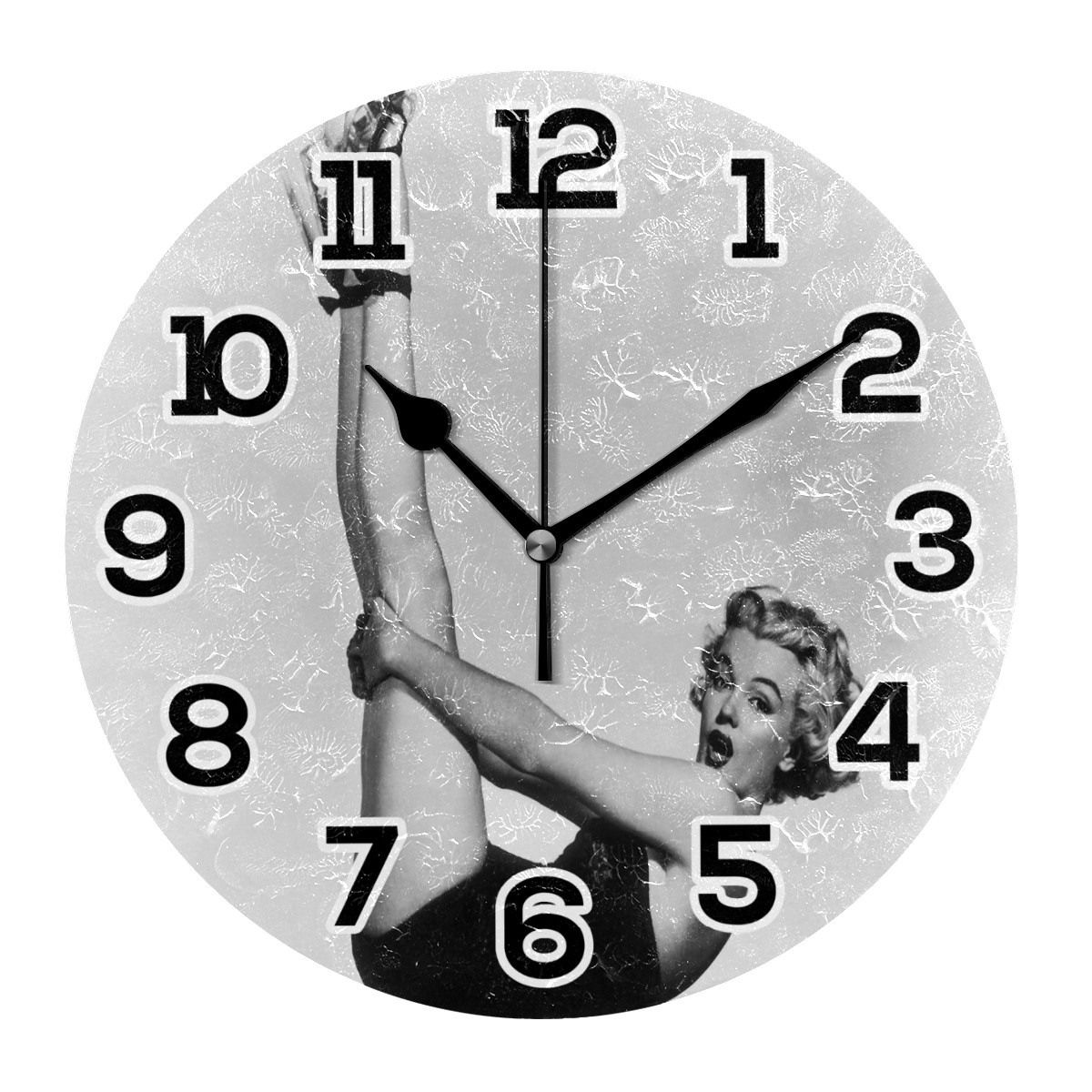 Post Marilyn Monroe White And Black Clock Wall Decor Acrylic Decorative Round Battery Operated Wall Clocks for Home Bedroom Living Room Decor Silent Non Ticking