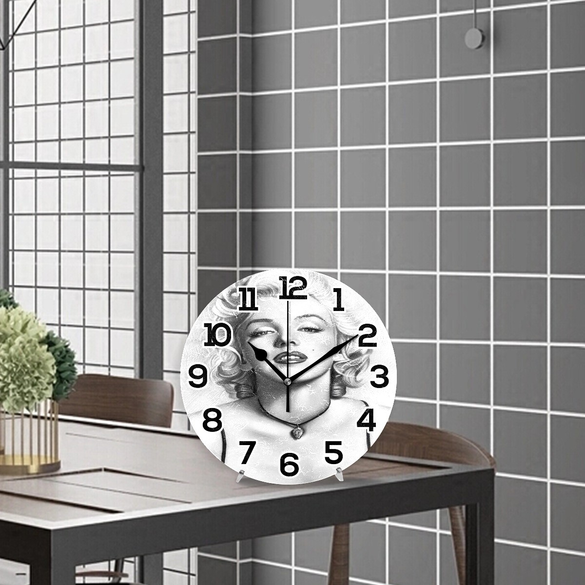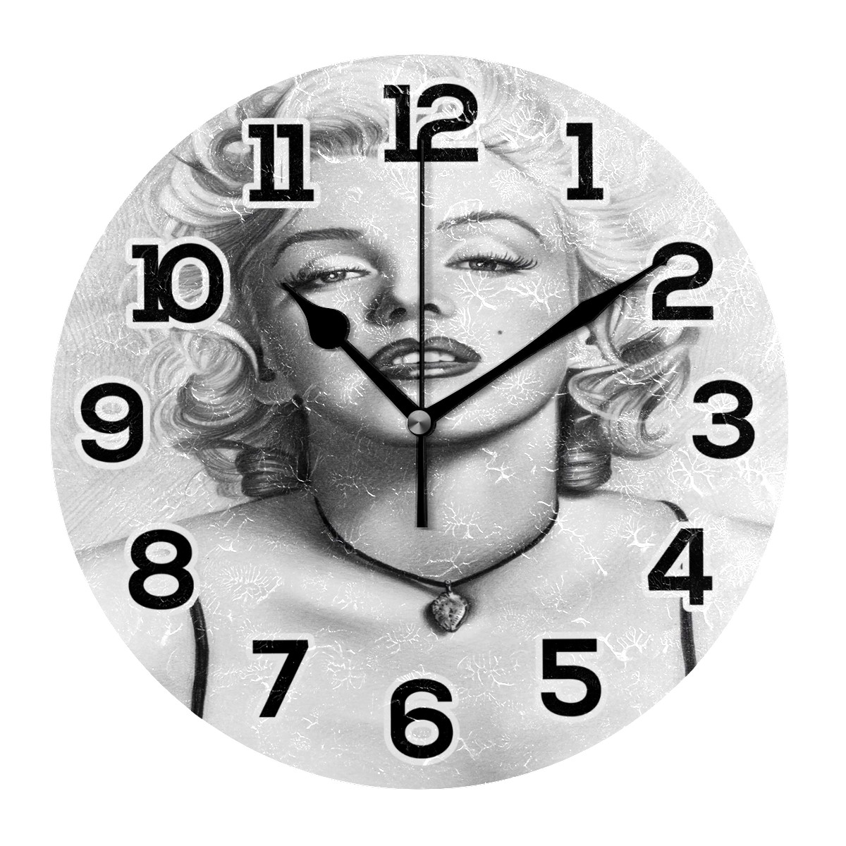 Marilyn Monroe White And Black Clock Wall Decor Acrylic Decorative Round Battery Operated Wall Clocks for Home Bedroom Living Room Decor Silent Non Ticking