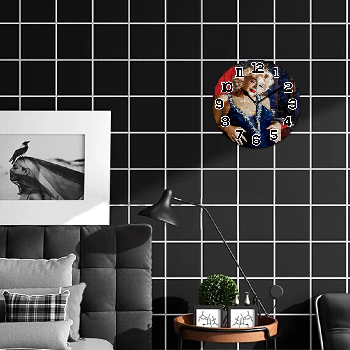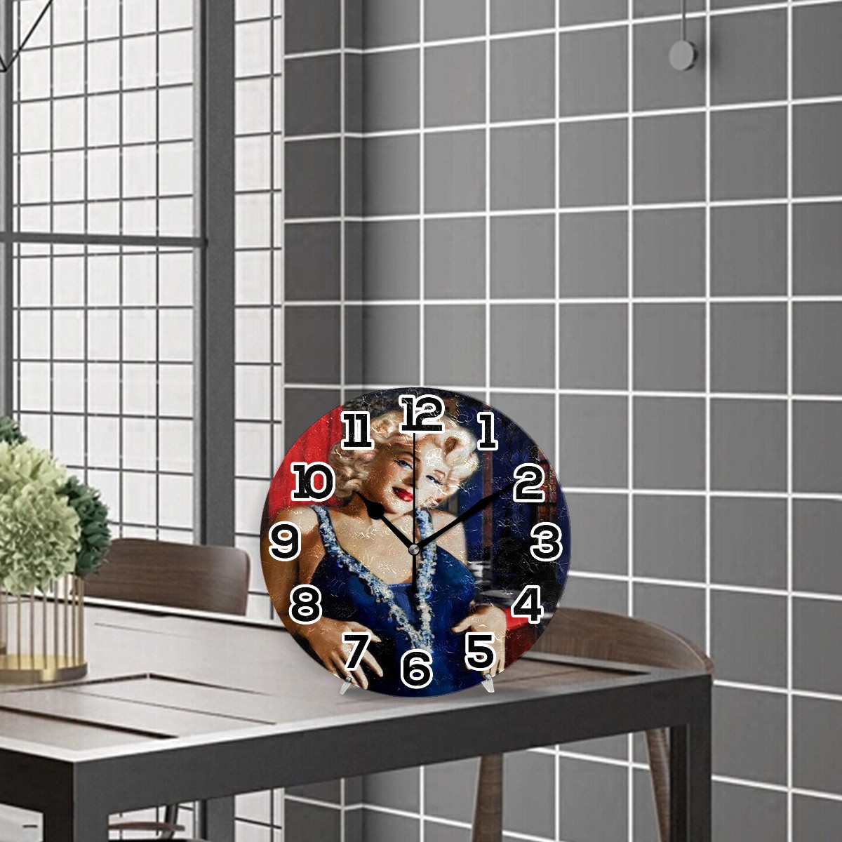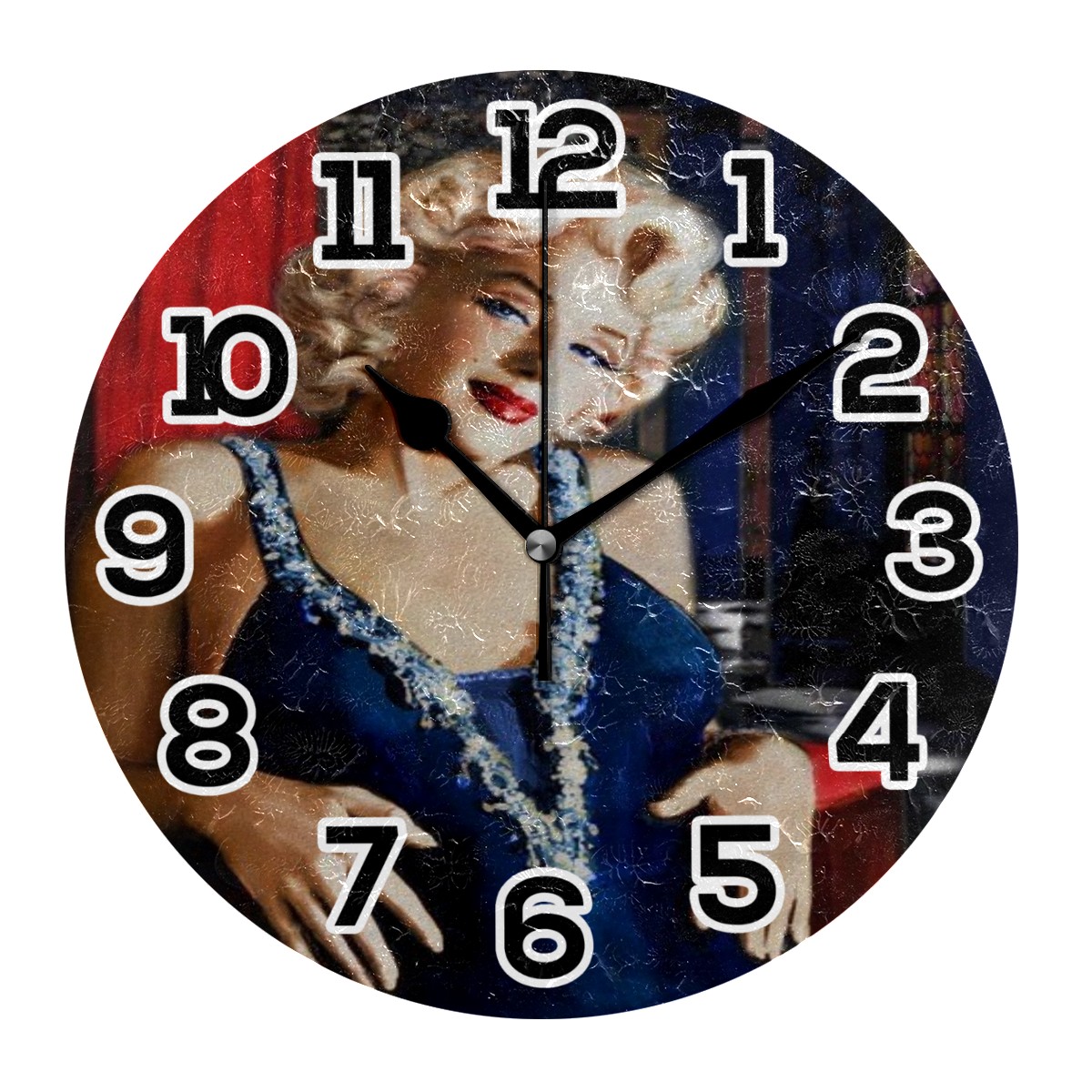 Marilyn Monroe Red Lip Clock Wall Decor Acrylic Decorative Round Battery Operated Wall Clocks for Home Bedroom Living Room Decor Silent Non Ticking