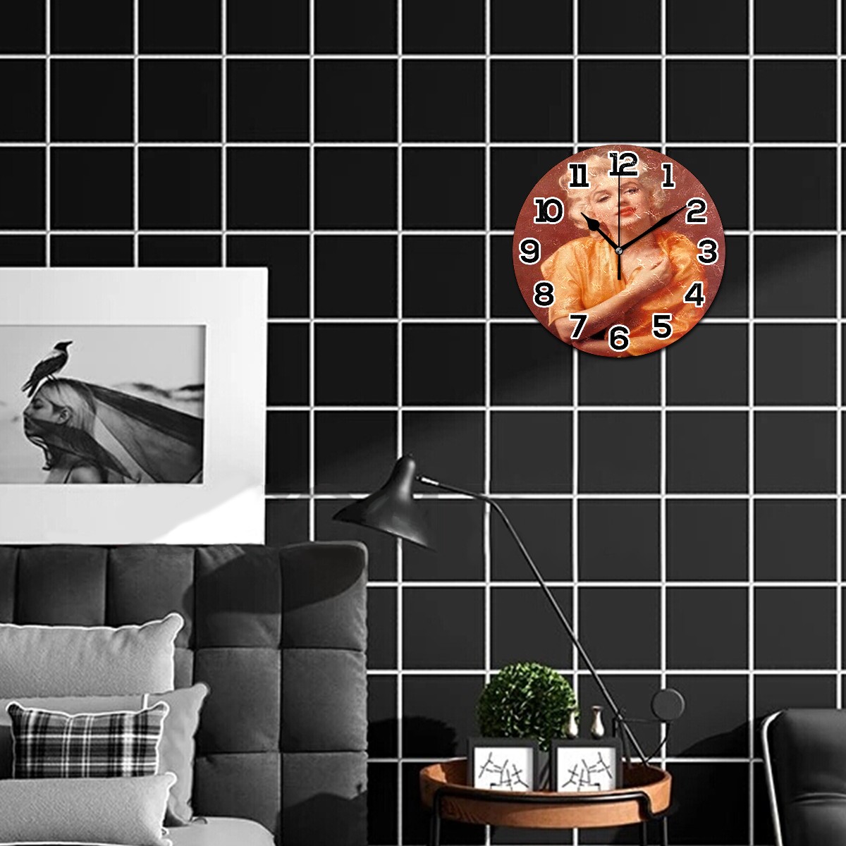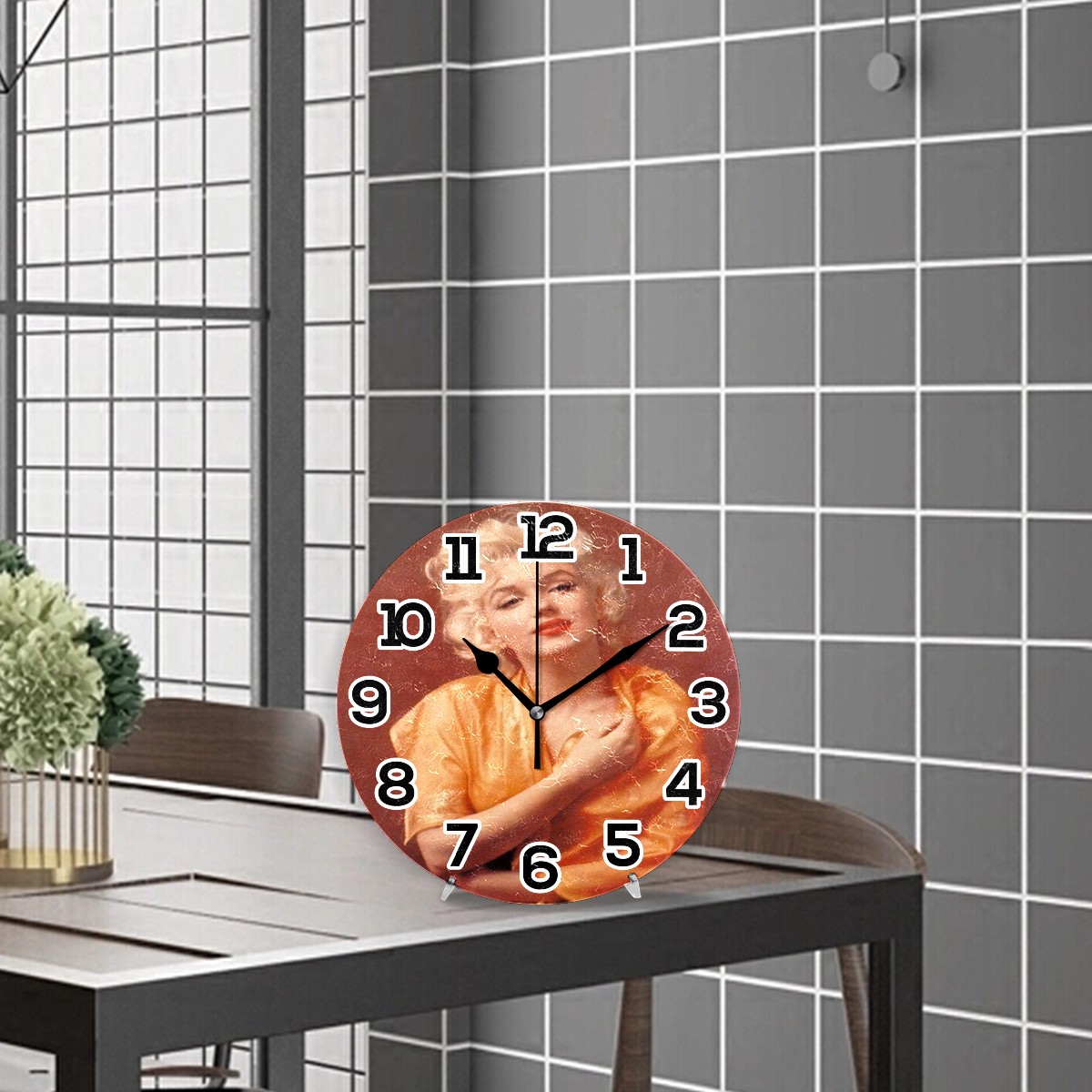 Marilyn Monroe Red Lip (9) Clock Wall Decor Acrylic Decorative Round Battery Operated Wall Clocks for Home Bedroom Living Room Decor Silent Non Ticking