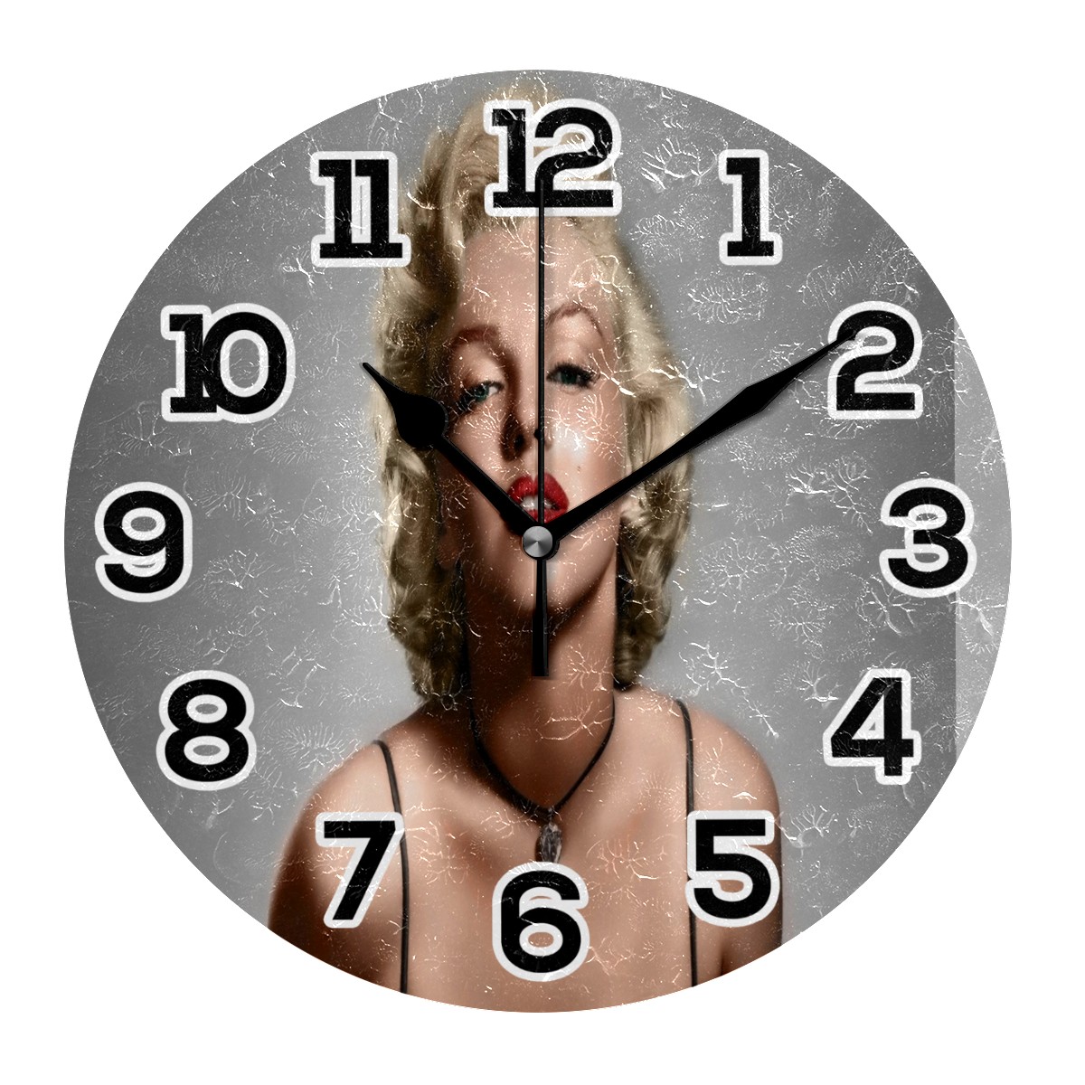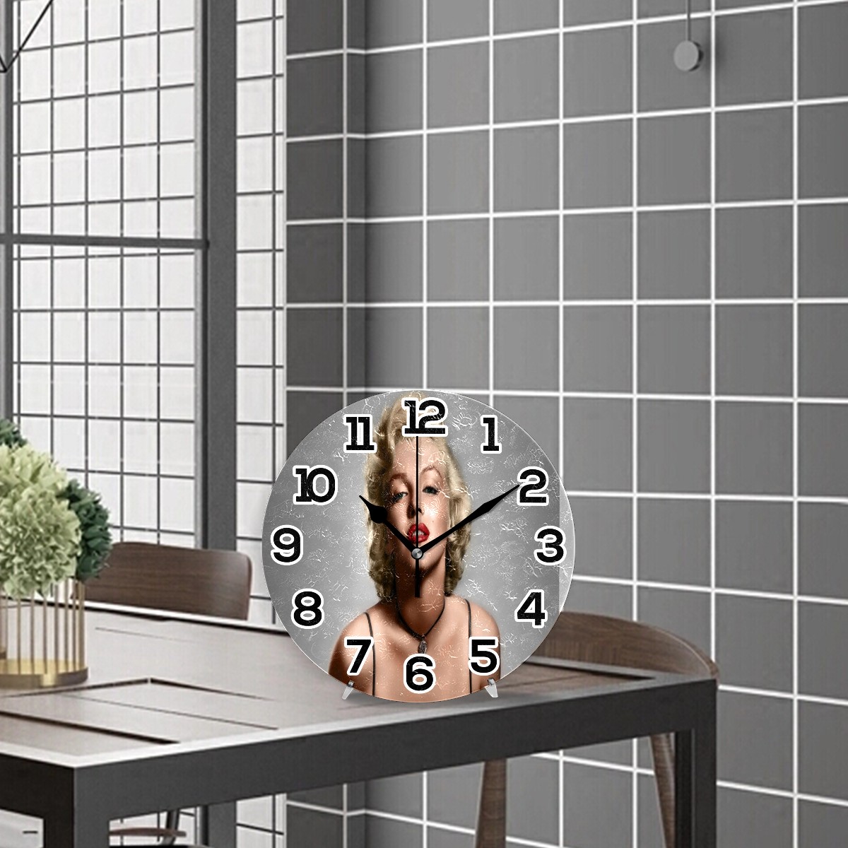 Marilyn Monroe Red Lip (7) Clock Wall Decor Acrylic Decorative Round Battery Operated Wall Clocks for Home Bedroom Living Room Decor Silent Non Ticking