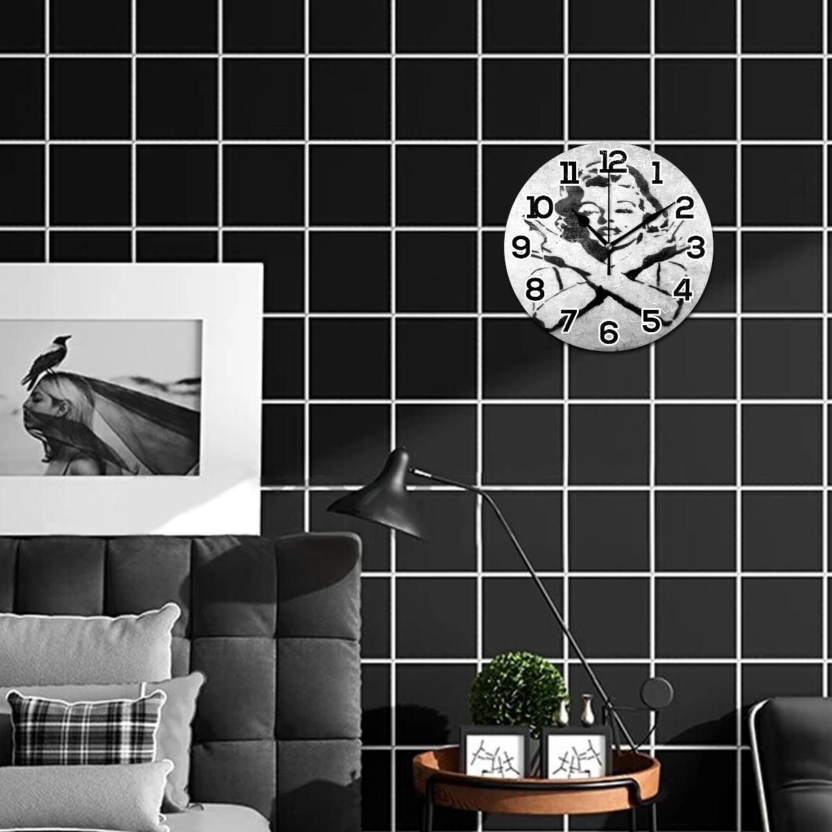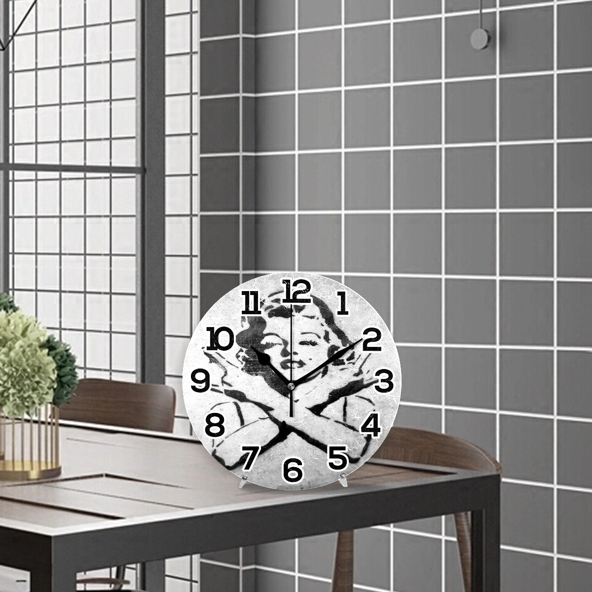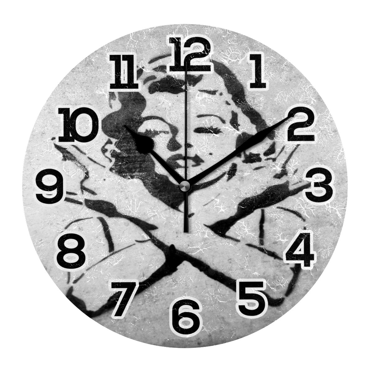 Banksy Street Graffiti Marilyn Monroe Clock Wall Decor Acrylic Decorative Round Battery Operated Wall Clocks for Home Bedroom Living Room Decor Silent Non Ticking