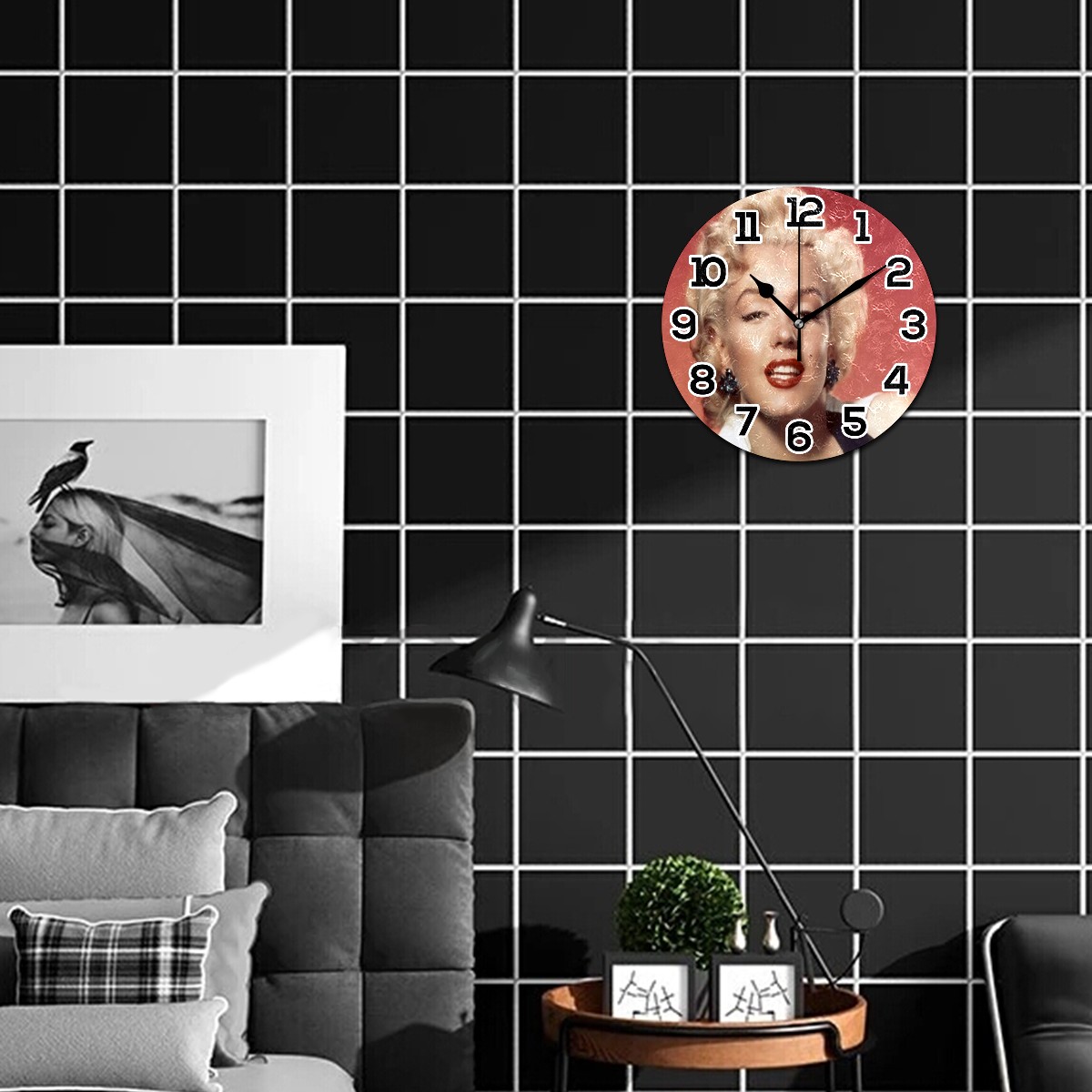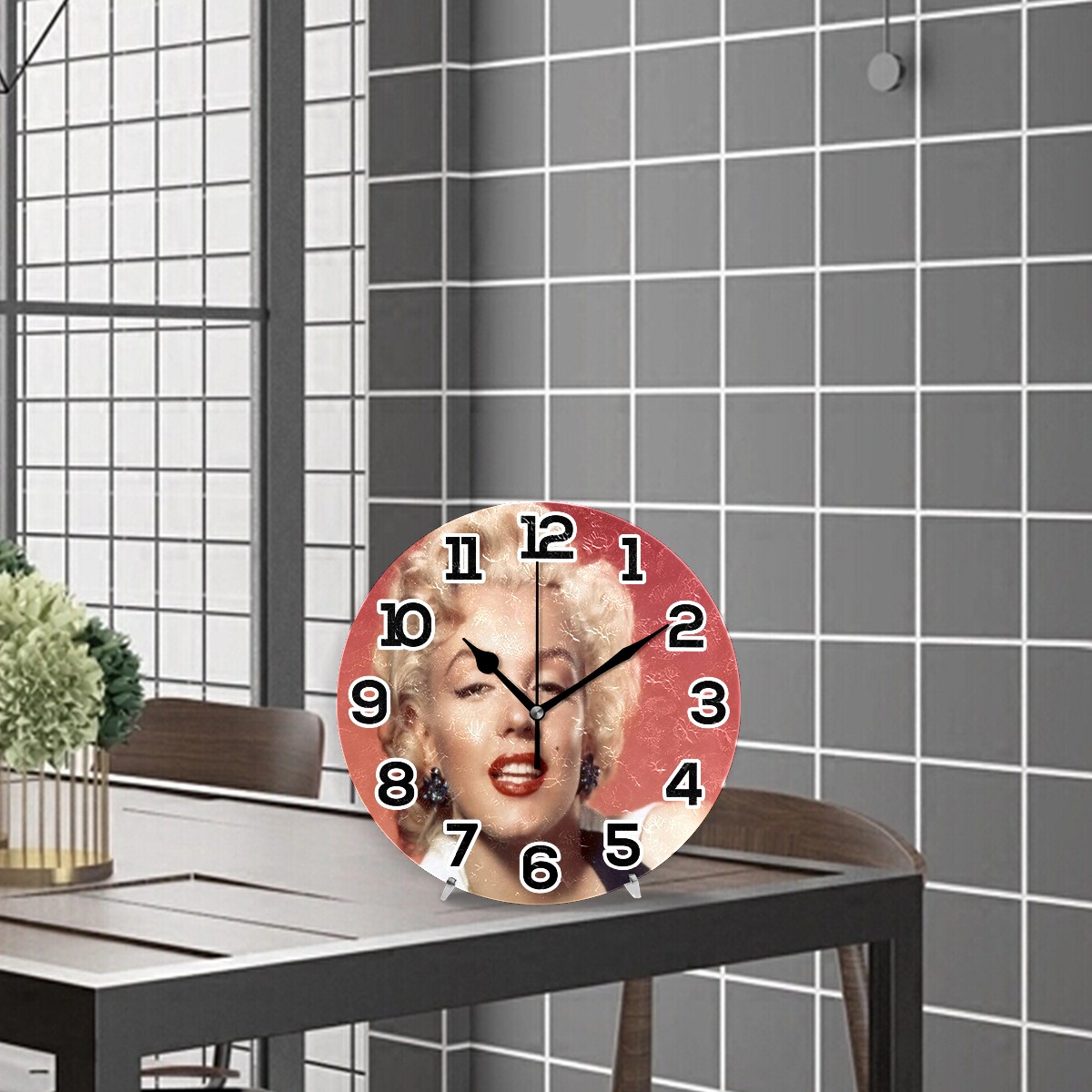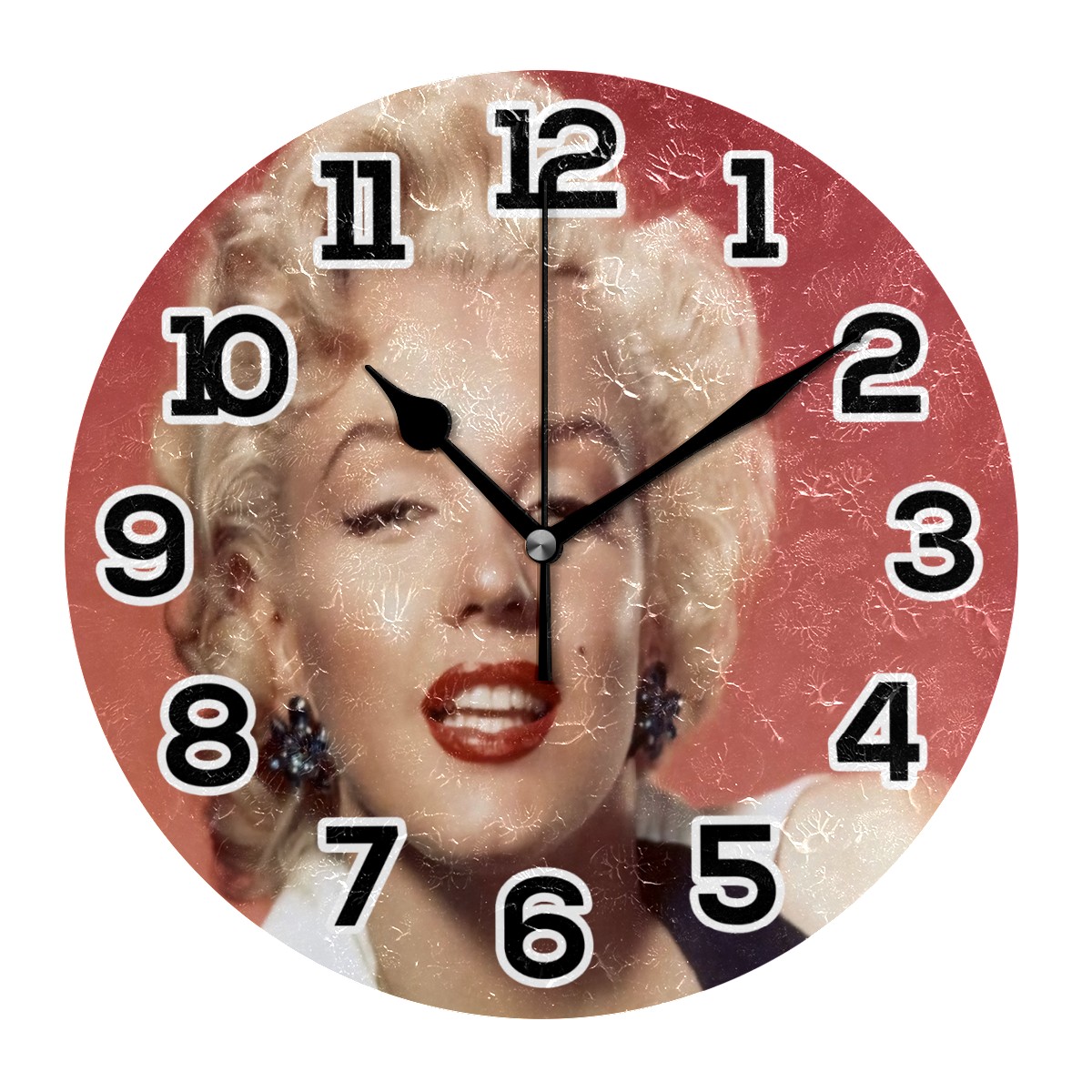 Marilyn Monroe Red Lip (4) Clock Wall Decor Acrylic Decorative Round Battery Operated Wall Clocks for Home Bedroom Living Room Decor Silent Non Ticking