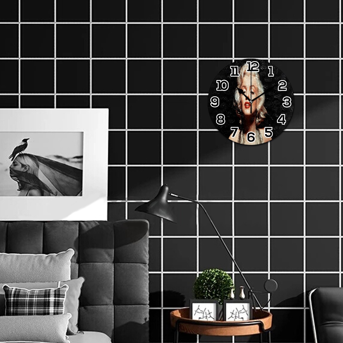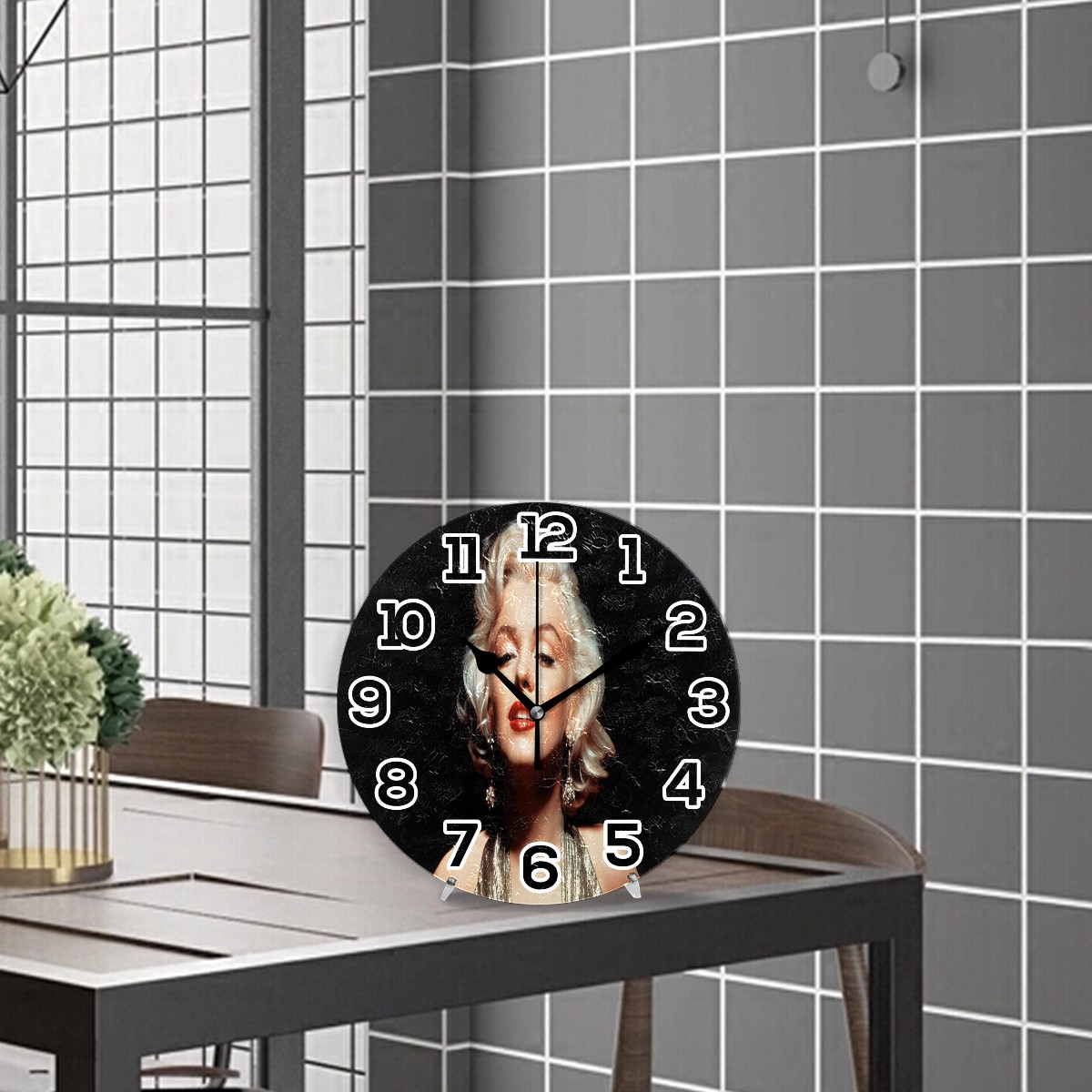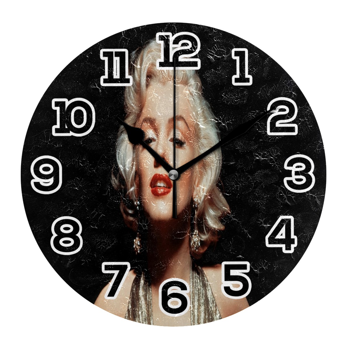 Marilyn Monroe Red Lip (2) Clock Wall Decor Acrylic Decorative Round Battery Operated Wall Clocks for Home Bedroom Living Room Decor Silent Non Ticking