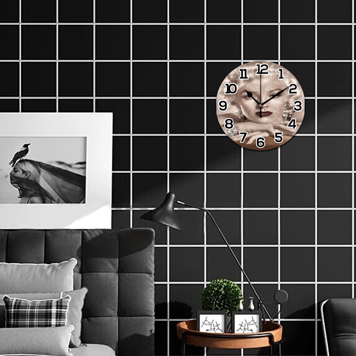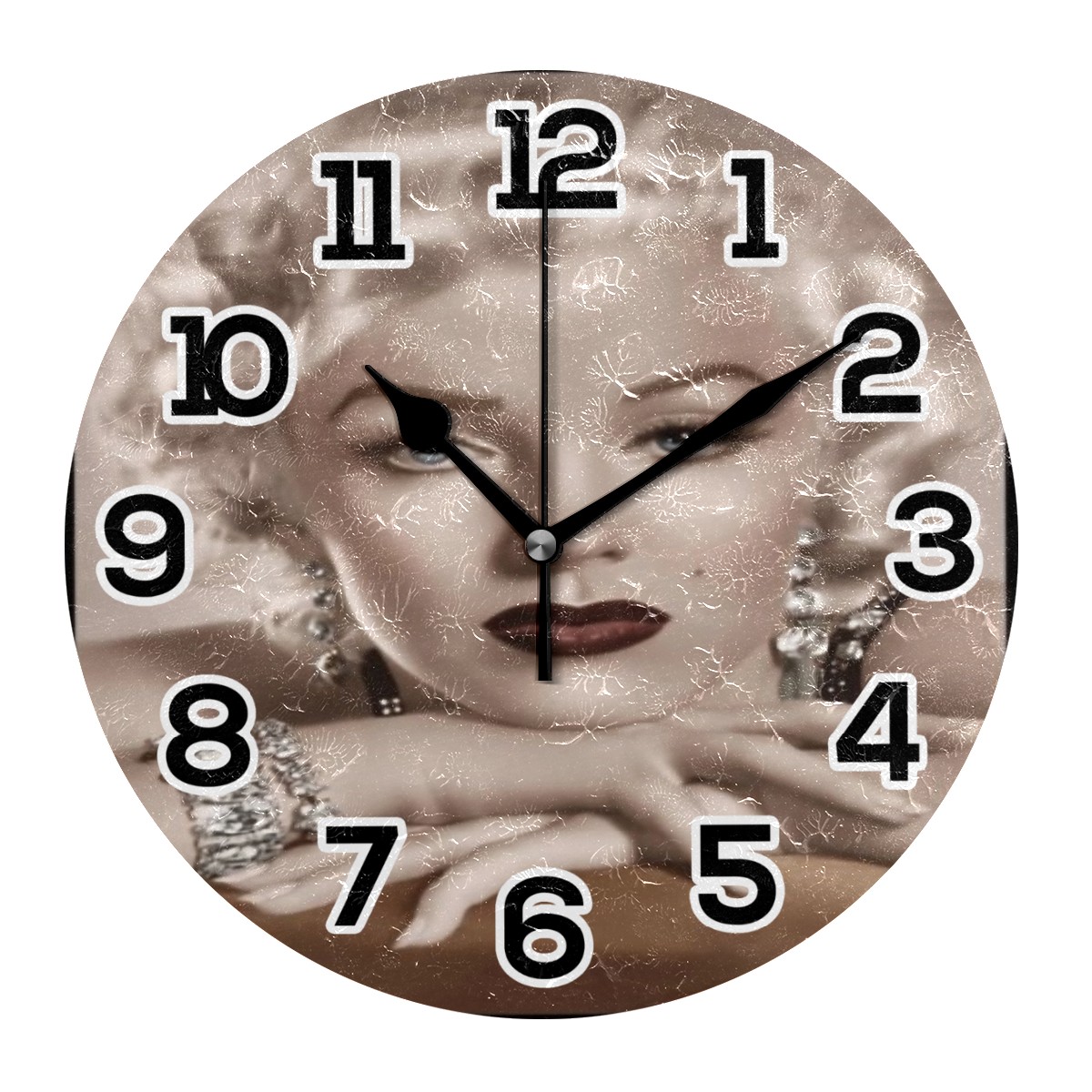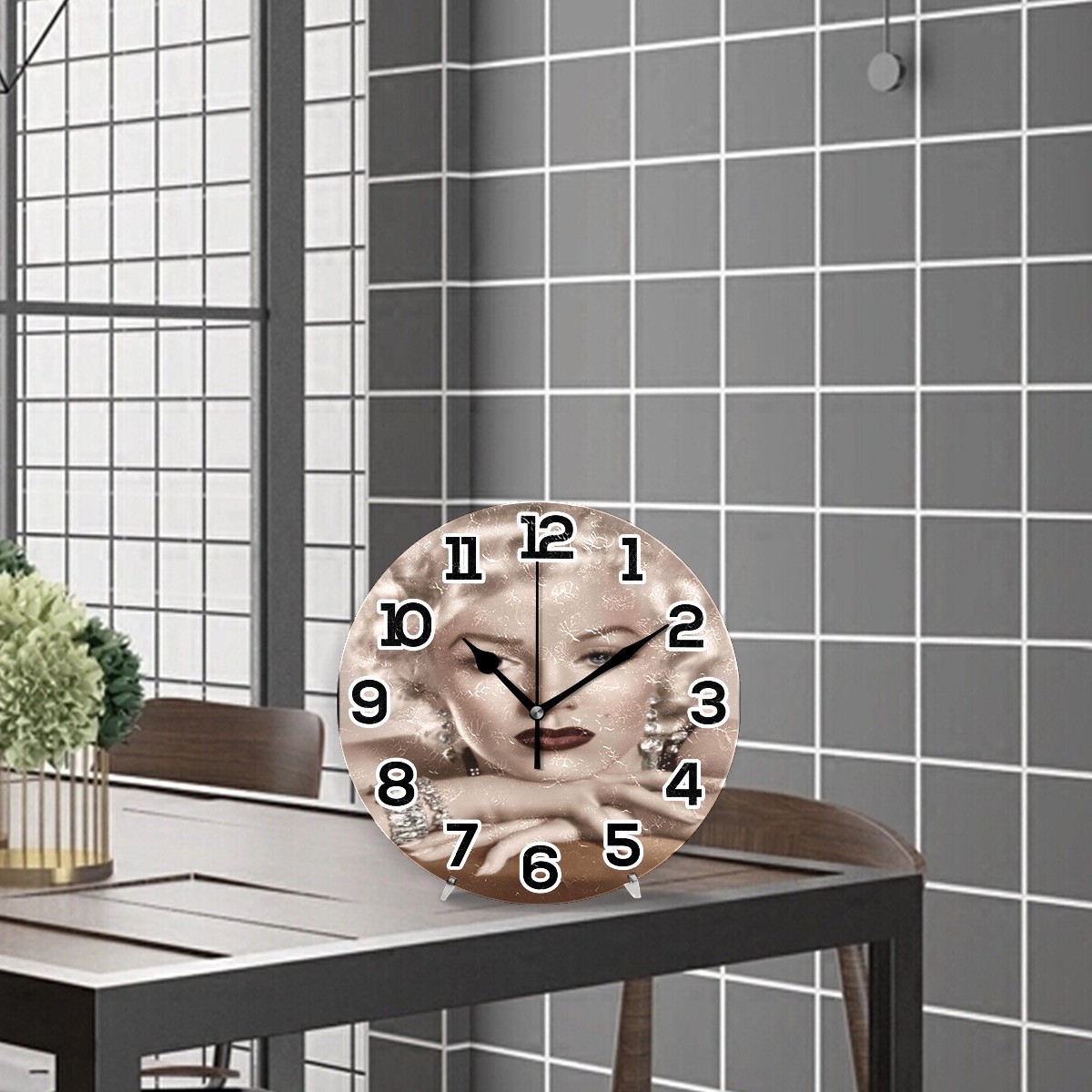 Marilyn Monroe Red Lip (1) Clock Wall Decor Acrylic Decorative Round Battery Operated Wall Clocks for Home Bedroom Living Room Decor Silent Non Ticking