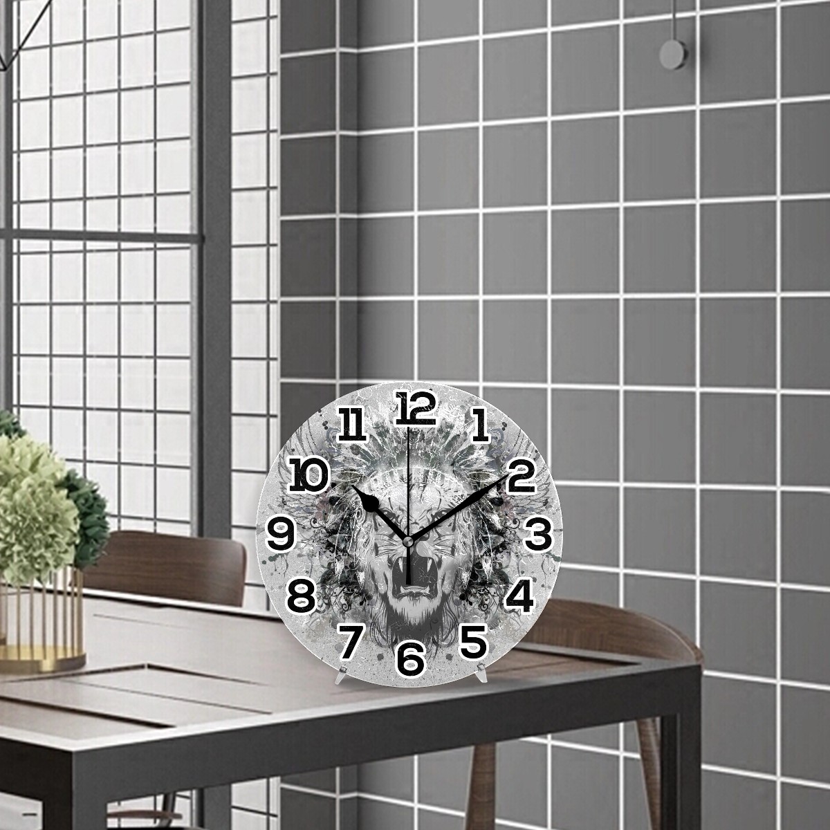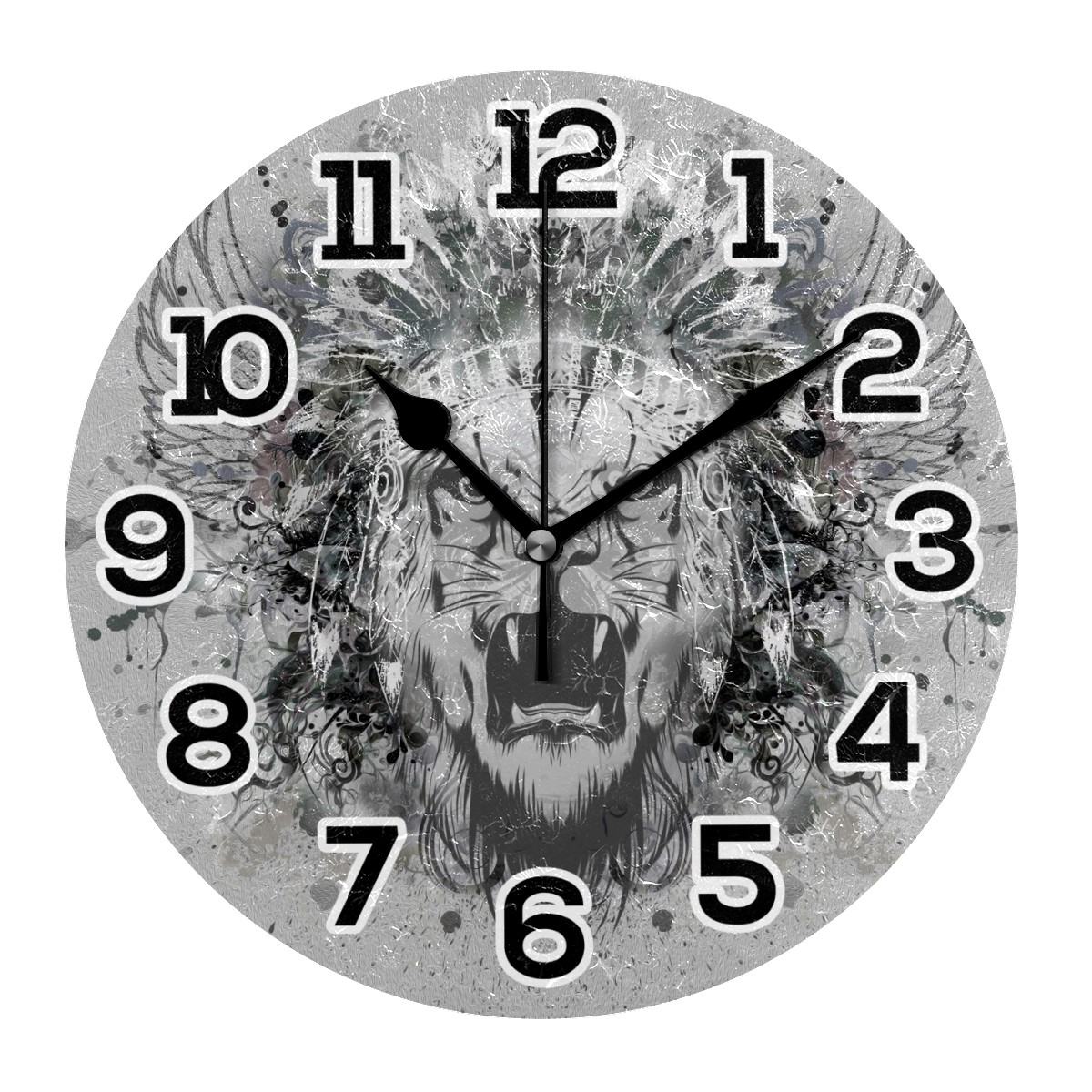 Abstract Tiger Head Clock Wall Decor Acrylic Decorative Round Battery Operated Wall Clocks for Home Bedroom Living Room Decor Silent Non Ticking