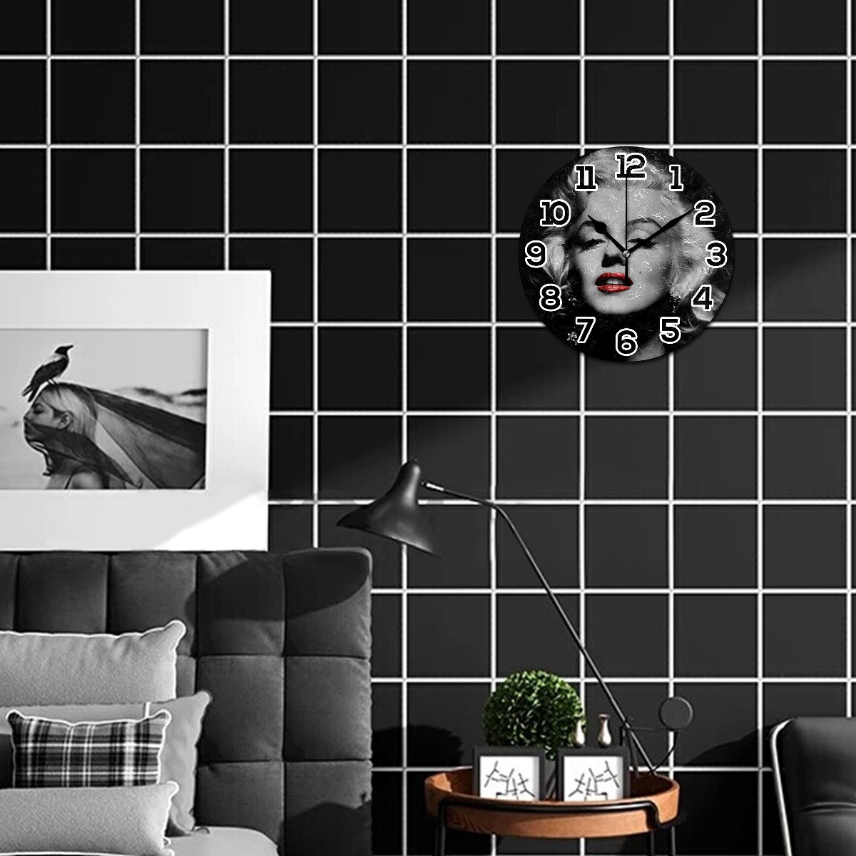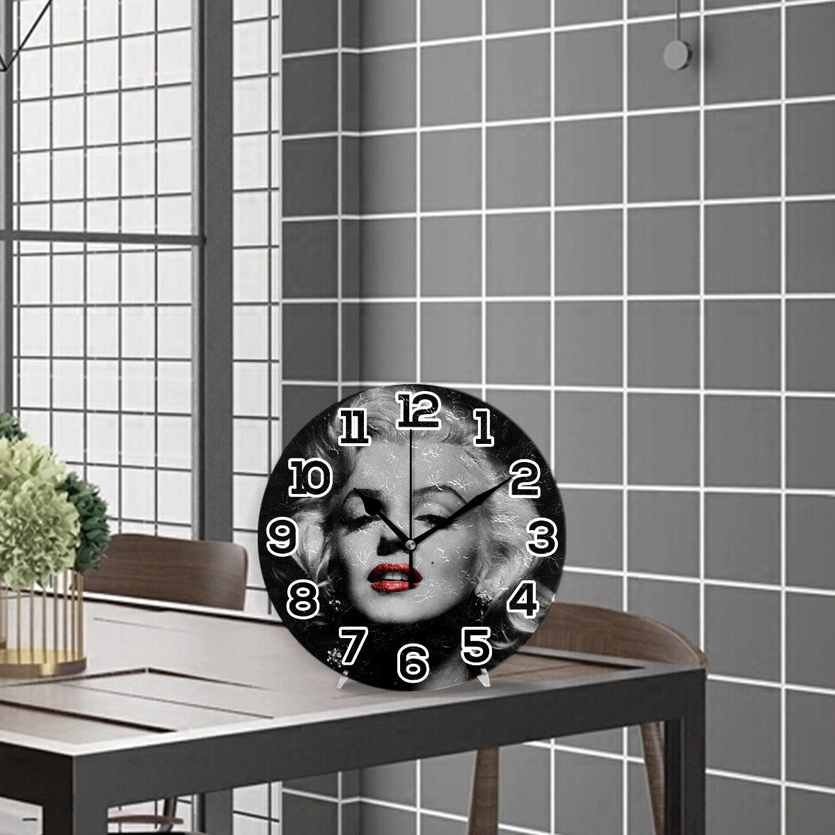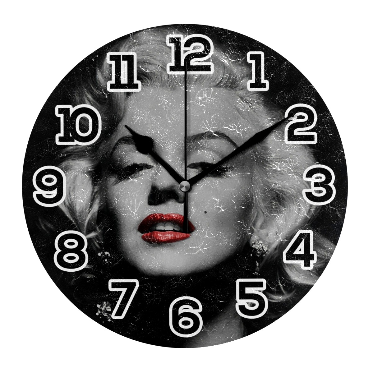 Marilyn Monroe Red Lips Clock Wall Decor Acrylic Decorative Round Battery Operated Wall Clocks for Home Bedroom Living Room Decor Silent Non Ticking