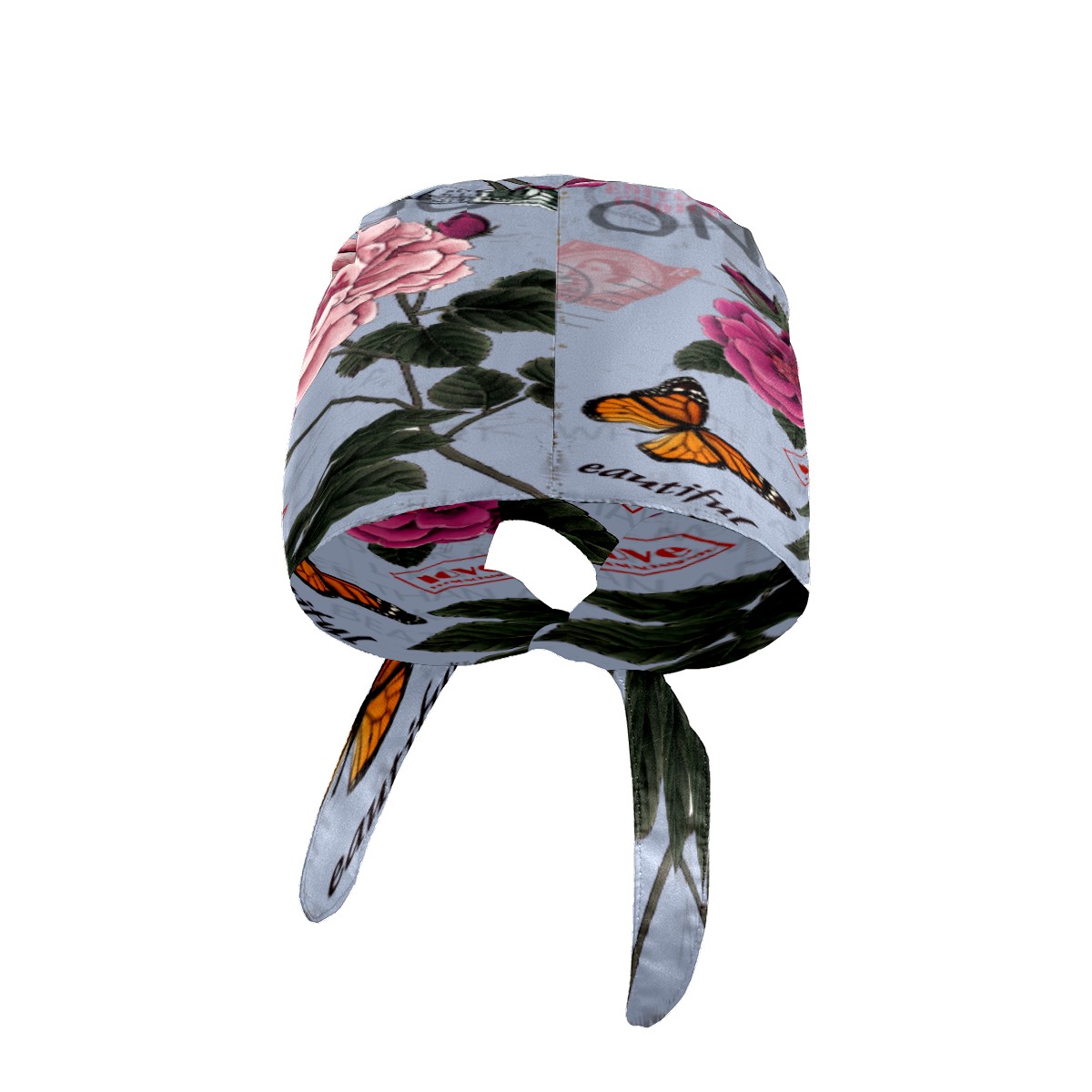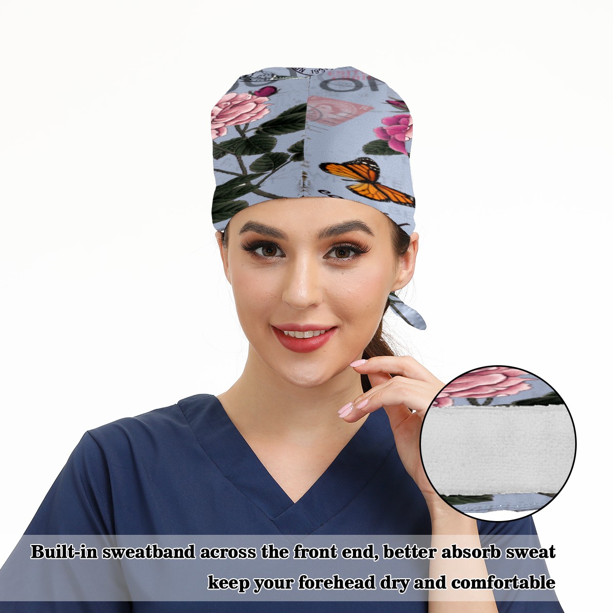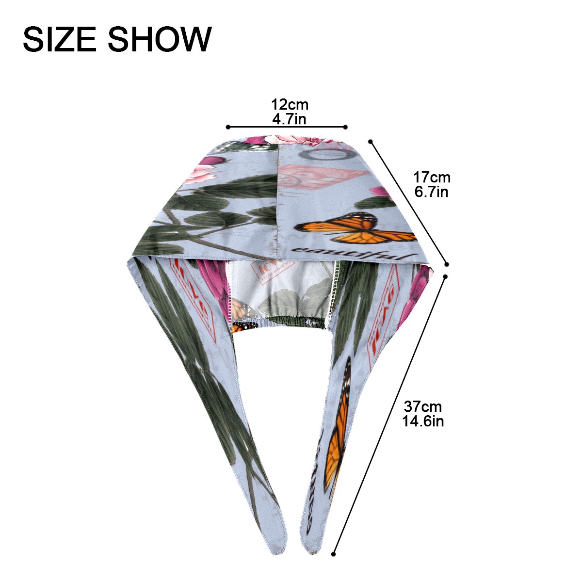 Vintage Retro Butterfly Working Cap Button and Sweatband Adjustable Elastic Head Cover Hair Tie Back Work Hats for Women Men