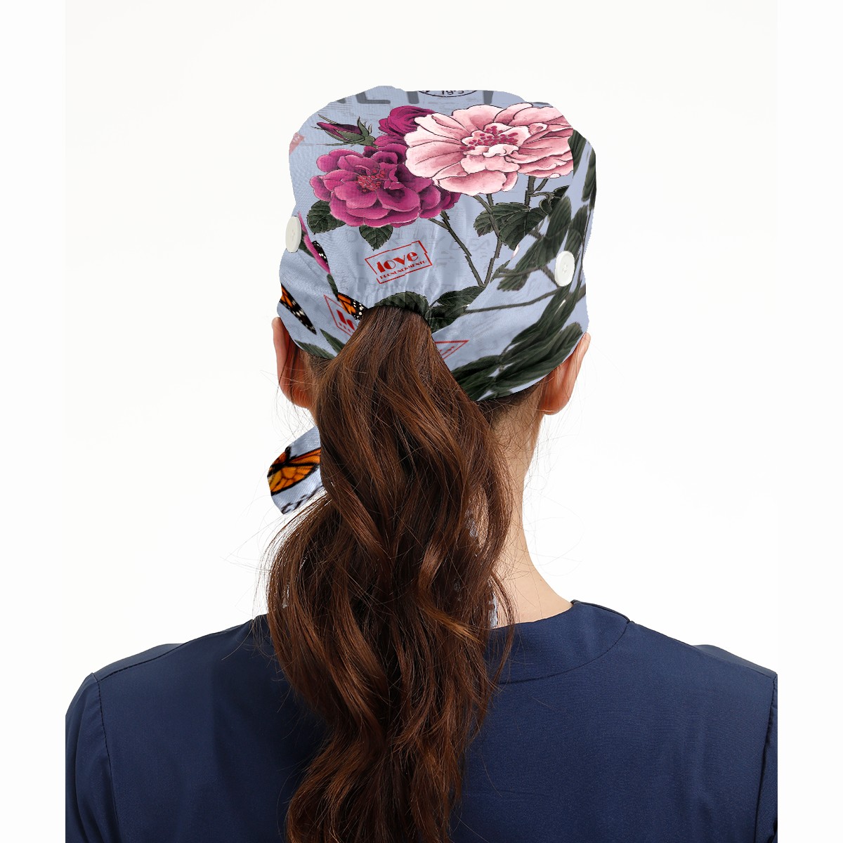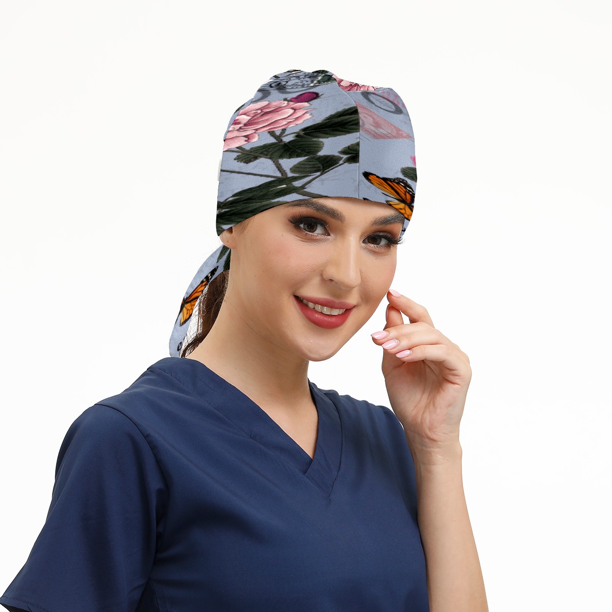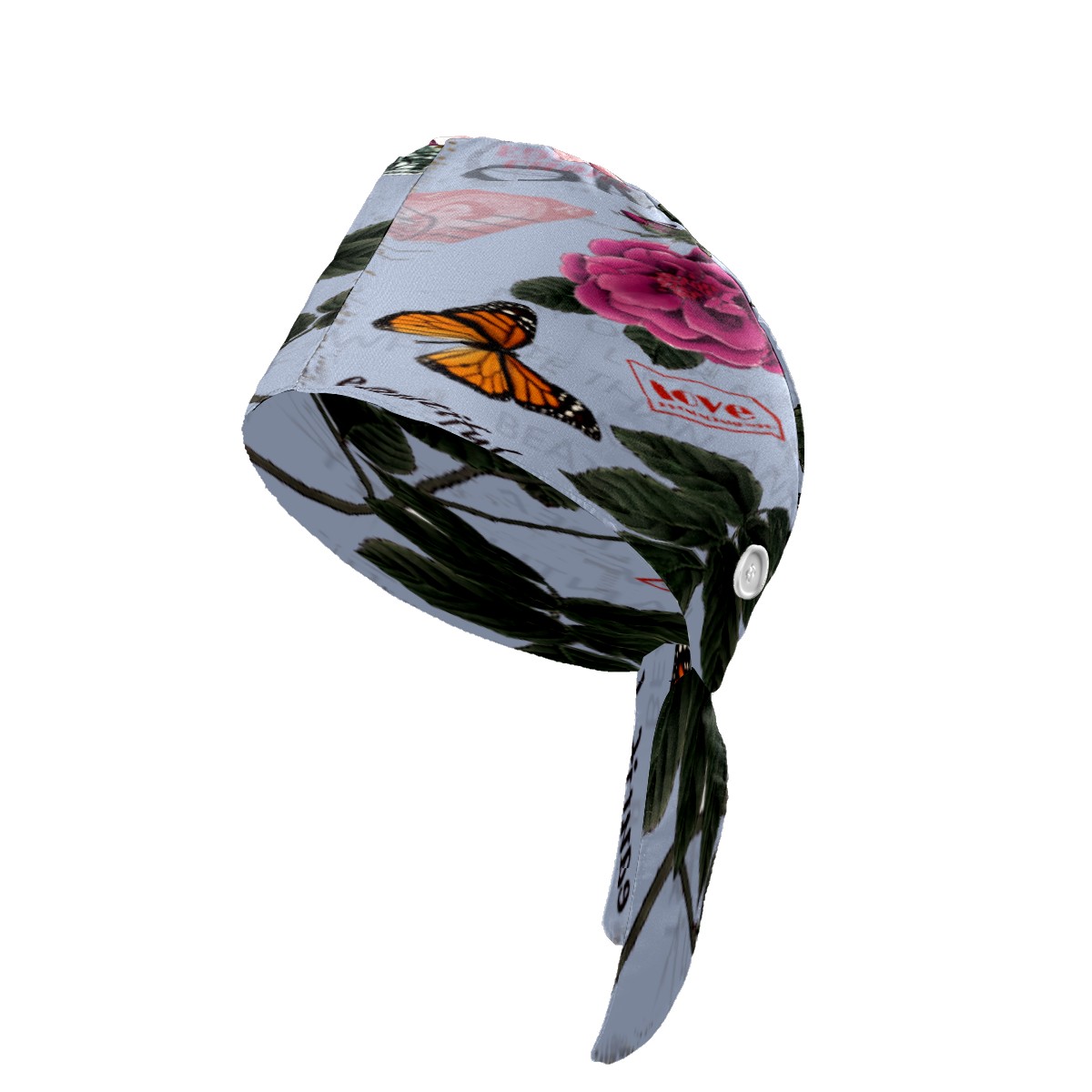 Vintage Retro Butterfly Working Cap Button and Sweatband Adjustable Elastic Head Cover Hair Tie Back Work Hats for Women Men