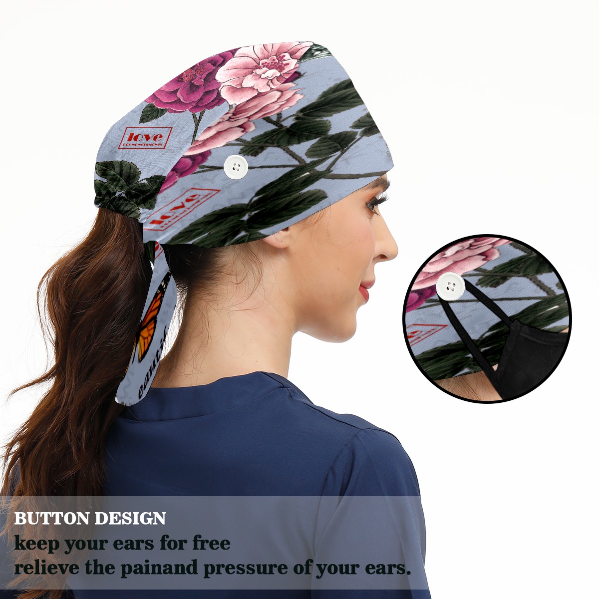 <p>Working cap with Sweatband and Button for Women Men</p><p>Material&nbsp;: 50% cotton+50% polyester</p><p>Size:&nbsp;One size fits most,&nbsp;suitable for both men and women.</p><p>Working Cap with Buttons Design:special&nbsp;design with buttons to protect ears for those who are wearing ma-sk. These new styles hats will allow you to put the straps around the buttons instead of your ears, make you feel more comfortable.</p><p>Sweat-absorbent towel cloth inside: Built-in&nbsp;100% cotton sweatband, keep the forehead clean after long time working.</p><p>Widely occasion: Widely used in beauty spa, house cleaning, cooking, sleeping, or for cos-play&nbsp;party.</p><p>Lovely pattern: lovely&nbsp;3D printed&nbsp;pattern,&nbsp;it's perfect for gift to you family&nbsp;and friends.</p>