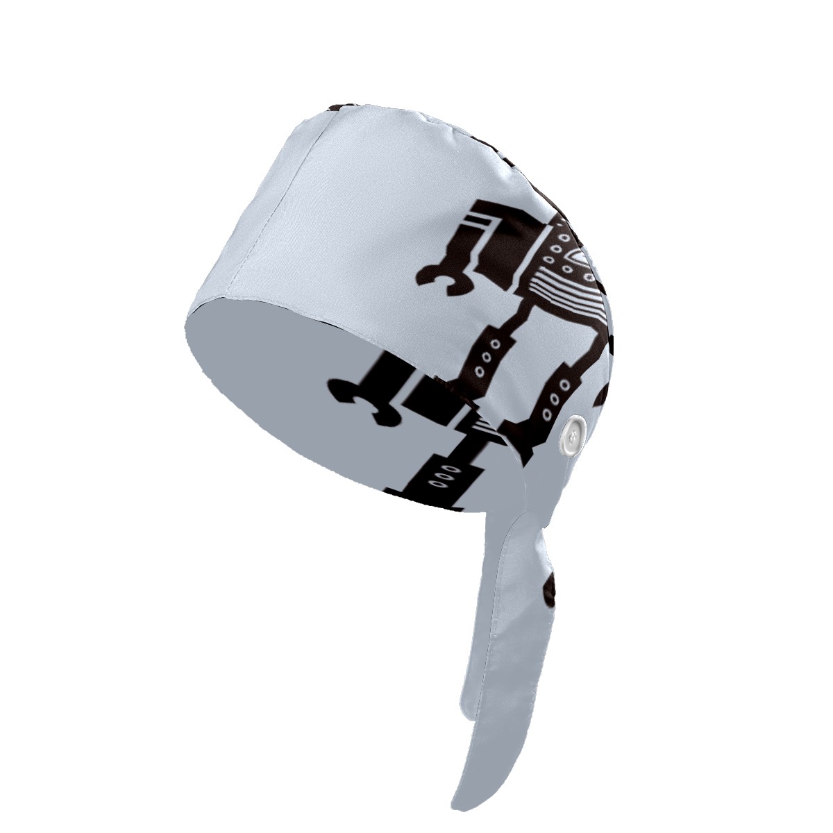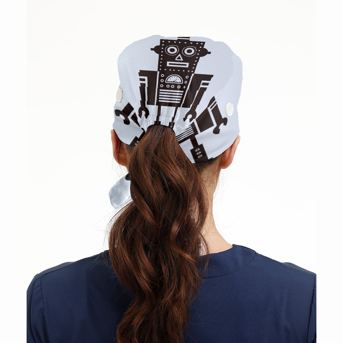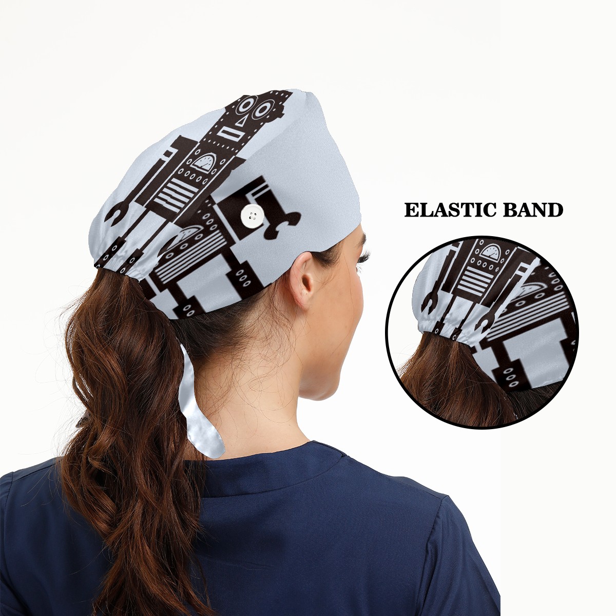 Funny Cartoon Robot Working Cap Button and Sweatband Adjustable Elastic Head Cover Hair Tie Back Work Hats for Women Men