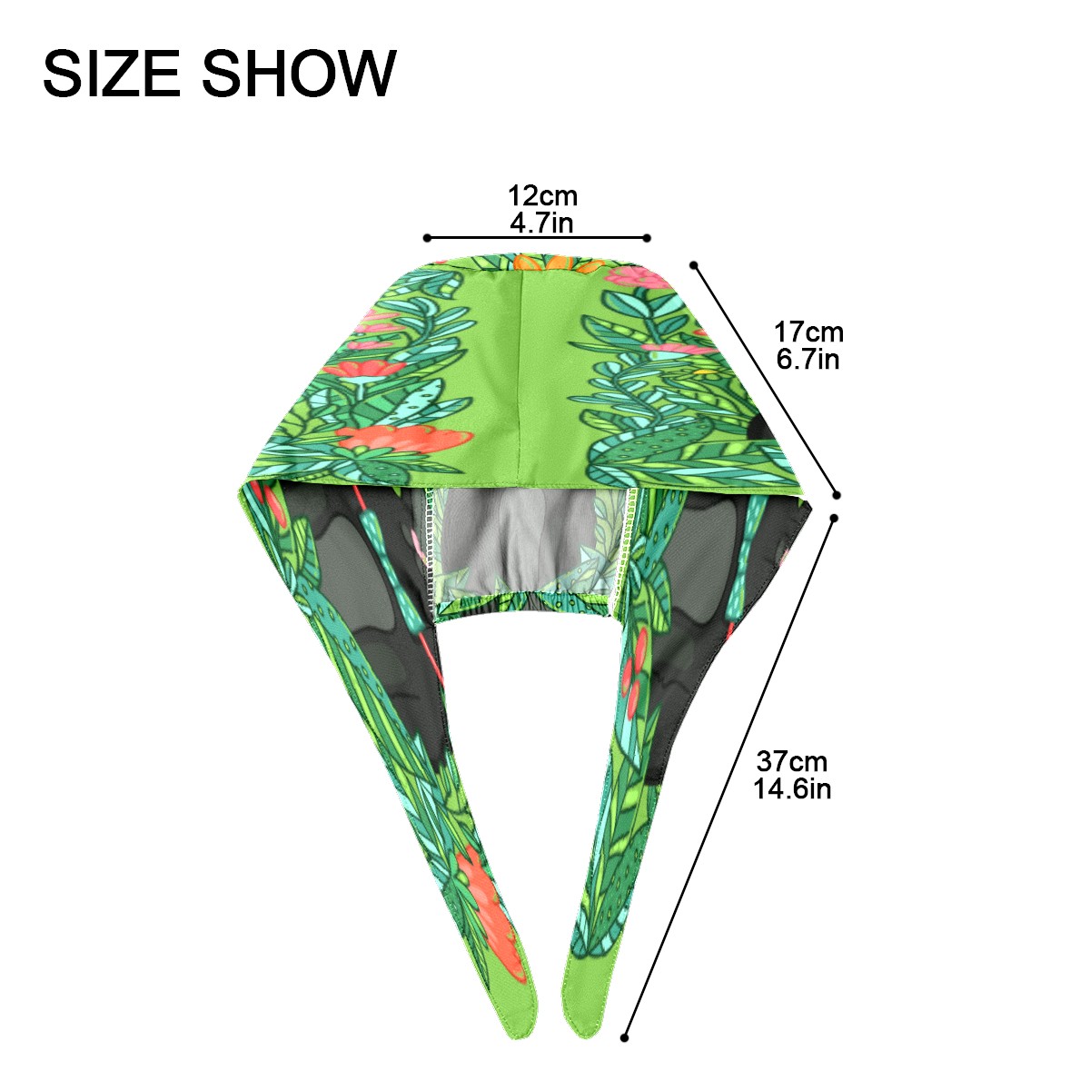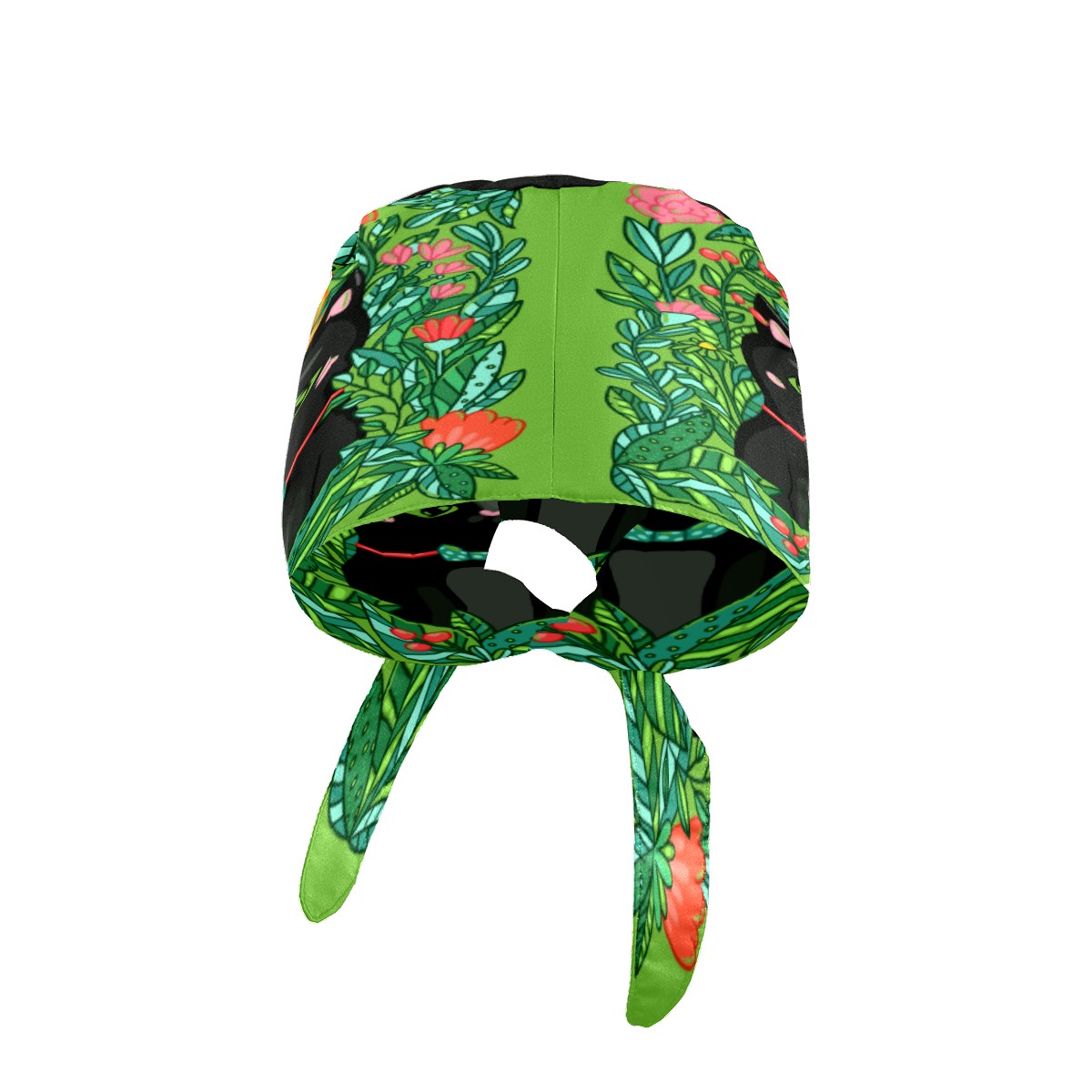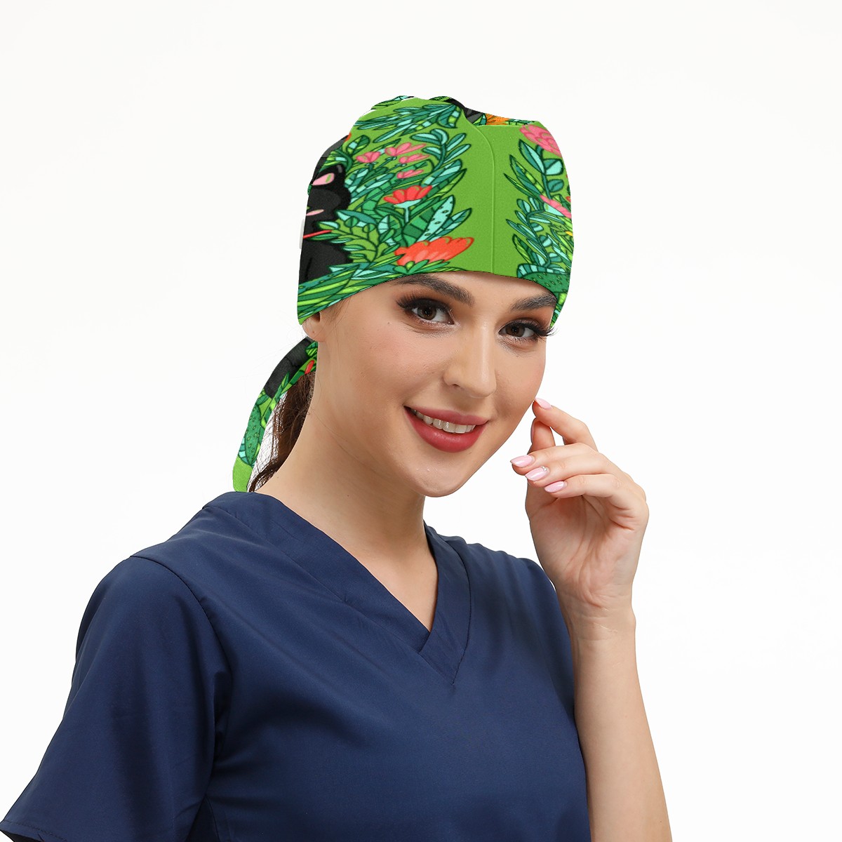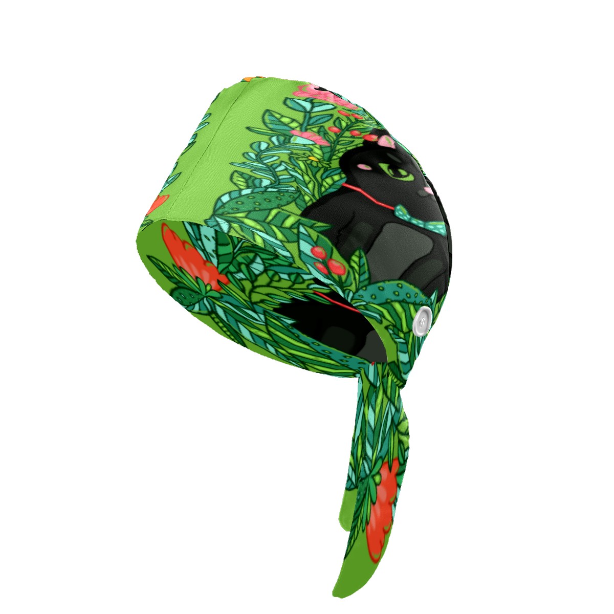 Funny Cat With Floral Print Working Cap Button and Sweatband Adjustable Elastic Head Cover Hair Tie Back Work Hats for Women Men