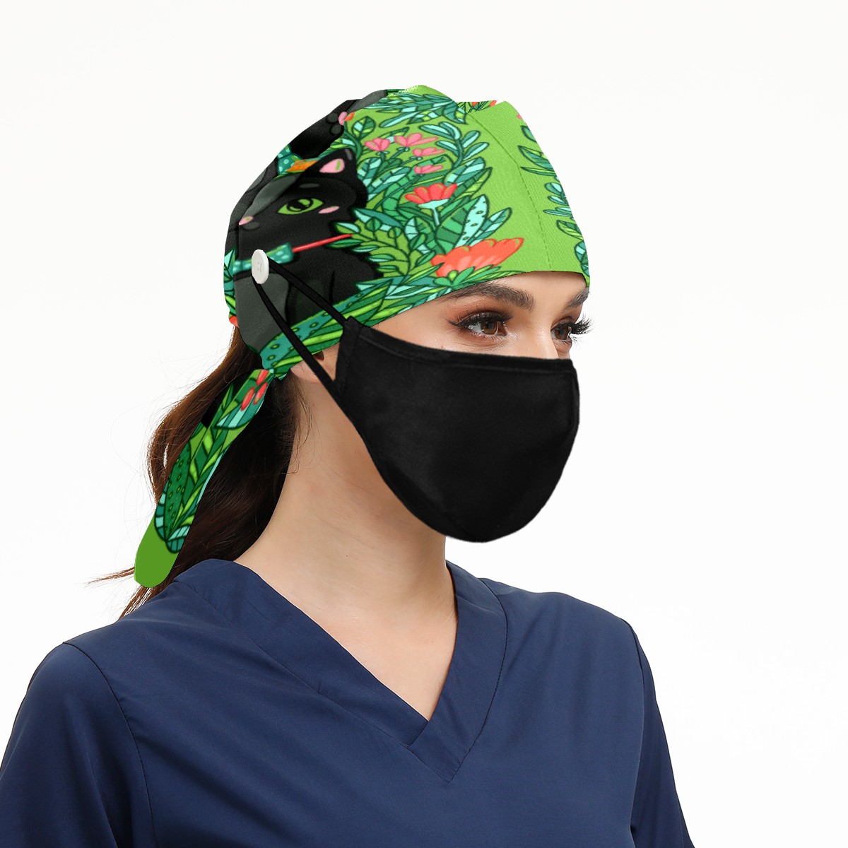 <p>Working cap with Sweatband and Button for Women Men</p><p>Material&nbsp;: 50% cotton+50% polyester</p><p>Size:&nbsp;One size fits most,&nbsp;suitable for both men and women.</p><p>Working Cap with Buttons Design:special&nbsp;design with buttons to protect ears for those who are wearing ma-sk. These new styles hats will allow you to put the straps around the buttons instead of your ears, make you feel more comfortable.</p><p>Sweat-absorbent towel cloth inside: Built-in&nbsp;100% cotton sweatband, keep the forehead clean after long time working.</p><p>Widely occasion: Widely used in beauty spa, house cleaning, cooking, sleeping, or for cos-play&nbsp;party.</p><p>Lovely pattern: lovely&nbsp;3D printed&nbsp;pattern,&nbsp;it's perfect for gift to you family&nbsp;and friends.</p>