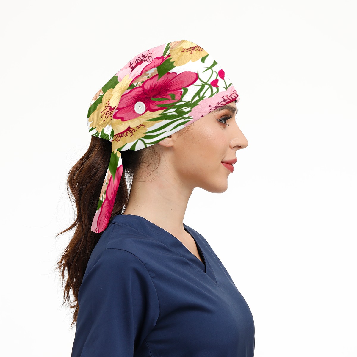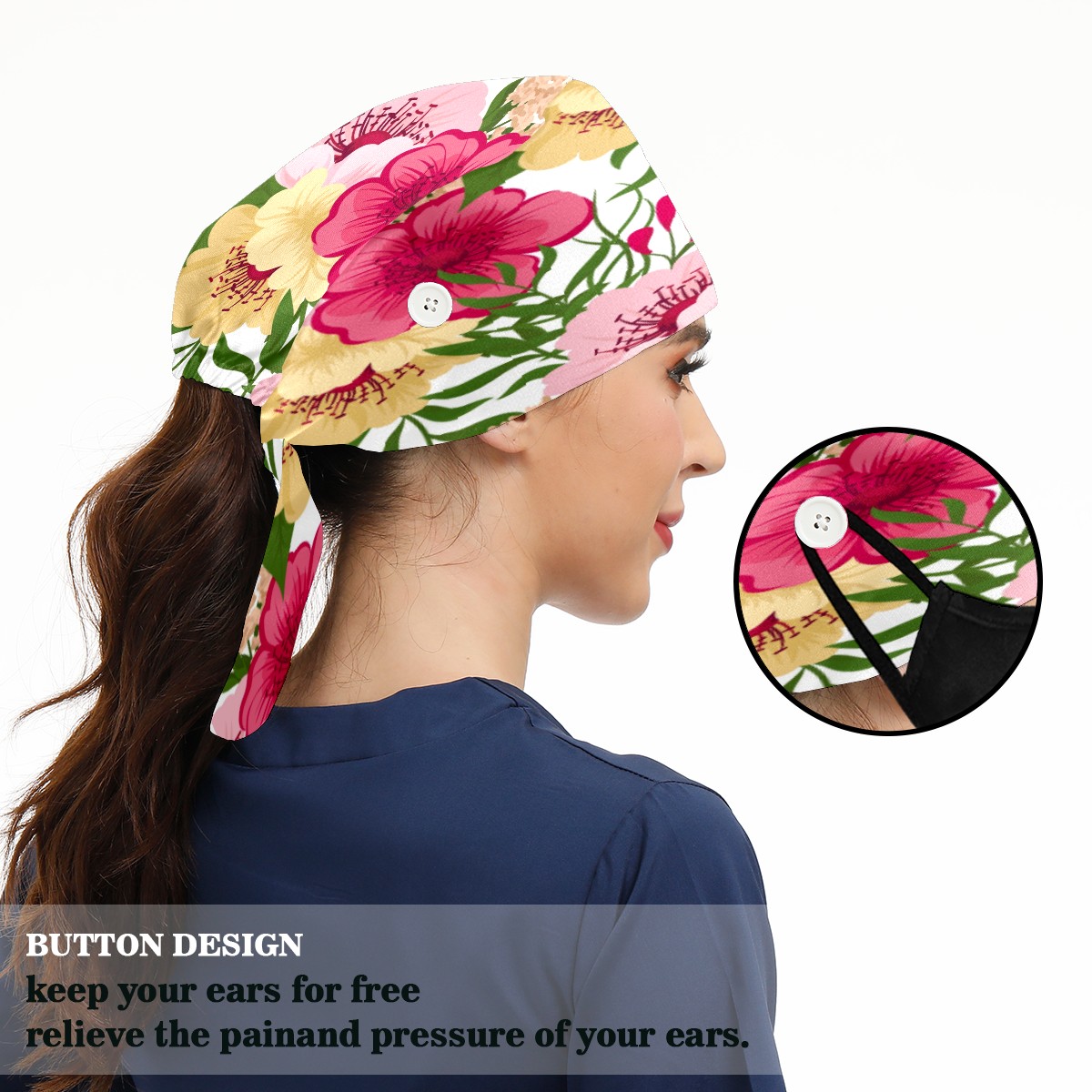 <p>Working cap with Sweatband and Button for Women Men</p><p>Material : 50% cotton+50% polyester</p><p>Size: One size fits most, suitable for both men and women.</p><p>Working Cap with Buttons Design:special design with buttons to protect ears for those who are wearing ma-sk. These new styles hats will allow you to put the straps around the buttons instead of your ears, make you feel more comfortable.</p><p>Sweat-absorbent towel cloth inside: Built-in 100% cotton sweatband, keep the forehead clean after long time working.</p><p>Widely occasion: Widely used in beauty spa, house cleaning, cooking, sleeping, or for cos-play party.</p><p>Lovely pattern: lovely 3D printed pattern, it's perfect for gift to you family and friends.</p>