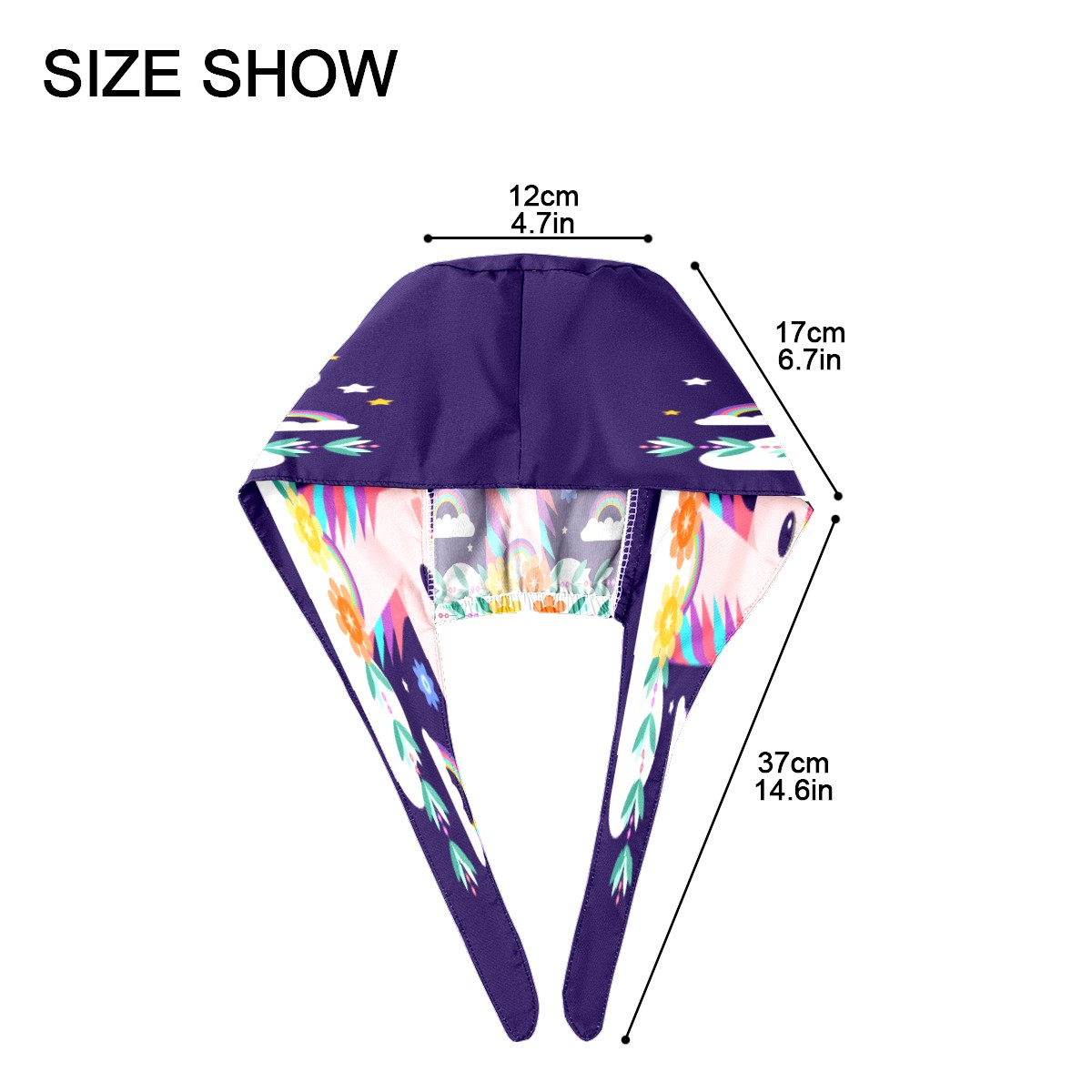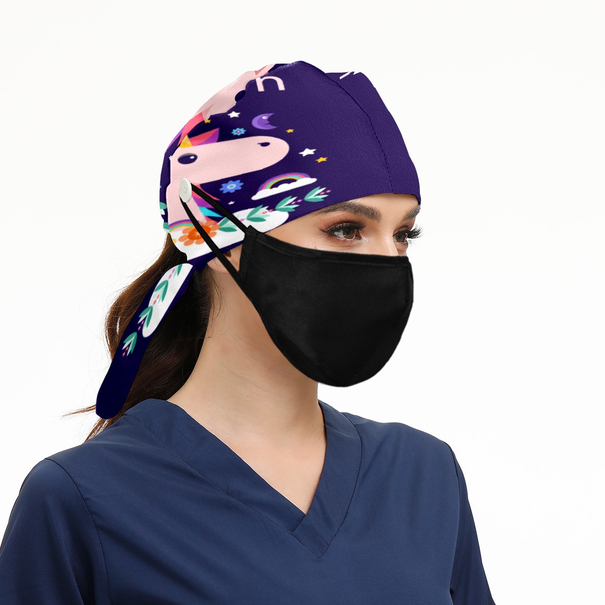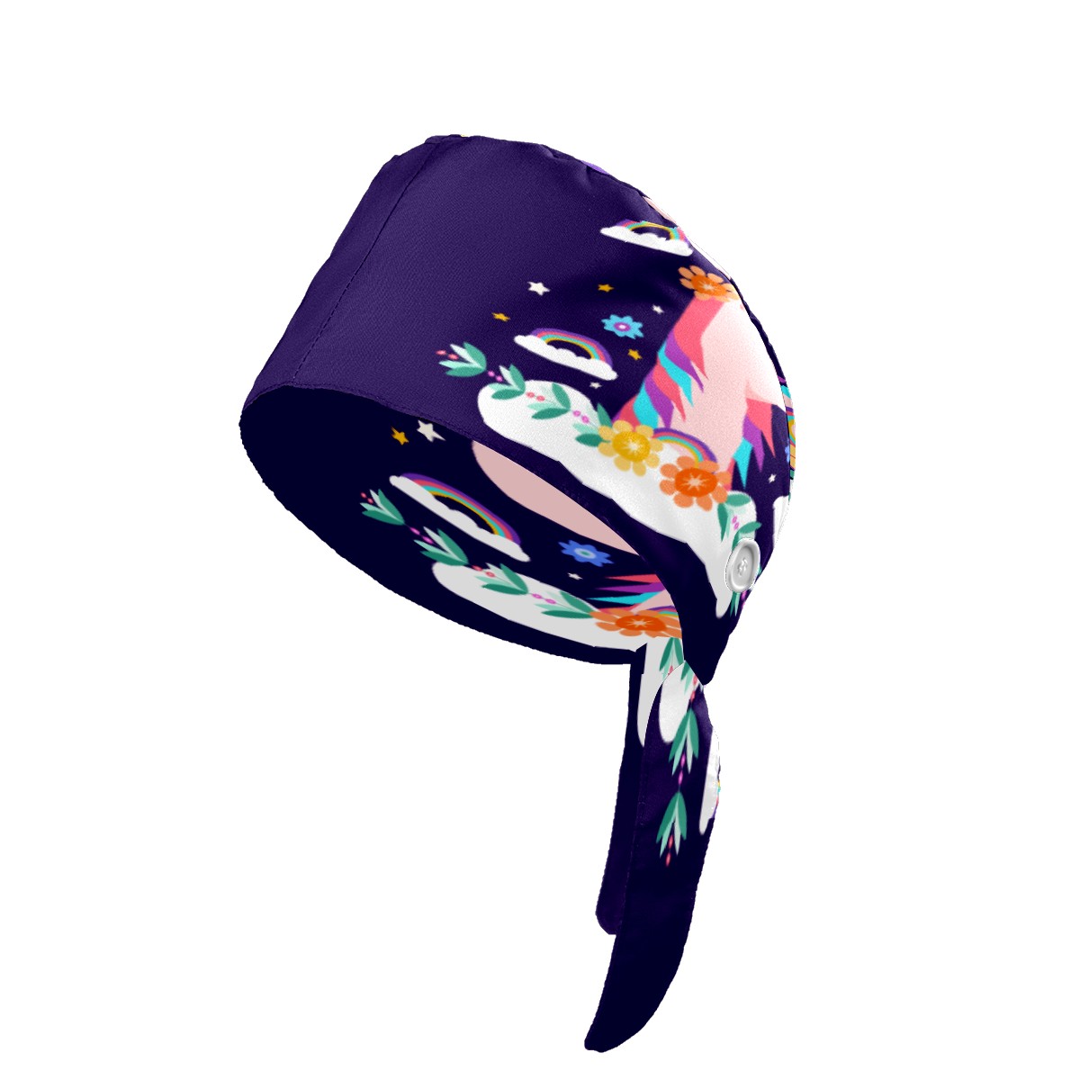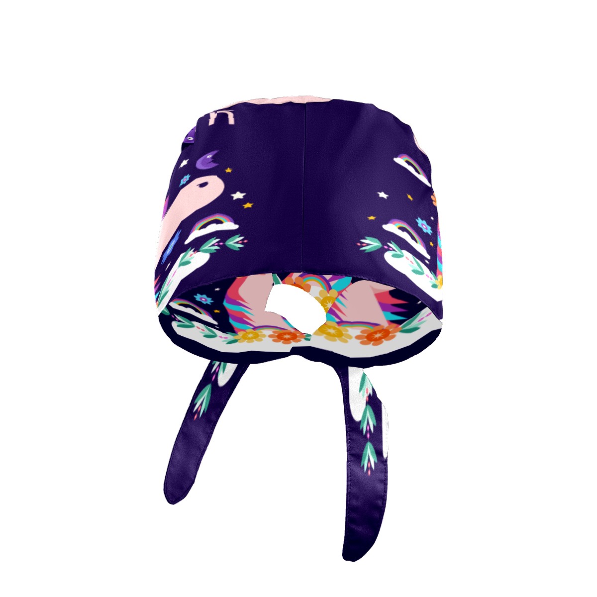 Rainbow Unicorn Cartoon Working Cap Button and Sweatband Adjustable Elastic Head Cover Hair Tie Back Work Hats for Women Men