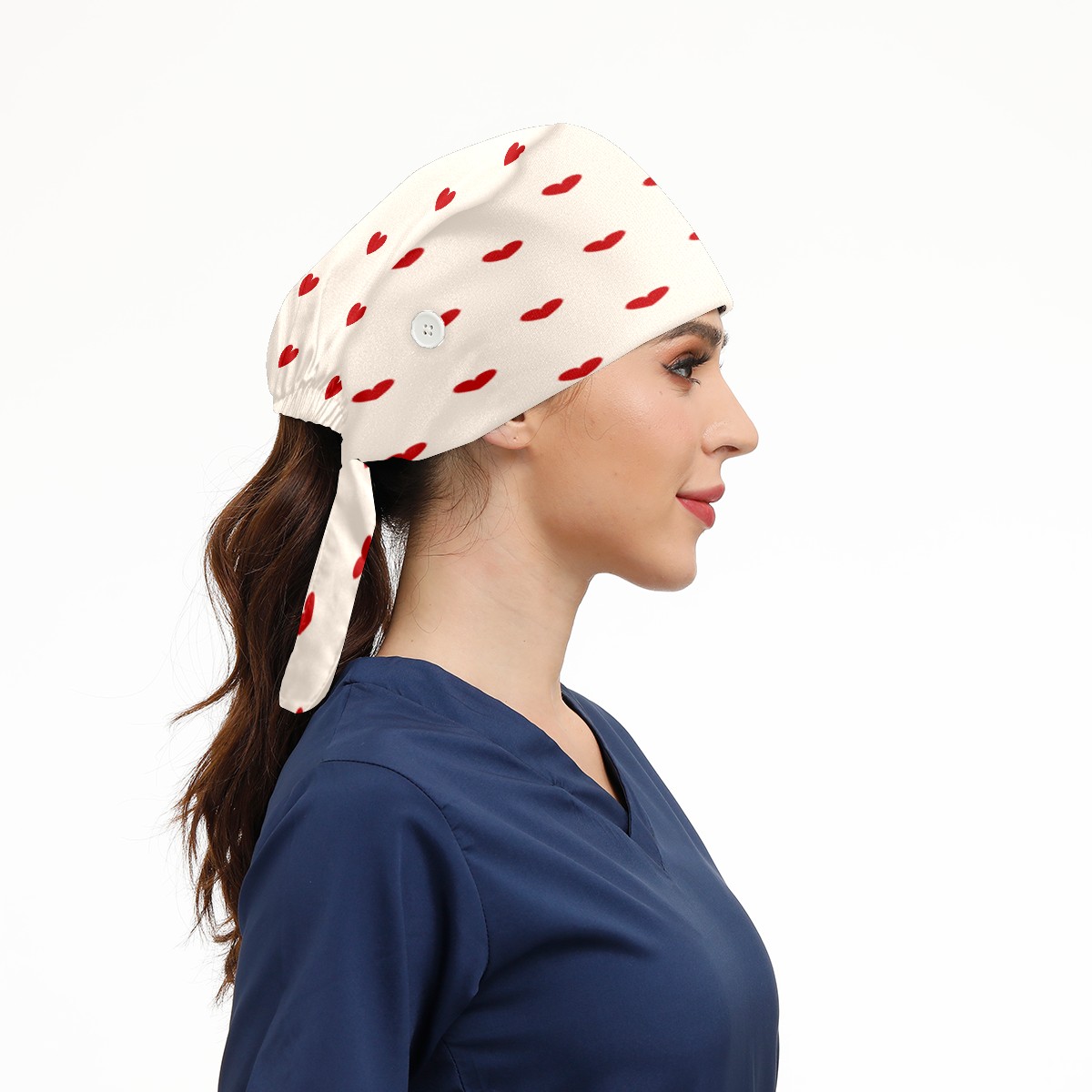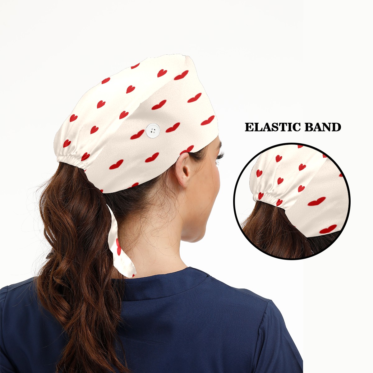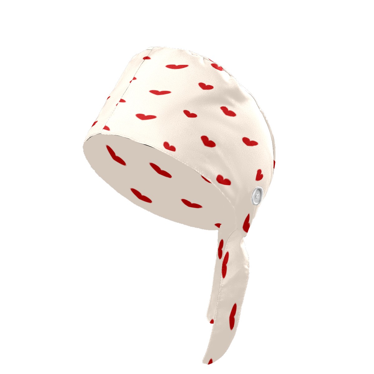 Red Love Heart Pattern Working Cap Button and Sweatband Adjustable Elastic Head Cover Hair Tie Back Work Hats for Women Men