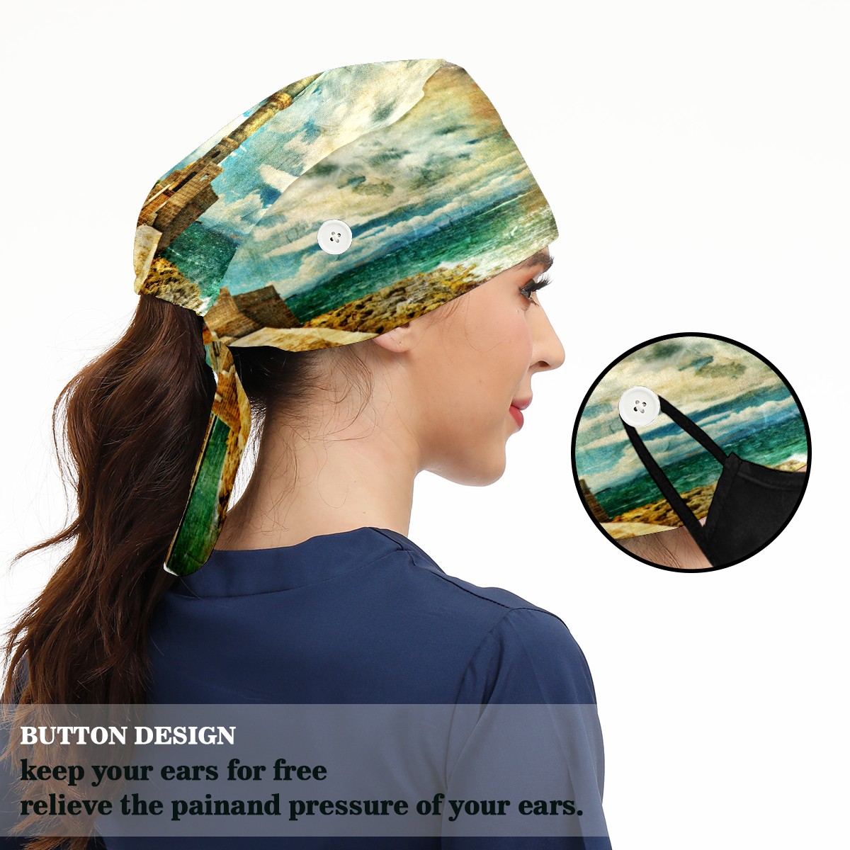 <p>Working cap with Sweatband and Button for Women Men</p><p>Material&nbsp;: 50% cotton+50% polyester</p><p>Size:&nbsp;One size fits most,&nbsp;suitable for both men and women.</p><p>Working Cap with Buttons Design:special&nbsp;design with buttons to protect ears for those who are wearing ma-sk. These new styles hats will allow you to put the straps around the buttons instead of your ears, make you feel more comfortable.</p><p>Sweat-absorbent towel cloth inside: Built-in&nbsp;100% cotton sweatband, keep the forehead clean after long time working.</p><p>Widely occasion: Widely used in beauty spa, house cleaning, cooking, sleeping, or for cos-play&nbsp;party.</p><p>Lovely pattern: lovely&nbsp;3D printed&nbsp;pattern,&nbsp;it's perfect for gift to you family&nbsp;and friends.</p>