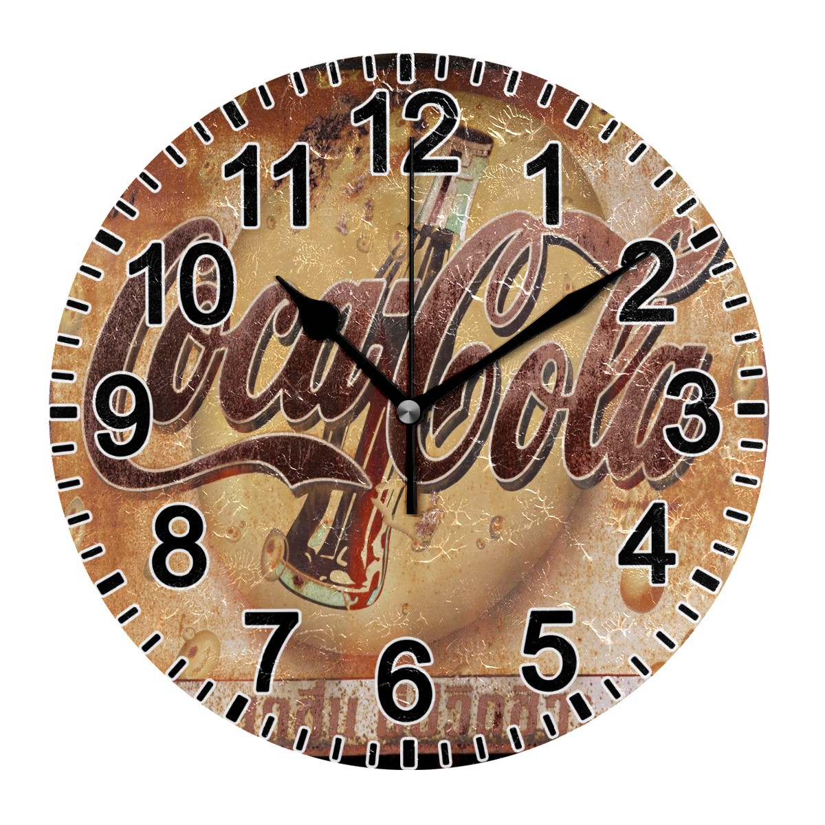 Vintage Wall Clock Battery Operated, Coca Cola Vintage Sign Decorative Round Wall Clock for Farmhouse Office Living Room Bedroom