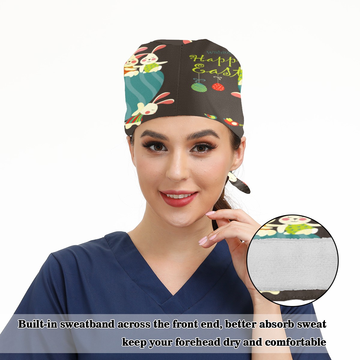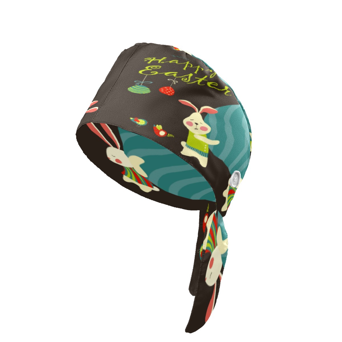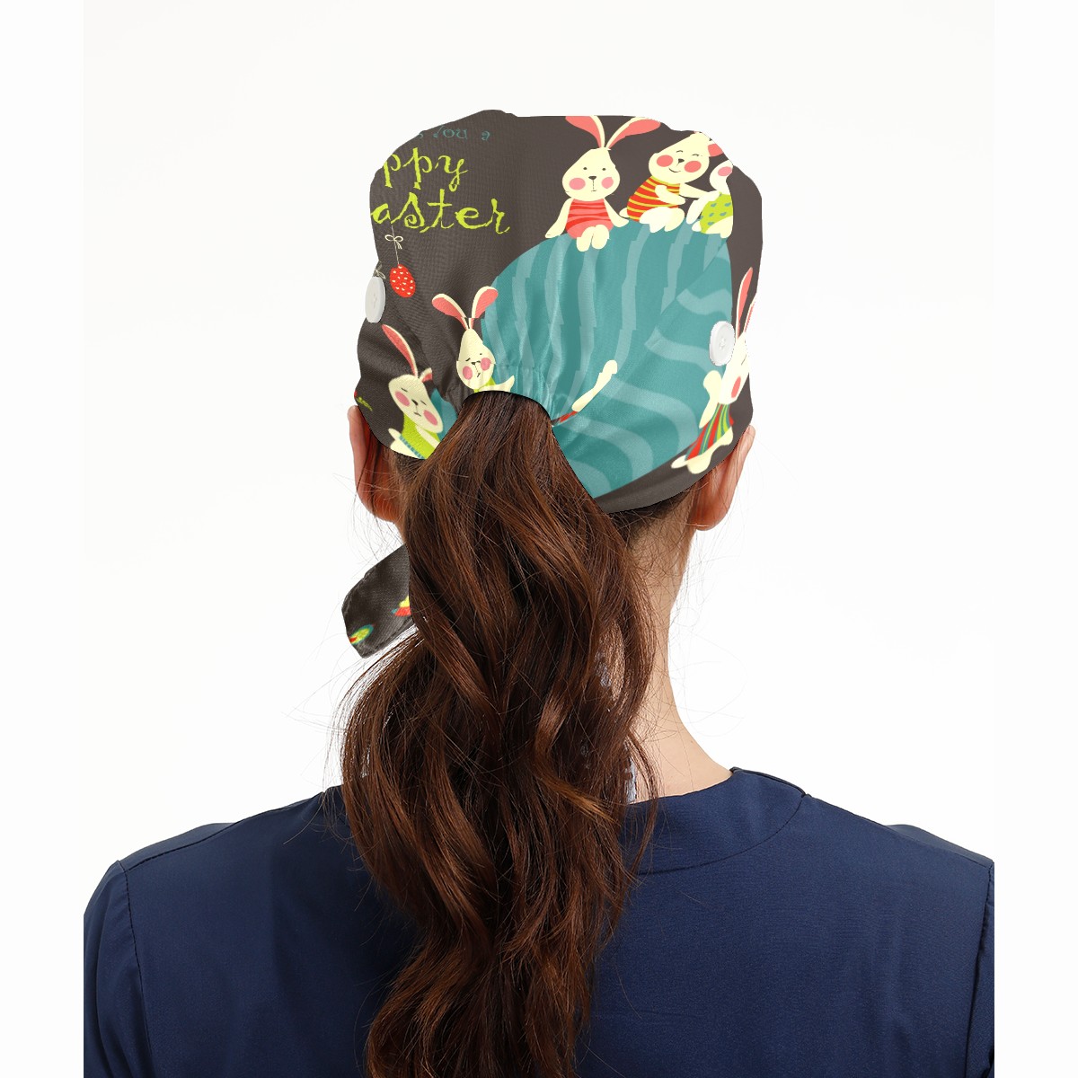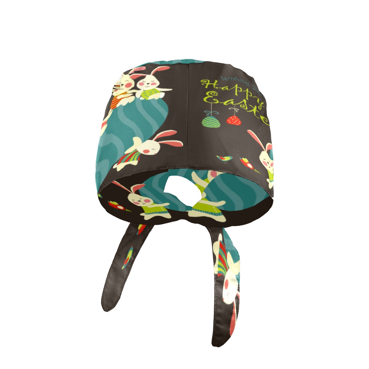 Happy Easter Rabbit With Eggs Working Cap Button and Sweatband Adjustable Elastic Head Cover Hair Tie Back Work Hats for Women Men