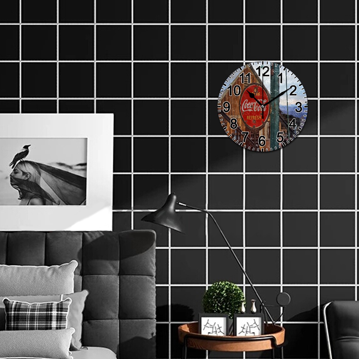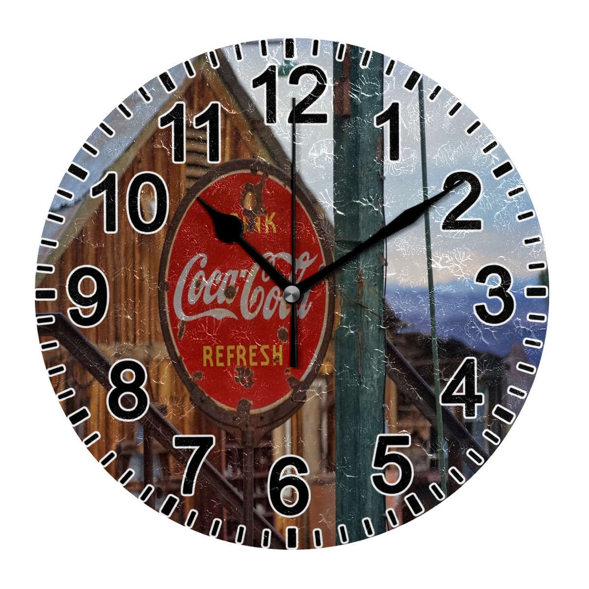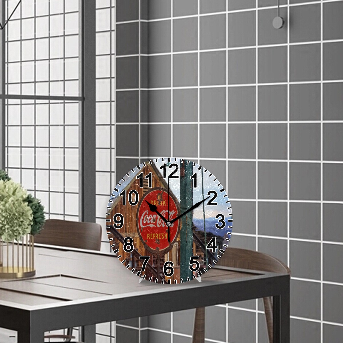 Vintage Wall Clock Battery Operated, Prague Europe Coca Cola Sign Decorative Round Wall Clock for Farmhouse Office Living Room Bedroom