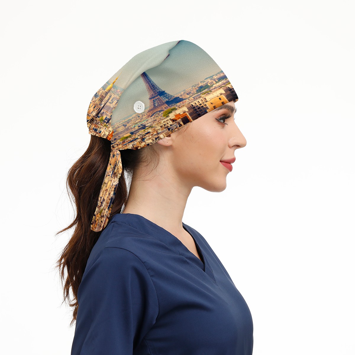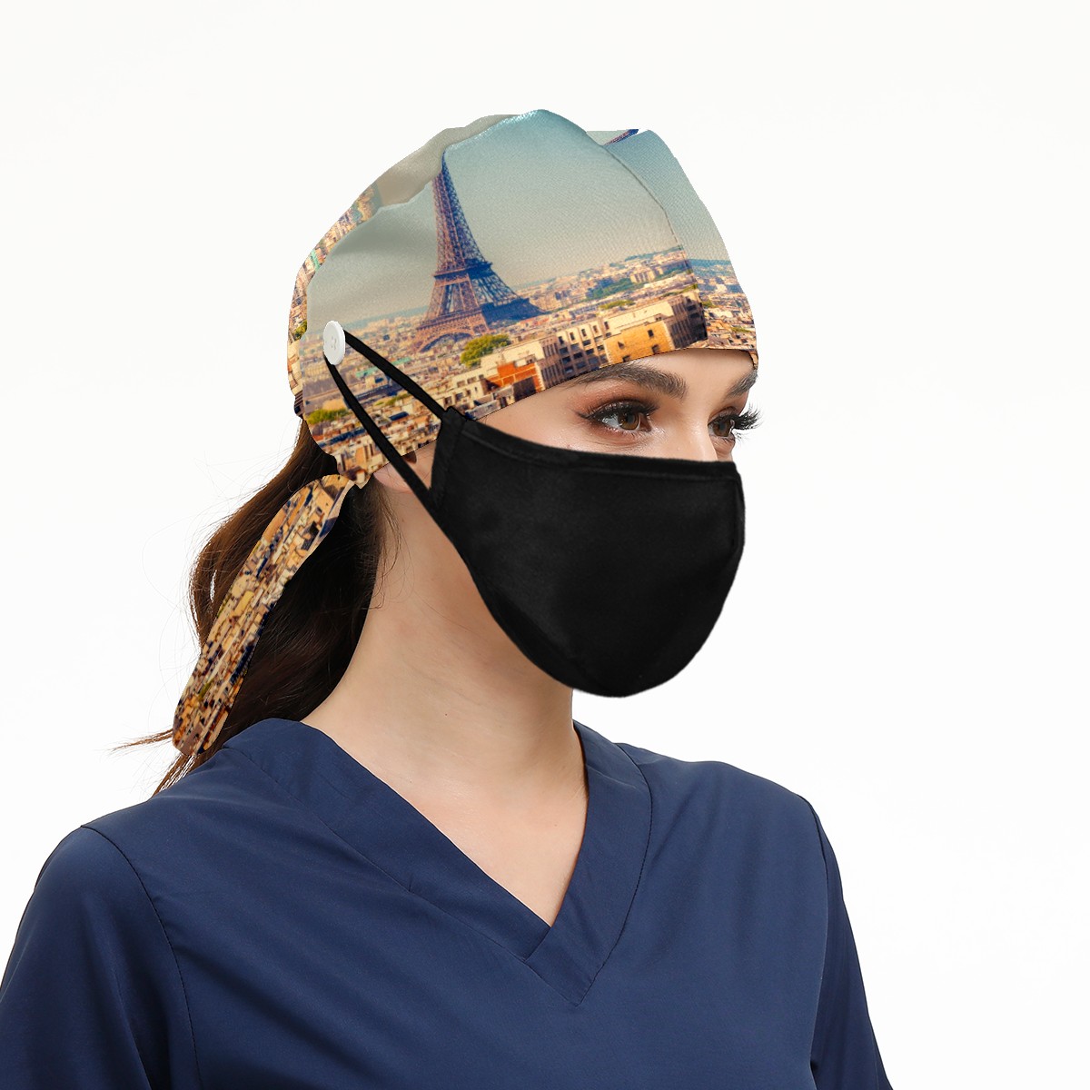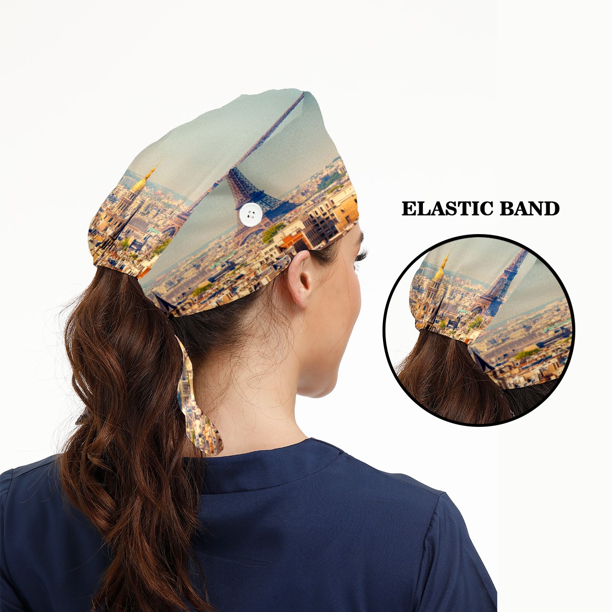 Paris Tour Eiffel Working Cap Button and Sweatband Adjustable Elastic Head Cover Hair Tie Back Work Hats for Women Men