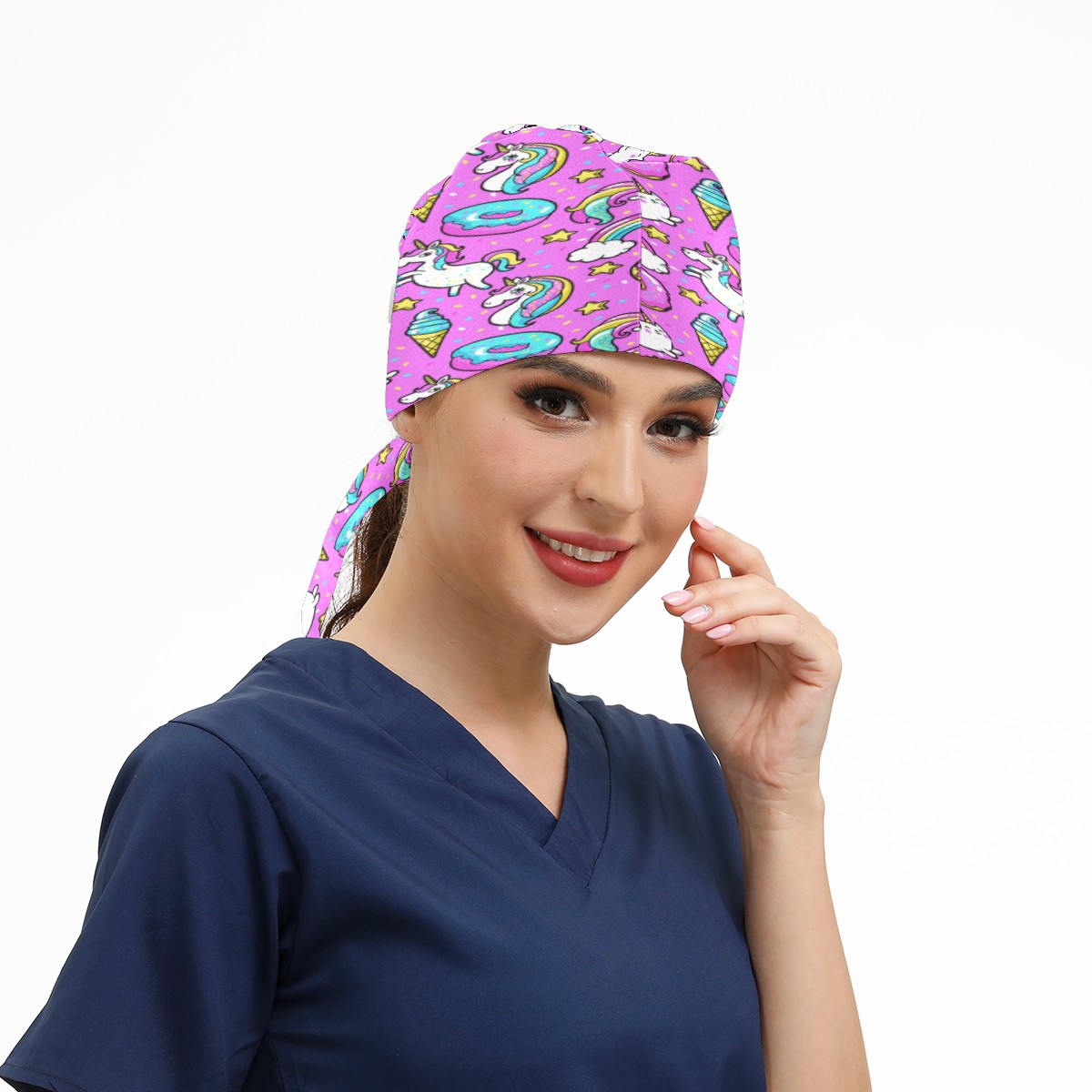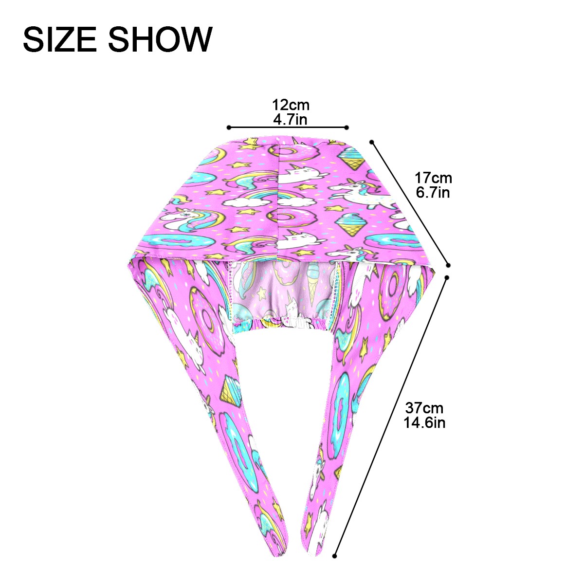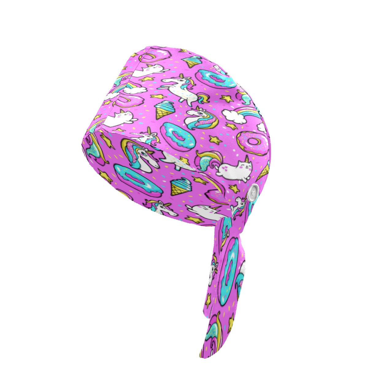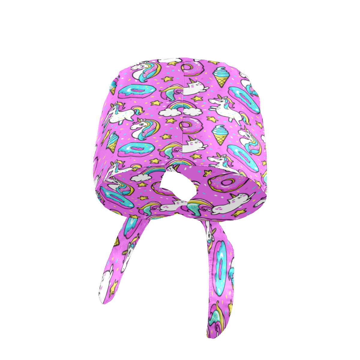 Pink Unicorn Rainbow Donuts Pattern Working Cap Button and Sweatband Adjustable Elastic Head Cover Hair Tie Back Work Hats for Women Men