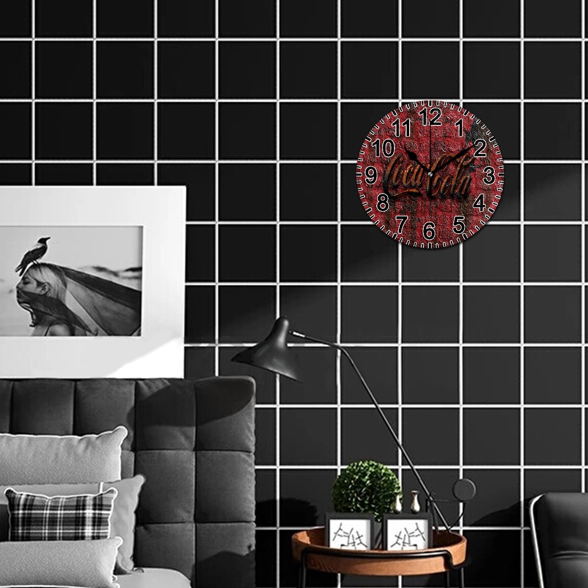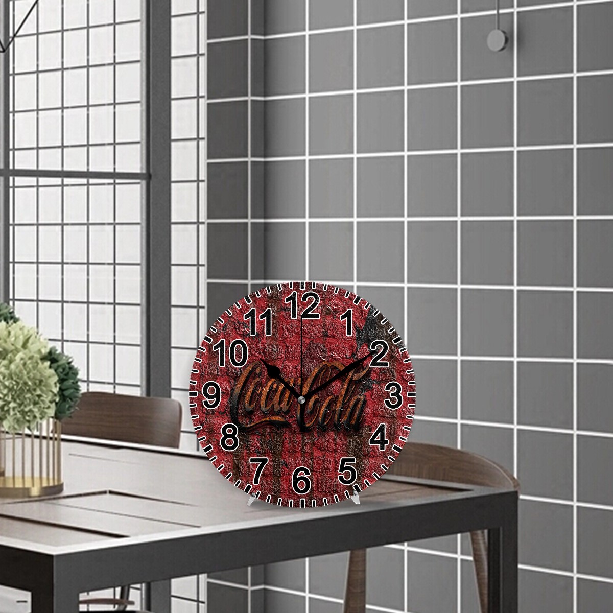Vintage Wall Clock Battery Operated, Coke Coca Cola Brick Wall Rust Decorative Round Wall Clock for Farmhouse Office Living Room Bedroom