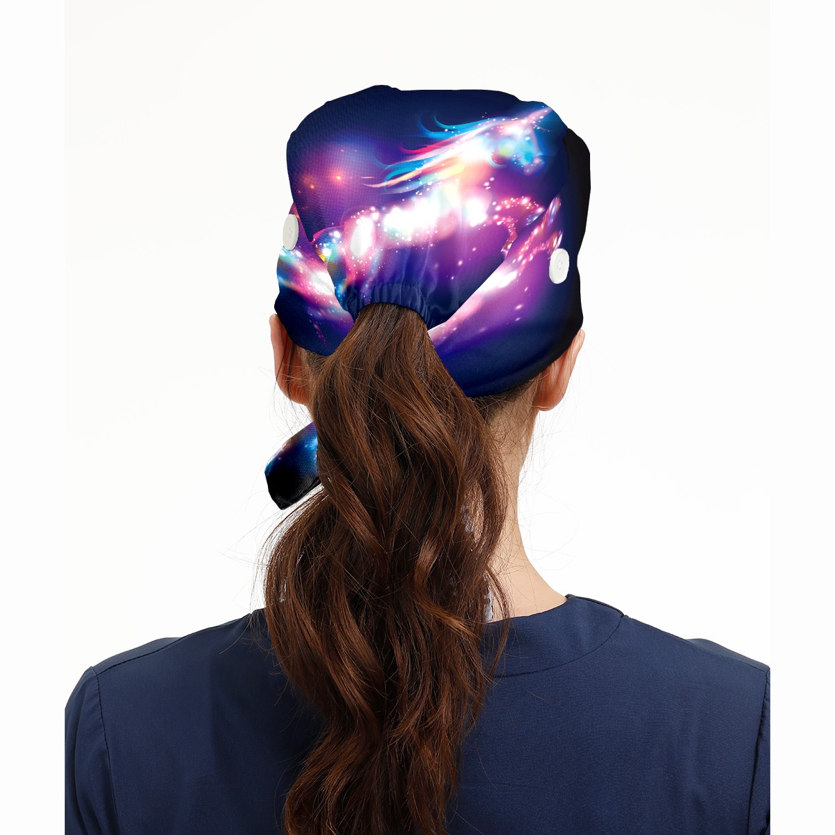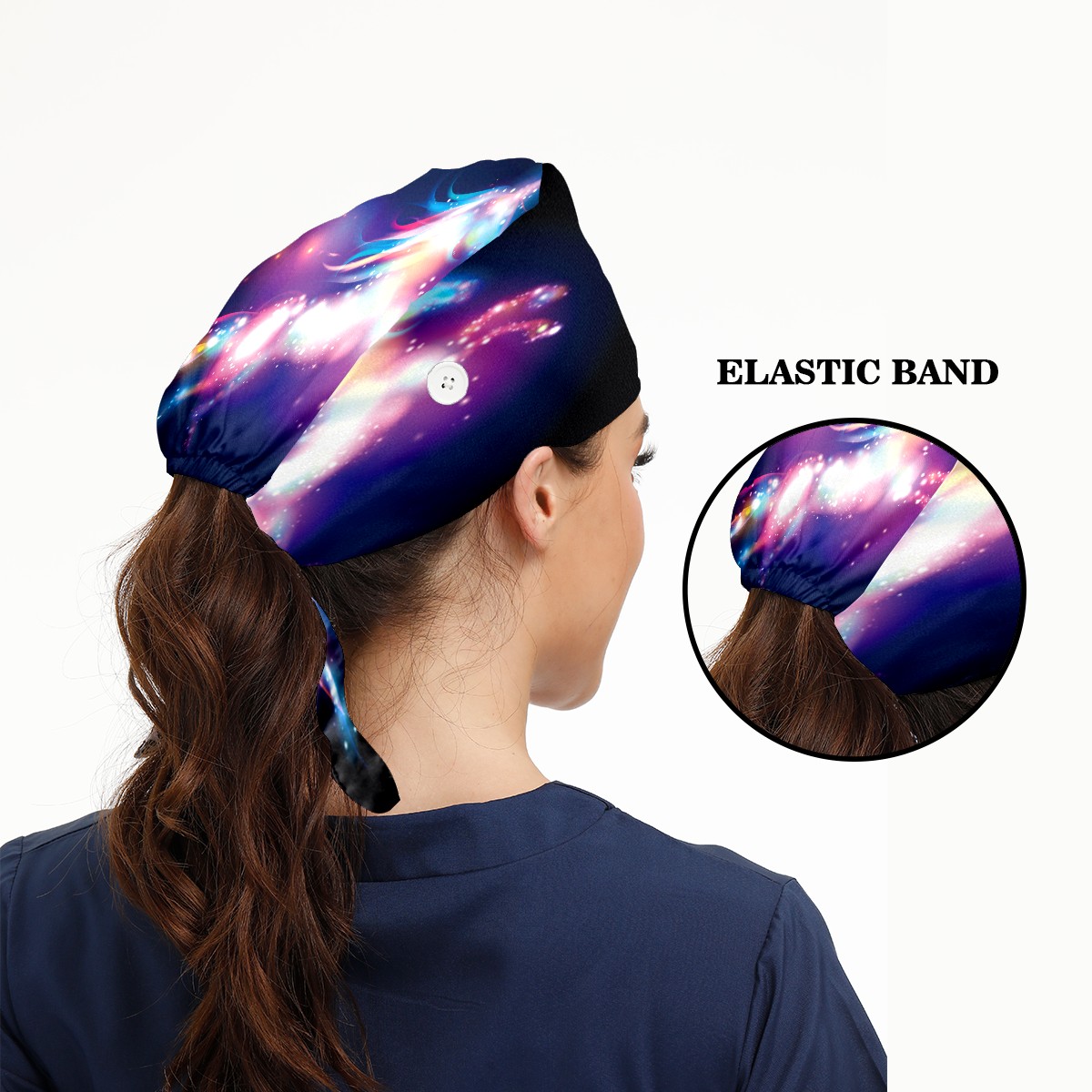 Galaxy Nebula Unicorn Horse Working Cap Button and Sweatband Adjustable Elastic Head Cover Hair Tie Back Work Hats for Women Men
