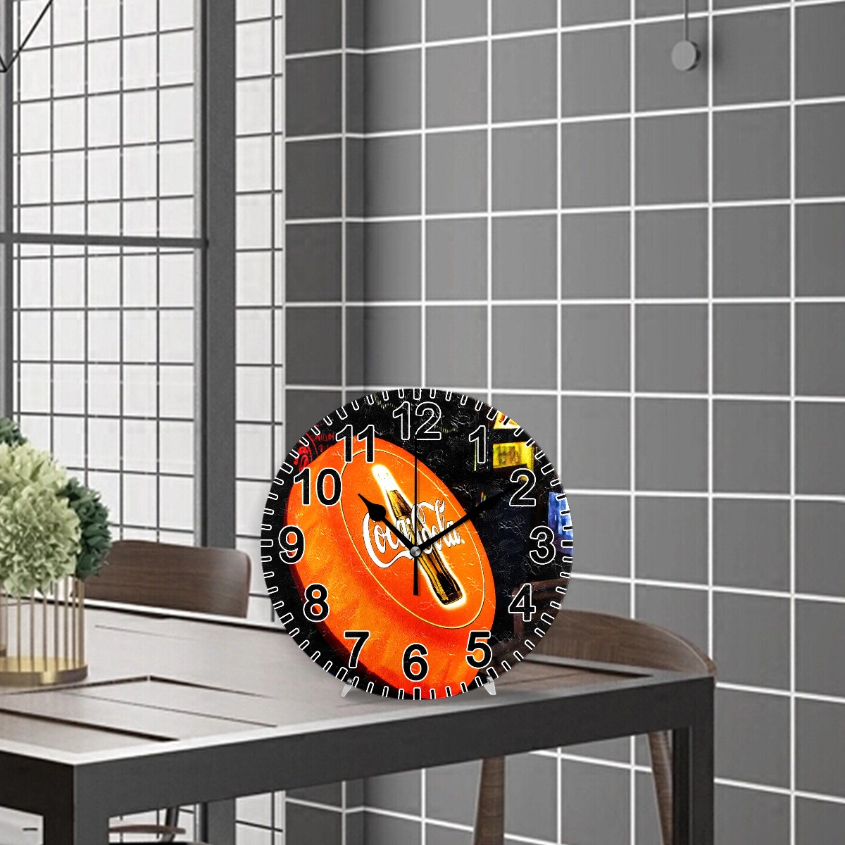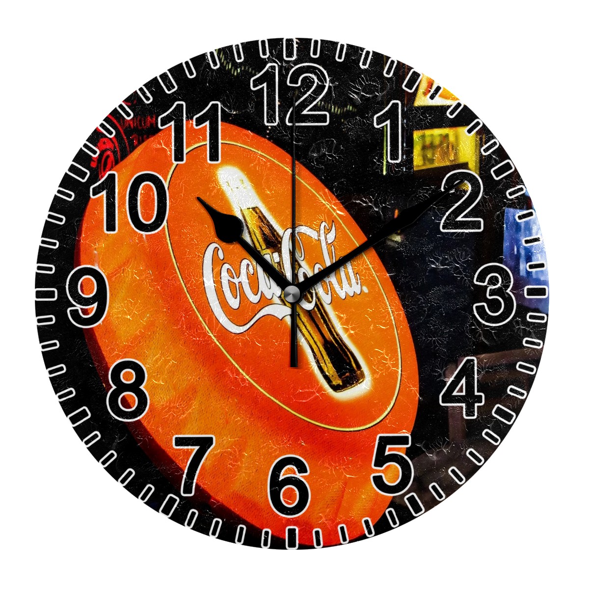 Vintage Wall Clock Battery Operated, Coca Cola Light Bar Night Lighting Decorative Round Wall Clock for Farmhouse Office Living Room Bedroom