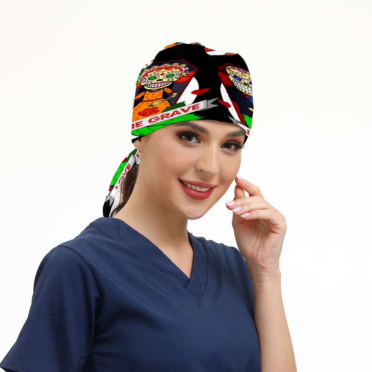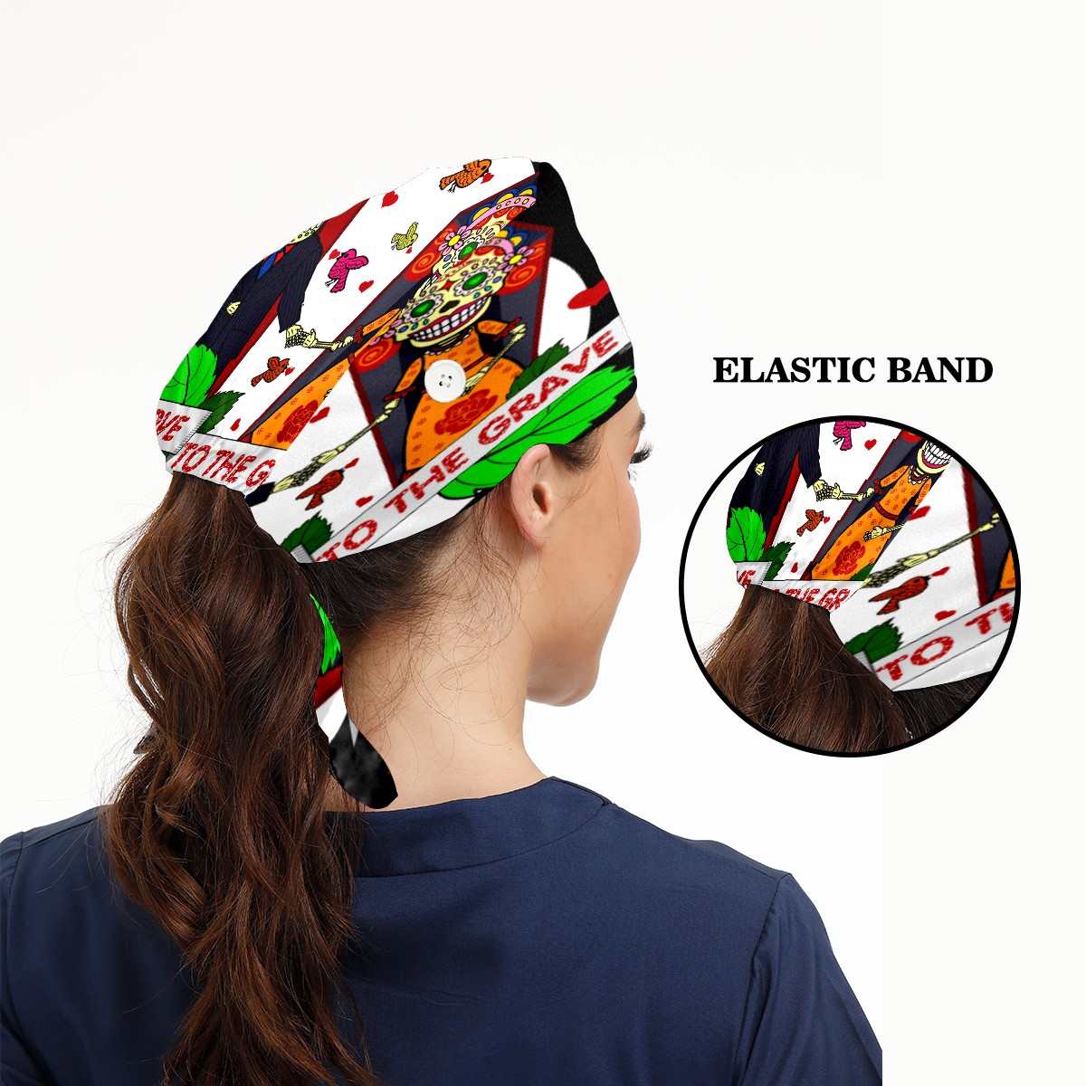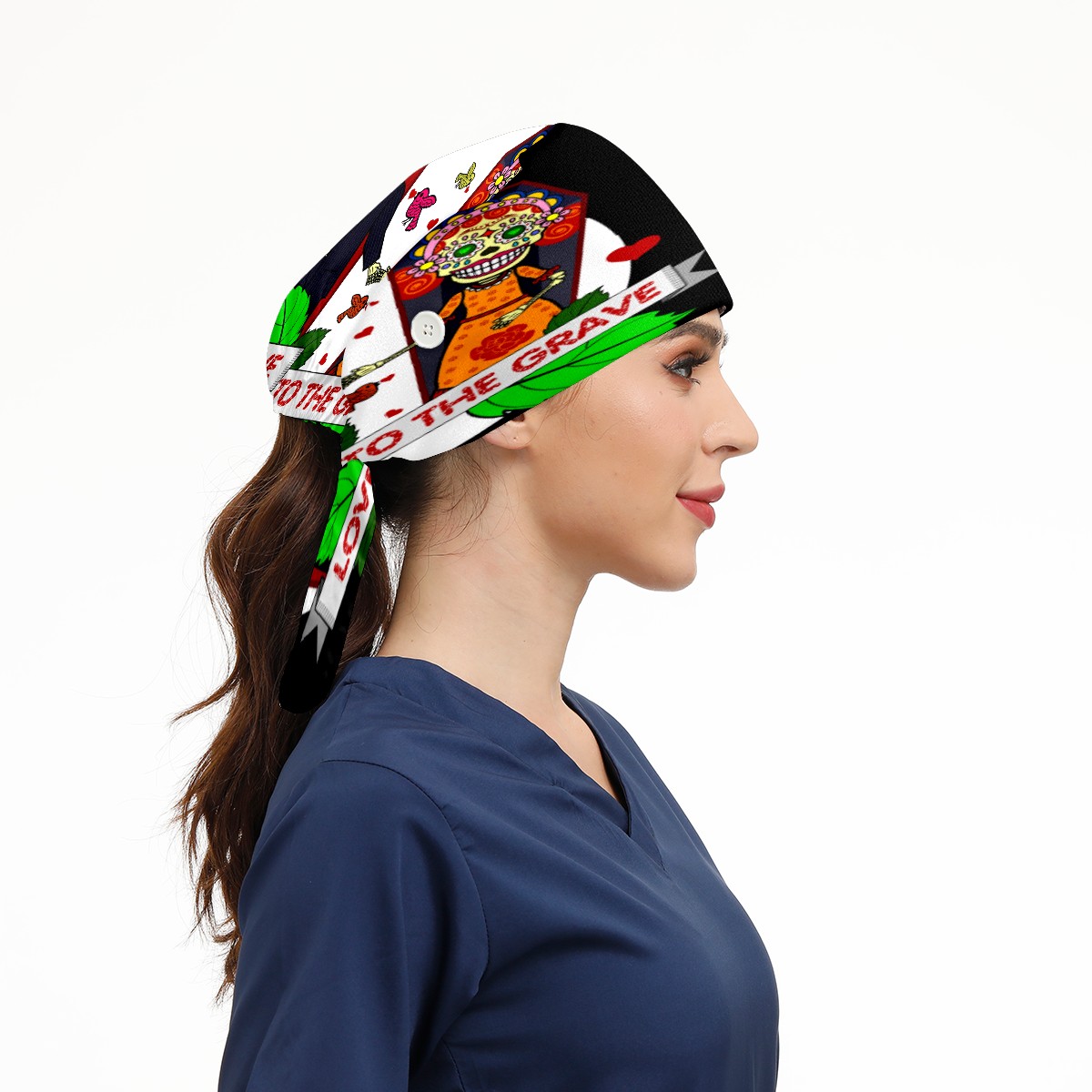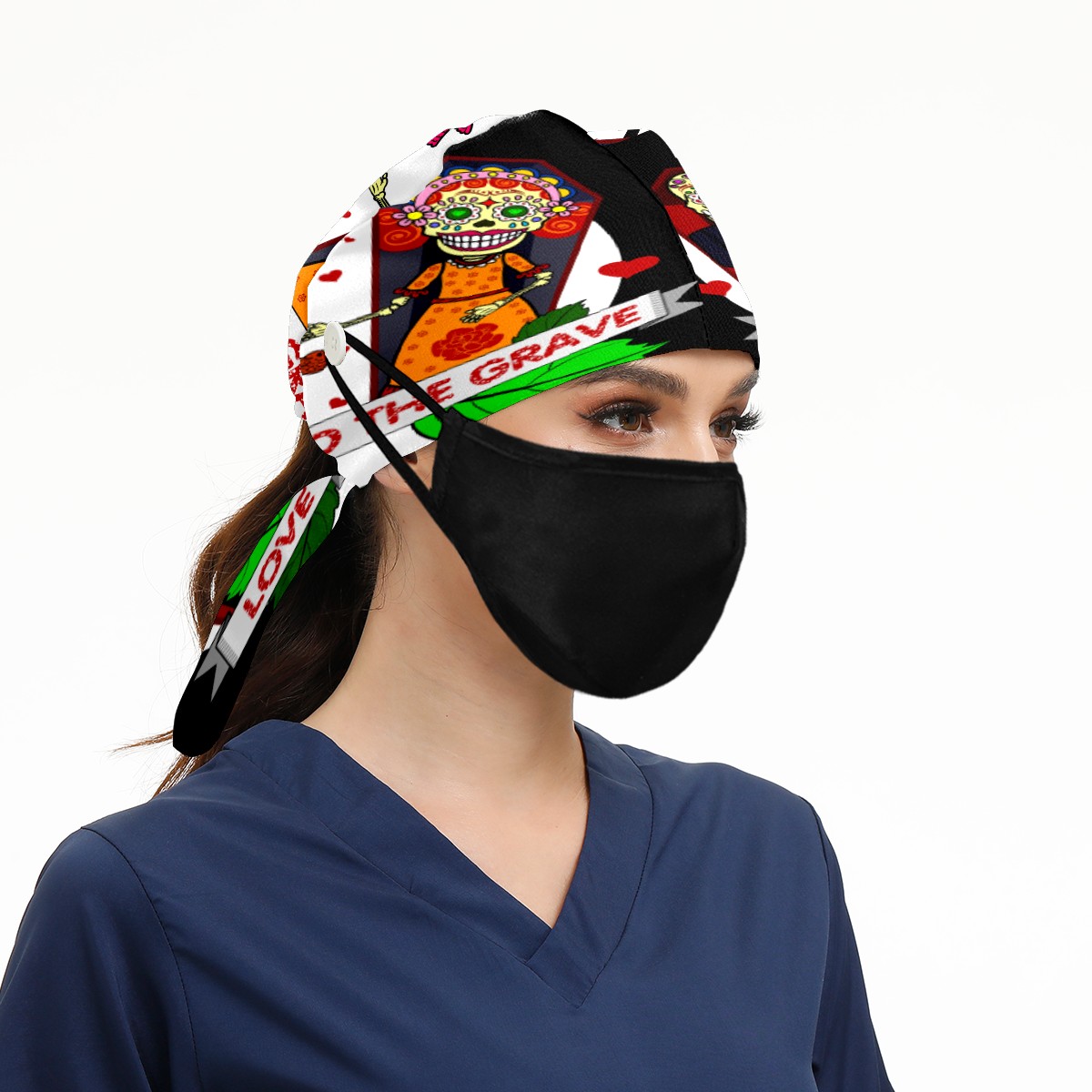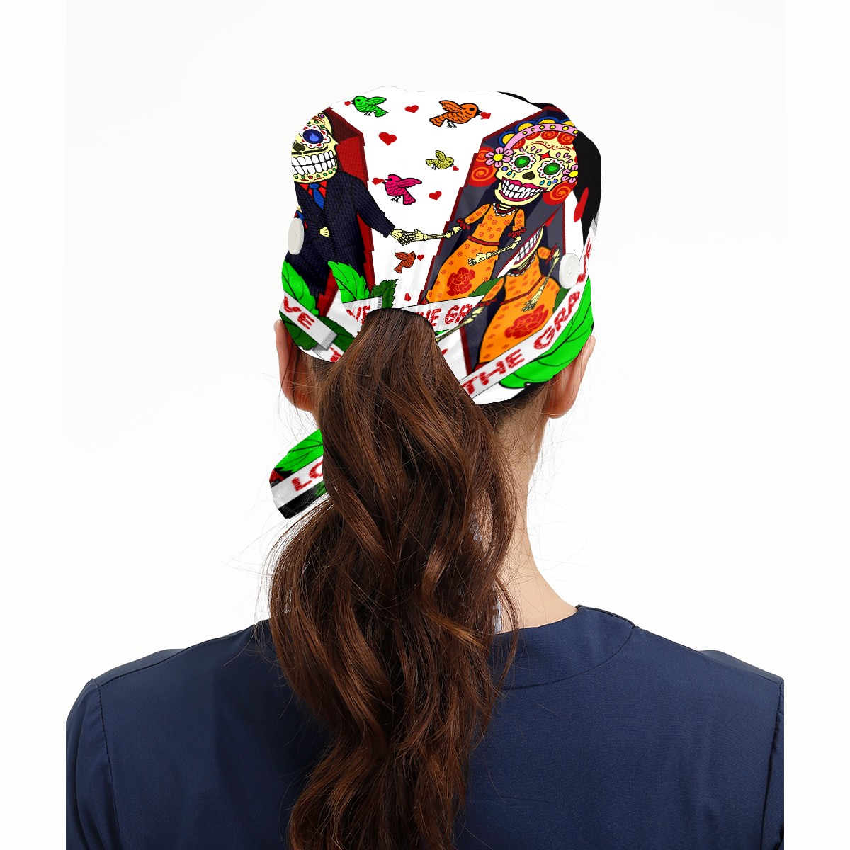 Sugar Skull Love Mexico Working Cap Button and Sweatband Adjustable Elastic Head Cover Hair Tie Back Work Hats for Women Men