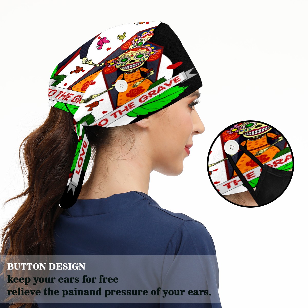 <p>Working cap with Sweatband and Button for Women Men</p><p>Material&nbsp;: 50% cotton+50% polyester</p><p>Size:&nbsp;One size fits most,&nbsp;suitable for both men and women.</p><p>Working Cap with Buttons Design:special&nbsp;design with buttons to protect ears for those who are wearing ma-sk. These new styles hats will allow you to put the straps around the buttons instead of your ears, make you feel more comfortable.</p><p>Sweat-absorbent towel cloth inside: Built-in&nbsp;100% cotton sweatband, keep the forehead clean after long time working.</p><p>Widely occasion: Widely used in beauty spa, house cleaning, cooking, sleeping, or for cos-play&nbsp;party.</p><p>Lovely pattern: lovely&nbsp;3D printed&nbsp;pattern,&nbsp;it's perfect for gift to you family&nbsp;and friends.</p>