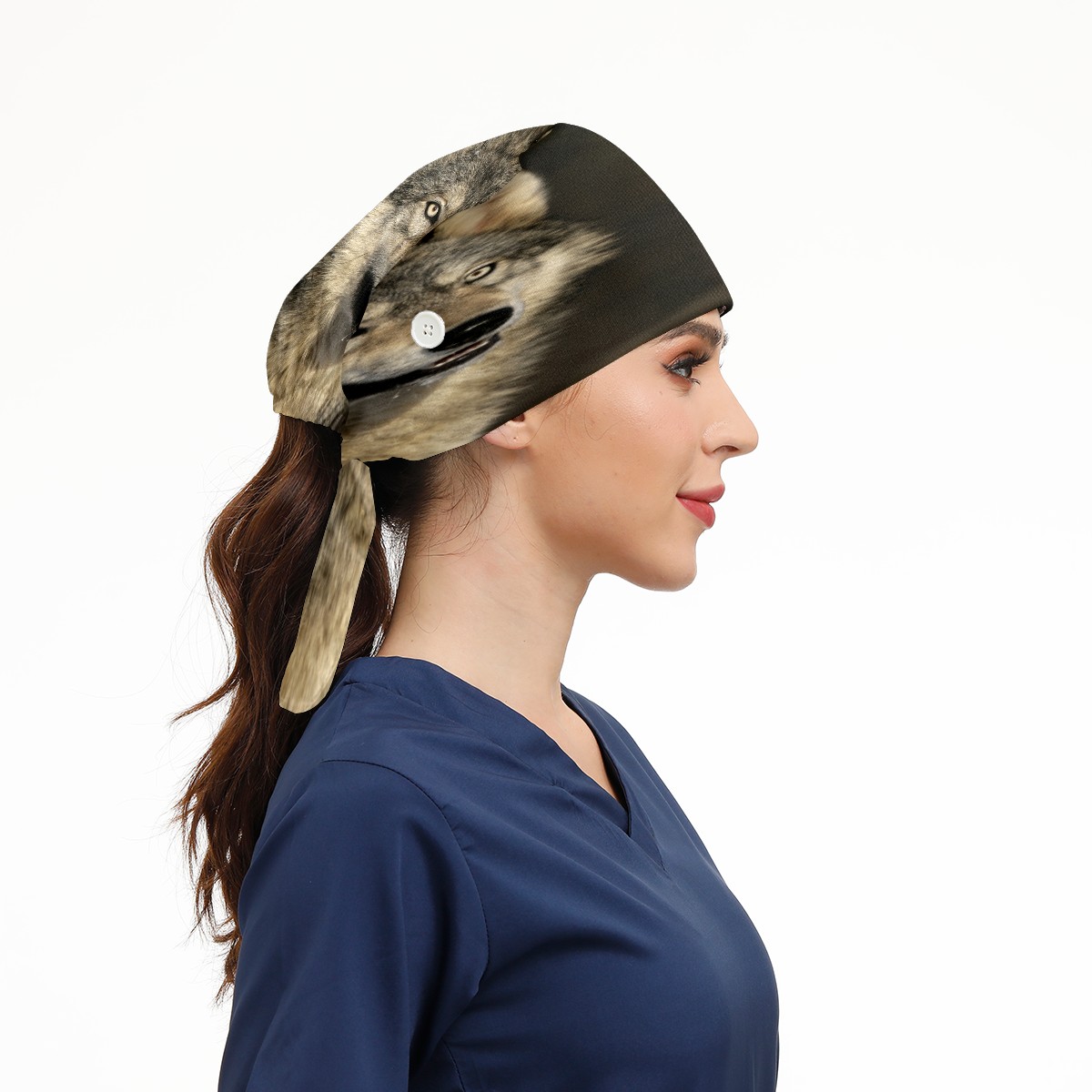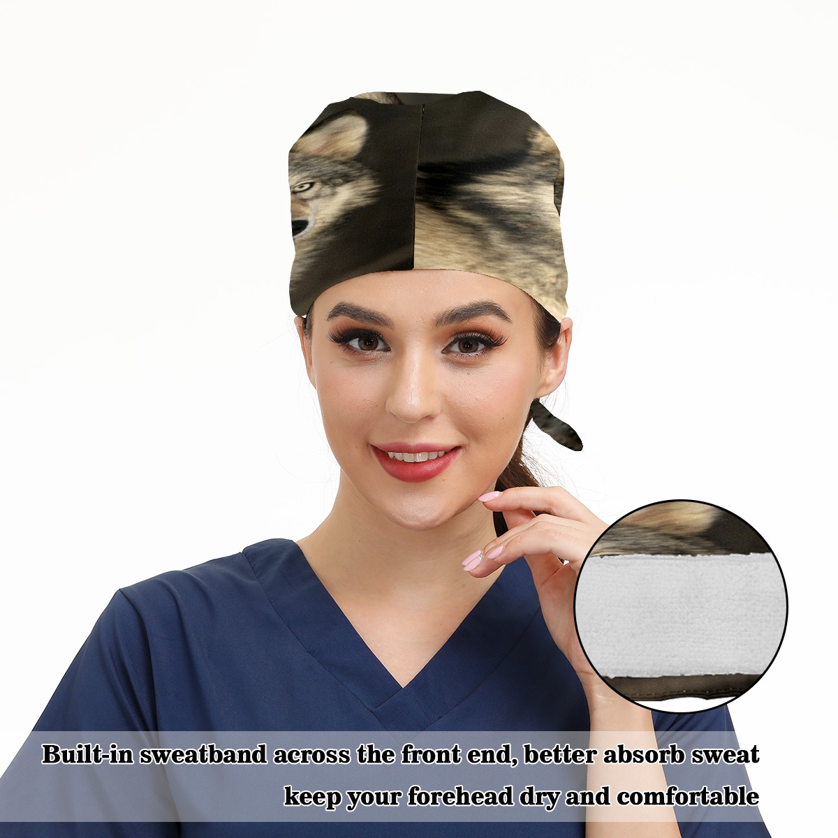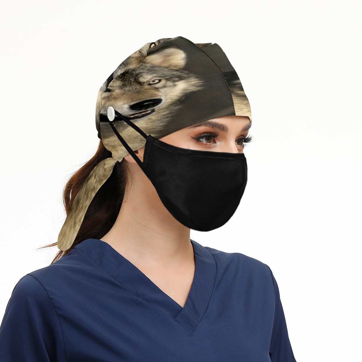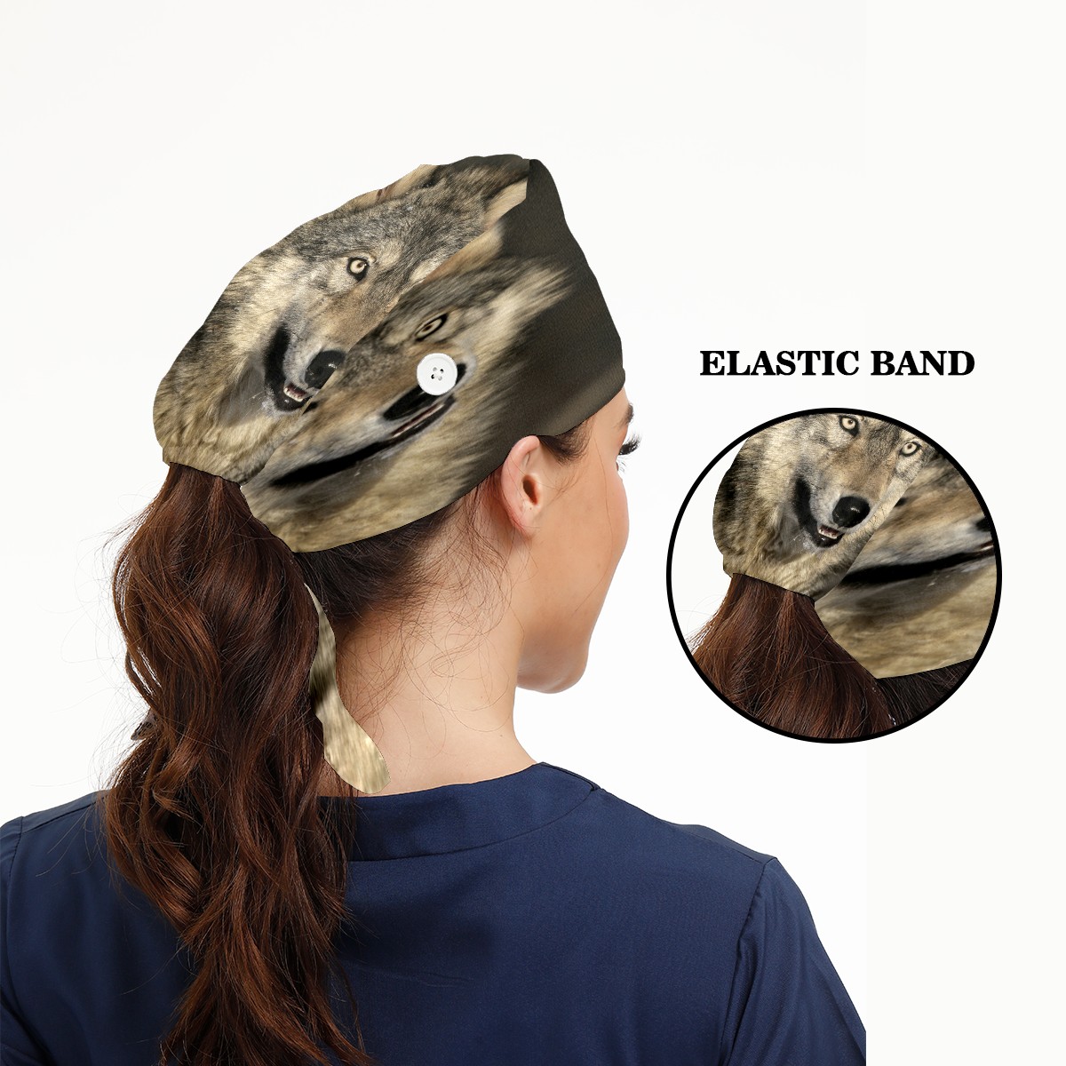 Hipster Wolf Working Cap Button and Sweatband Adjustable Elastic Head Cover Hair Tie Back Work Hats for Women Men